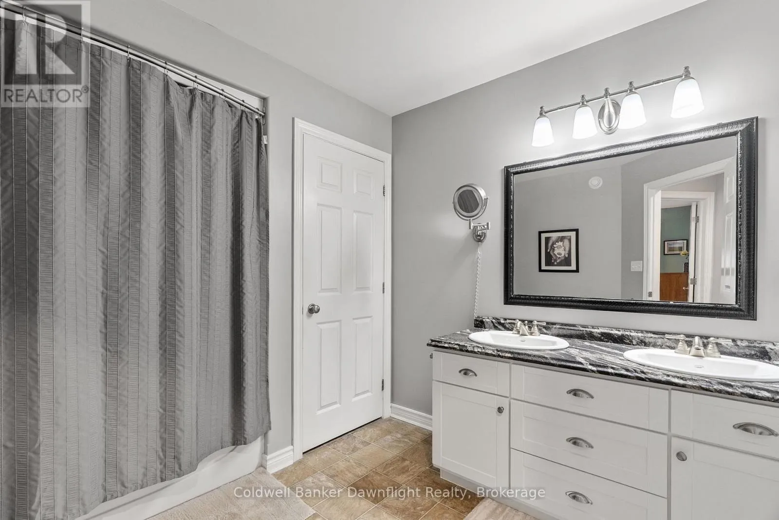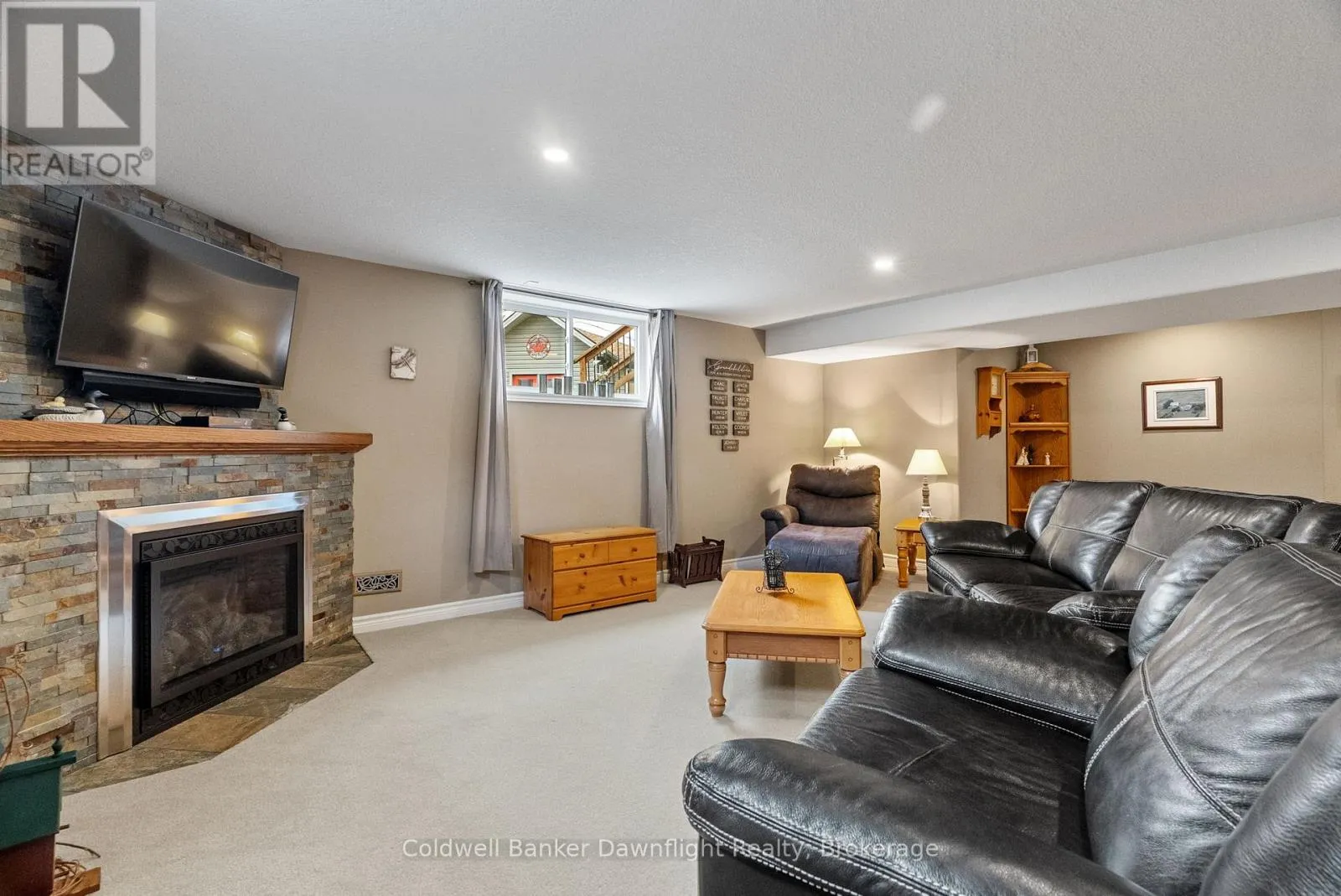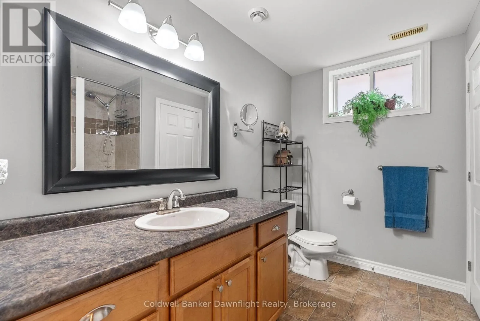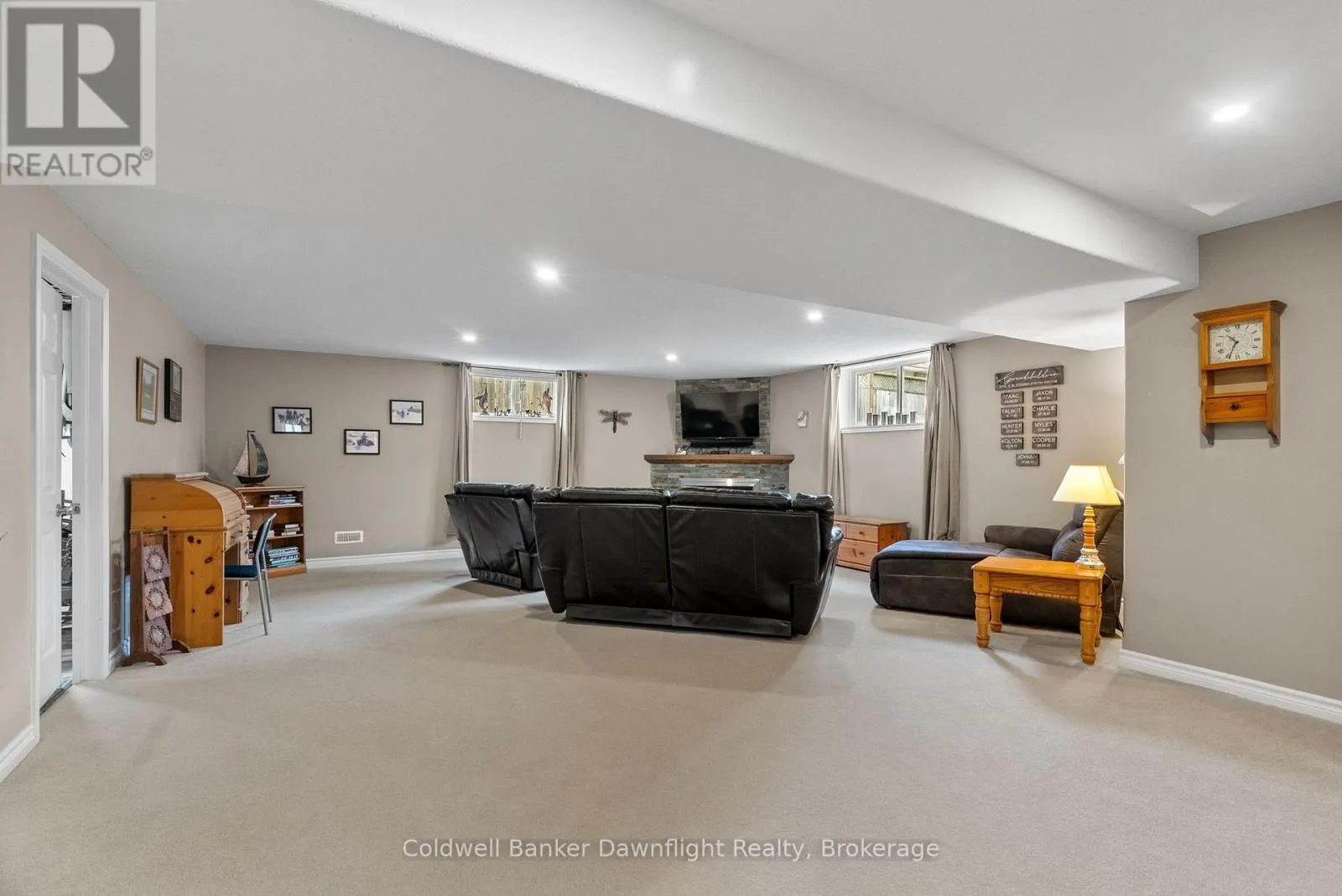 Cross Streets: Huron Street & Carling Street. ** Directions: Take Huron Street West, pass William Street & Property will be on your right hand side. Welcome home to this beautifully updated 5-bedroom, 2-bath bungalow that perfectly blends modern style with family comfort. The open-concept main level offers seamless flow between the living, dining, and kitchen areas-featuring stunning bright cabinets, quartz countertops, and updated stainless steel appliances. Durable vinyl plank flooring runs throughout, combining beauty and practicality.The main-floor primary suite includes a large walk-in closet and convenient 4pc bathroom next door, while the main-floor laundry room provides ample storage and everyday convenience. Step through the patio doors to a partially covered back deck, perfect for entertaining or extending your living space into the summer months. The fenced backyard is private and inviting, ideal for kids, pets, and gatherings.A true standout feature is the 18x18 detached workshop-complete with 100-amp service, heating, and cooling-making it the perfect year-round space for any craftsman, hobbyist, or small business owner. The fully finished basement offers tall ceilings, lots of natural light, and a cozy gas fireplace for winter evenings. It includes two additional bedrooms, a modern 4-piece bath, and plenty of storage. Outside, you'll find a 1.5-car garage and a 6-car concrete driveway. Conveniently located near Victoria Park, Precious Blood School, South Huron Hospital, and local amenities, this home has everything your growing family needs-space, comfort, and an unbeatable location. Don't miss your chance to make this beautiful property your new home. (id:27476)