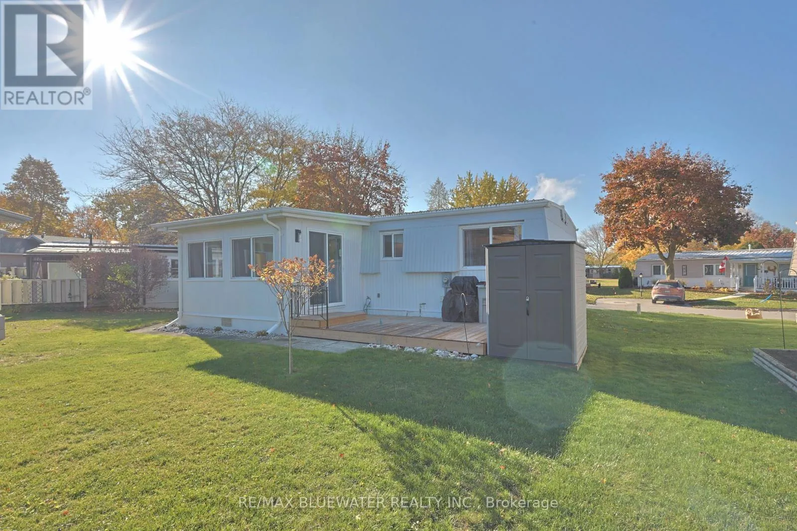 Cross Streets: Two Blocks North of Hwy. 81 (Main St. in Grand Bend) along Hwy. 21 to Grand Cove Lifestyle Community (across from Oakwood Golf Course). ** Directions: Take a right once past the gates into Grand Cove Estates. Home is on the left. EXTENSIVELY UPDATED IN 2022 WITH NEW FLOORPLAN ALLOWING FOR OPEN CONCEPT AND TWO BATHROOMS! Welcome to 79 Pebble Beach Parkway, Grand Bend in Grand Cove Estates. Great curb appeal with newly painted exterior, low maintenance rock garden beds with only perennials and front covered porch. Home was extensively updated in 2022 from drywall walls/ceilings, flooring, kitchen, appliances, bathrooms and much more. Open concept floorplan with neutral colours throughout. Kitchen offers center island, newer appliances, tiled backsplash and more. Lots of windows throughout for lots of natural light! Bonus room is a great space to relax and kick back featuring a screen door to back deck. Primary bedroom with double closet and two piece ensuite. Floorplan also allows for another bedroom, full updated three piece bathroom with walk-in shower and laundry closet. Enjoy the updated back deck with space for patio furniture. Newer garden shed included to hold your garden tools and more. Grand Cove Estates is a 55+ land lease community located in the heart of Grand Bend. Grand Cove has activities for everybody from the heated saltwater pool, tennis courts, woodworking shop, garden plots, lawn bowling, dog park, green space, nature trails and so much more. All this and you are only a short walk to downtown Grand Bend and the sandy beaches of Lake Huron with the world-famous sunsets. Monthly land lease fee of $865.52 includes land lease, access to all amenities and taxes. (id:27476)