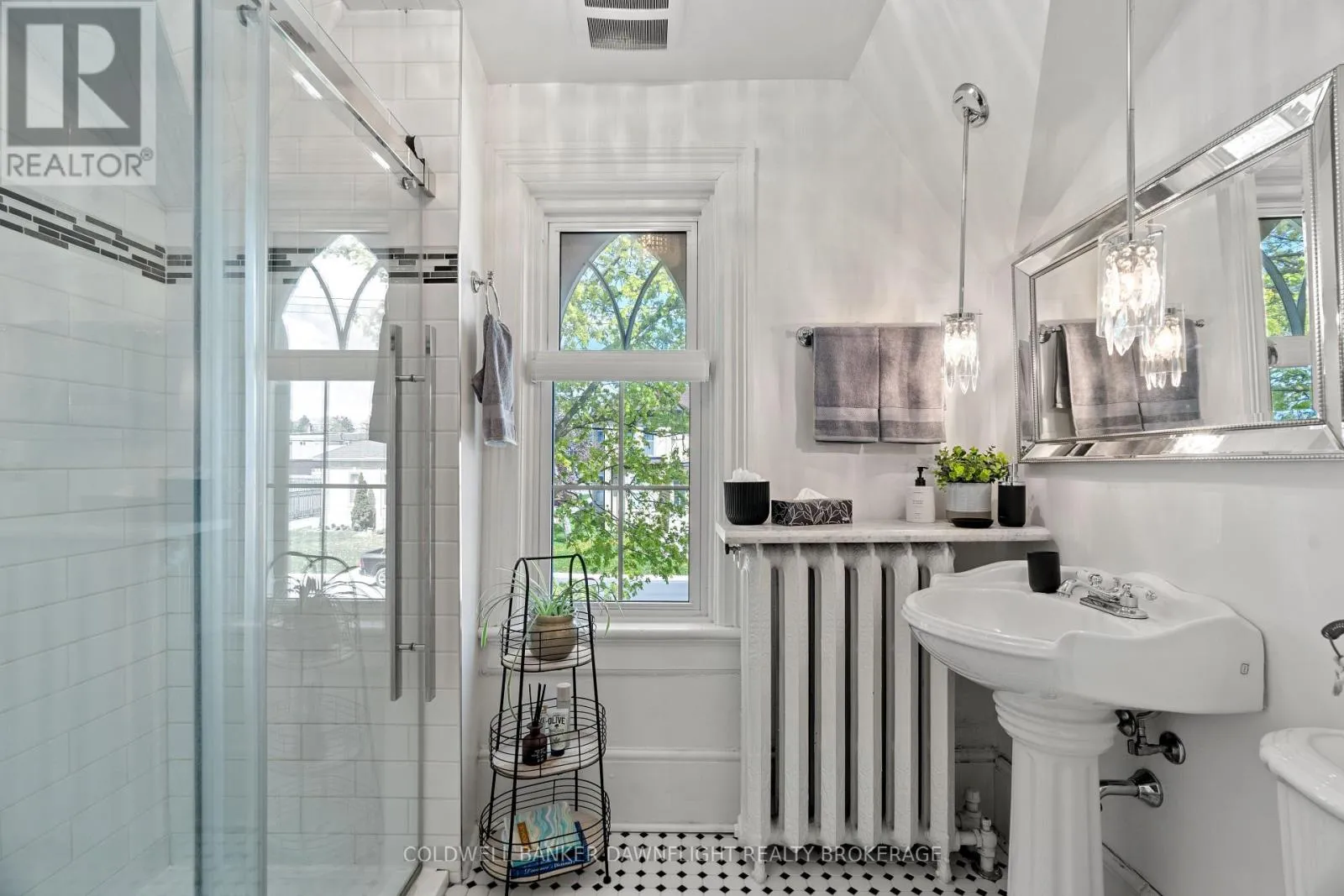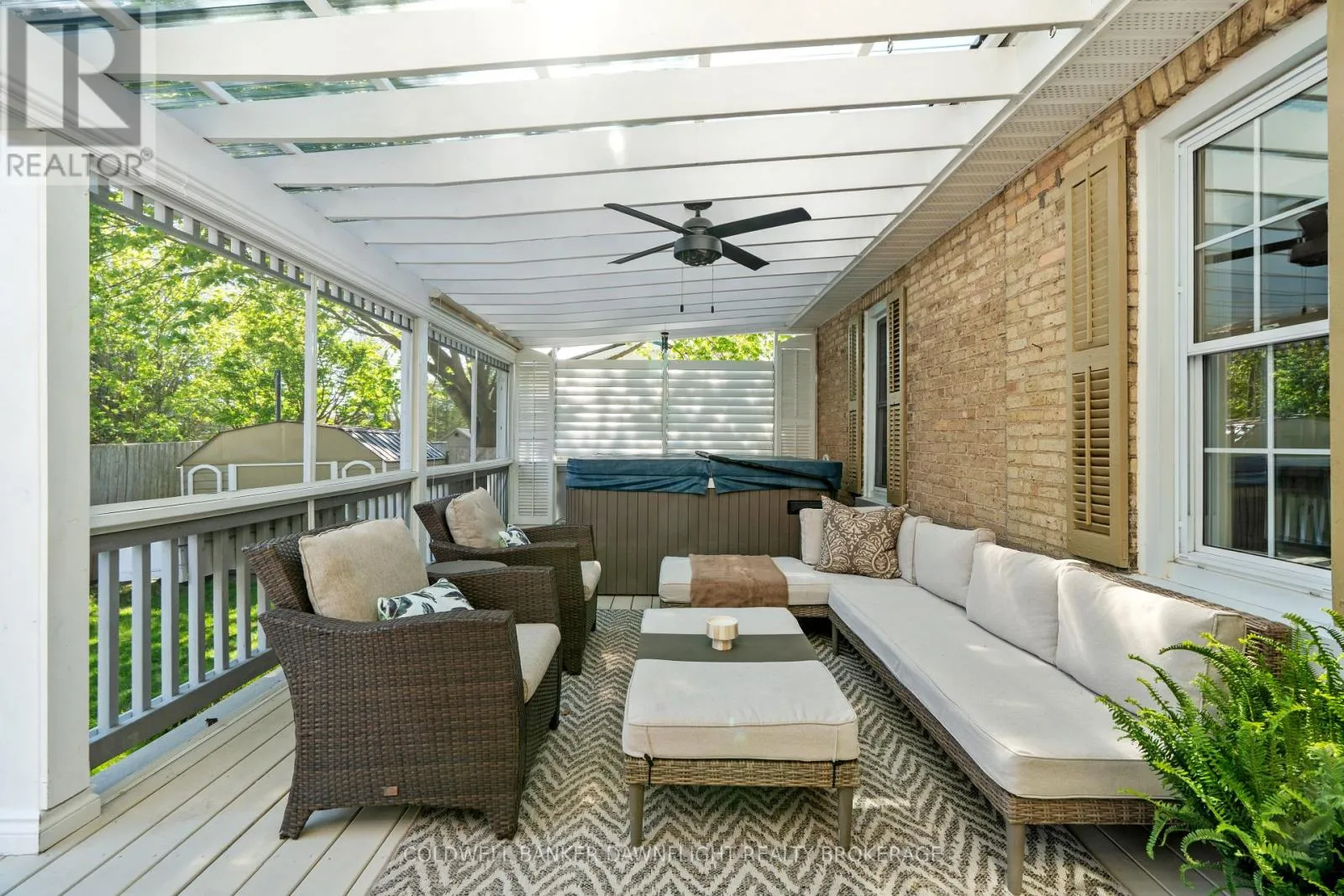 Cross Streets: Sanders & William. ** Directions: Heading south on Main Street, turn right (west) onto Sanders Street, turn left onto William. House is on the corner of Sanders & William Street. Step into a beautifully preserved piece of character and charm with this attractive yellow brick home that offers far more space than it appears. This home features four bedrooms and three bathrooms, including a rare ensuite, a standout for this style of property. One bedroom is located on the main floor, offering flexibility for guests or single-level living, while three additional bedrooms are upstairs. The layout combines timeless charm with thoughtful modern updates for comfortable everyday living.The welcoming front entrance is truly unique, boasting a covered porch with three separate access points, adding both functionality and curb appeal. Inside, you'll find high ceilings on the main floor, an updated kitchen with a striking exposed brick wall, and the convenience of main floor laundry. The home is heated with efficient hot water radiant heat and is kept cool in the warmer months by a brand-new ductless AC unit. Outdoors, the fully fenced yard includes a covered back deck complete with a hot tub, offering a private space to relax or entertain.There's parking for up to five vehicles and a versatile storage shed/garage located at the rear of the property perfect for additional storage or workspace. From the charming exterior to the spacious interior and practical updates, this home offers exceptional value and a truly inviting place to call home. (id:27476)