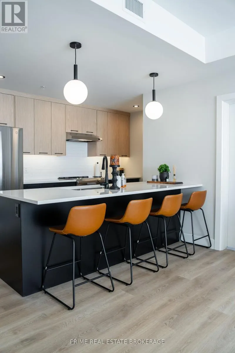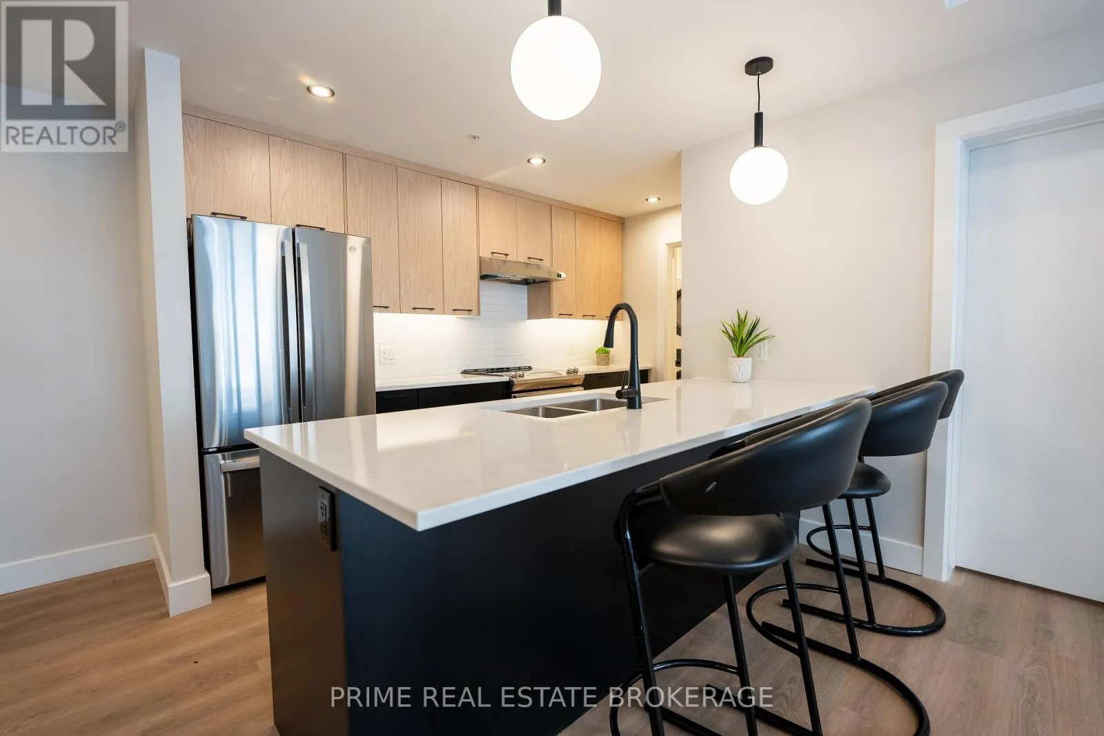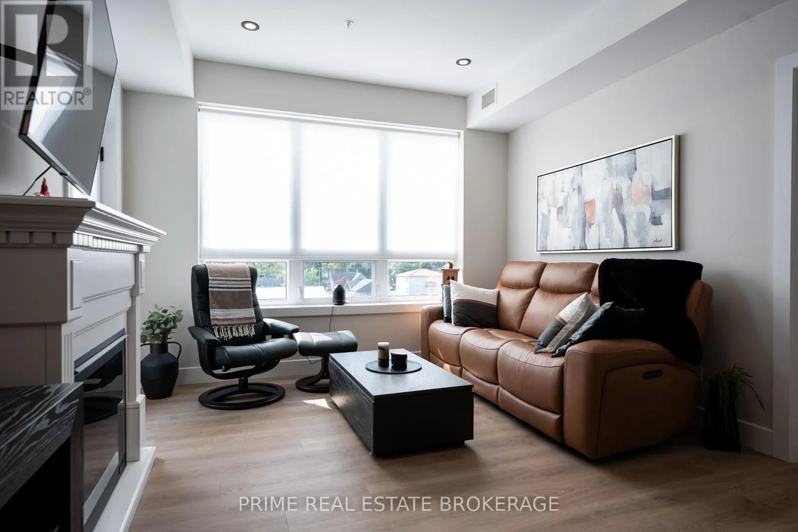 Main Street/Highway 4 Exeter Available January 1, 2026! This barrier-free, 2 bedroom main floor suite at James Street Commons is an aesthetically pleasing, well-designed property located just one block from the vibrant MainStreet core with shopping, dining and the hospital nearby, and a quick 35 minute commute to London or Stratford. Conveniently located yet situated on a quiet residential street with 24/7 secure access, the interior boasts luxurious finishes, oversized windows and 9 foot ceiling that provide for an elegant, yet bright and comfortable space to call home. The stylish open concept kitchen/dining area features stainless steel appliances, quartz countertops, two-tone cabinetry, subway tile backsplash, and an island. An in-suite laundry room is a bonus, while a large primary bedroom with a spacious walk-in closet, and a second bedroom share a 3 pc washroom with a tiled shower. A private covered patio is perfect for relaxing during the warmer months. (id:27476)