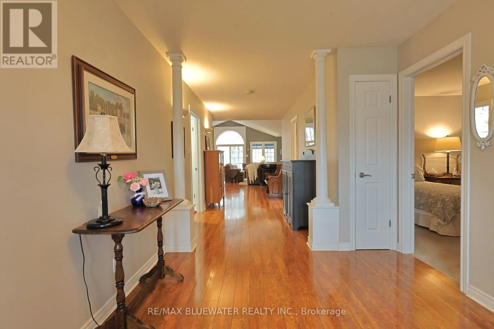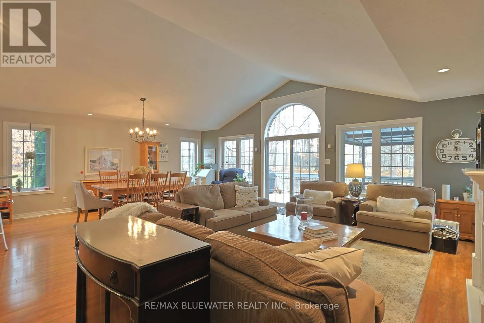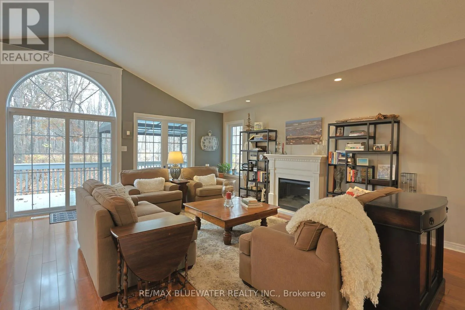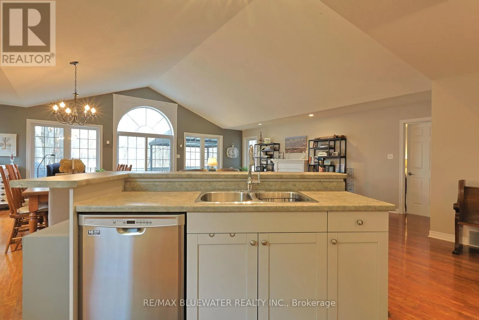 Cross Streets: Hwy 21/Grand Cove Estates. ** Directions: Entering Grand Cove Estates. Turn left and turn left onto Shannon Blvd. Follow around to the home on right hand side. INCREDIBLE VALUE IN GRAND COVE ESTATES BUILT IN 2005 BACKING ONTO NATURE! Welcome to 363 Shannon Blvd, Grand Bend in Grand Cove Estates. This 2005 site built home with single attached garage offers 1,326 sq ft of highly appointed living space. Great curb appeal with nicely landscaped gardens, covered front porch and single attached garage. Entering the home you are greeted by a spacious entrance foyer with decorative columns and double closet. Wide hallway leading to the impressive great room with cathedral ceilings and lots of windows to take in all the privacy of backing onto nature. Expansive kitchen with large eat-up island, updated appliance and lots of cabinetry. Dining area is spacious with lots of room to put in the extra table leaves for when guests come over! Living room centered around fireplace with surround. All with great views of nature through the wide two panel sliding door and large arched window above! Large primary bedroom with walk-in closet and three piece ensuite. Floorplan allows for a true second bedroom along with a third room that could be a bedroom/den/office! Second full four piece bathroom. Updated laminate flooring throughout most of the home. Mudroom off of garage offers more storage and laundry. 4 foot crawl space with concrete floor is great for extra storage if needed! Grand Cove Estates is a 55+ land lease community located in the heart of Grand Bend. Grand Cove has activities for everybody from the heated saltwater pool, tennis courts, woodworking shop, garden plots, lawn bowling, dog park, green space, nature trails and so much more. All this and you are only a short walk to downtown Grand Bend and the sandy beaches of Lake Huron with the world-famous sunsets. Monthly land lease fee of $1,070.71 includes land lease, access to all amenities and taxes. (id:27476)