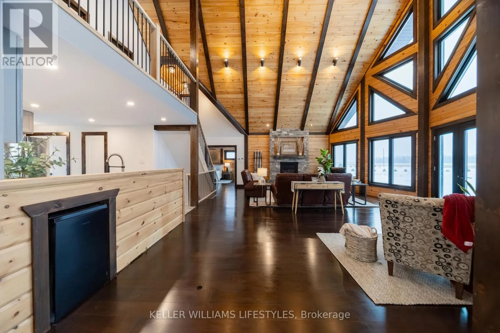 Cross Streets: B Line. ** Directions: Bluewater Hwy #21 north to Hwy #83 follow to right -quick right to Gore Road (Just off Dashwood Road) past B-Line. Available under Power of Sale! Log home style lovers, contractors, builders, and real estate investors! Take note! Just minutes from Grand Bend, Huron Country Playhouse, Dark Horse Winery and nearby beach, discover an impressive 97% finished Timber Block home nestled on a 4 acre property. Timber Block recently quoted a value of $1.1 million for this modified Dakota model that combines classic charm with modern eco-friendliness. A-Frame architecture meets comfort in this 3+2 bedroom home. Patented factory made wood panels provide superior insulation and an aesthetically charming log home appearance. The 2100 sq foot upper level consists of stunning wood cathedral ceilings, top to bottom windows that allow an abundance of natural light, gas stone fireplace, main floor ensuite with walk-in closet and a bathroom/mudroom area. A wooden stairway with black metal spindles leads to a cozy loft area plus two bedrooms and a bathroom. The partially finished 1400 sq foot lower level offers 9 ft high ceilings, ample space and abundant natural light to create your dream area. With drywall in place it features two bedrooms , a family room with rough in fireplace, and a three-piece bathroom rough-in just waiting for your personal touches. Endless outdoor space to design and build your dream garage/workshop, garden or landscaping project. Additional features include a gas furnace, tankless water heater, sump pump, heat recovery ventilation (Lifebreath HRV), a generator for power outages (Generac) and a reliable easy access septic system (Polylok). (id:27476)