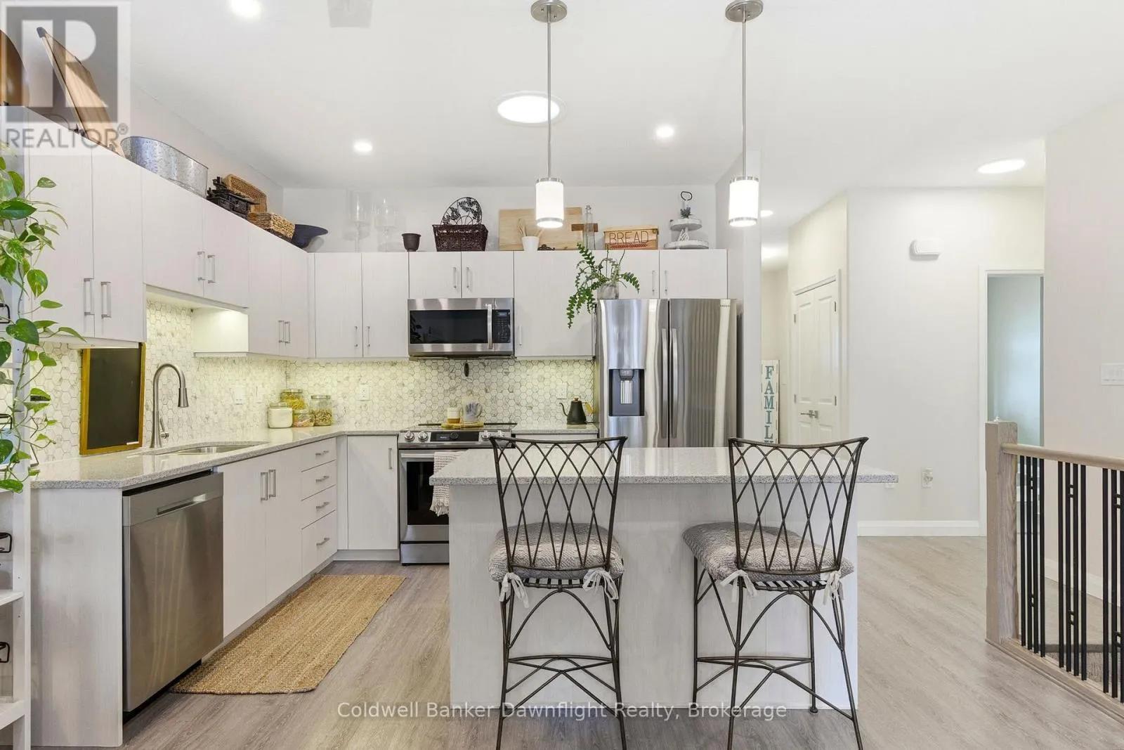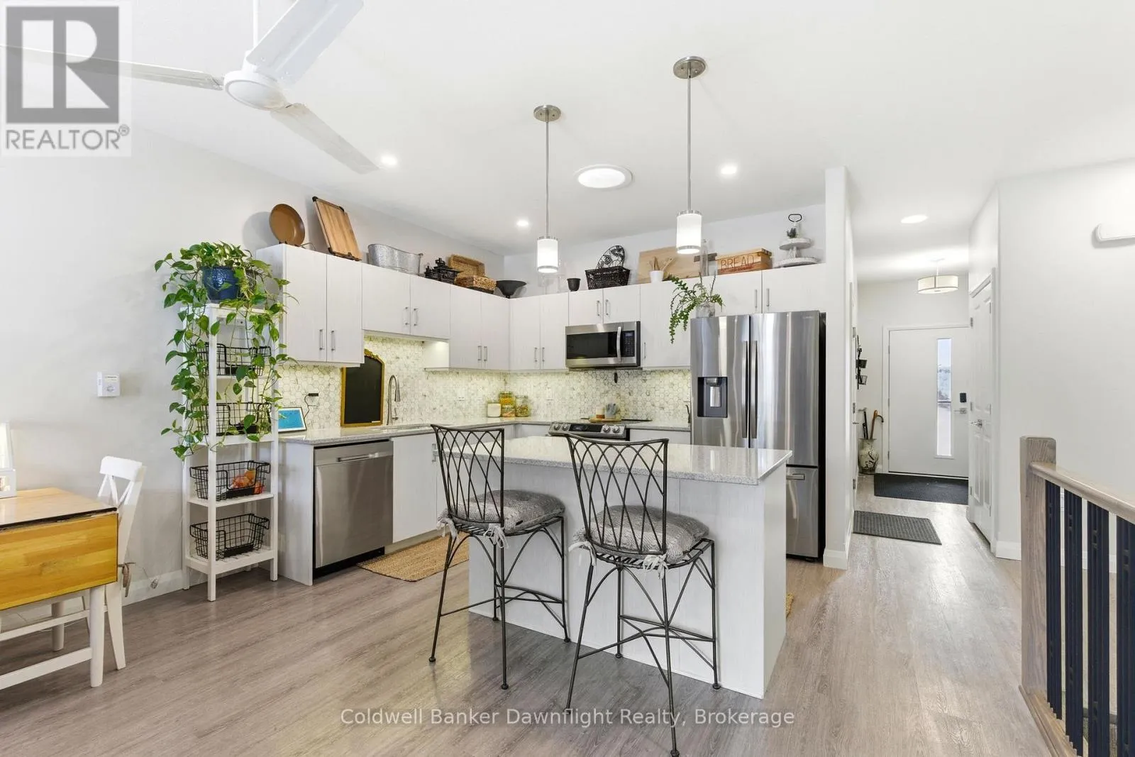 Cross Streets: Albert St & Rowe Ave. ** Directions: Heading south on Main Street in Exeter, turn left onto Simcoe Street, turn right onto Albert, left onto Rowe Ave. Destination on your left. Welcome to South Pointe, one of Exeter's newer and most sought-after subdivisions. This beautifully maintained bungalow-style townhome, built in 2021 and ideally located second from the end off Albert Street, offers comfort, style, and easy living-perfect for first-time buyers, retirees, or anyone looking to step into the market.The thoughtfully designed layout features 2+1 bedrooms and 2.5 baths, with a bright and spacious main floor. The custom kitchen boasts granite countertops, stainless steel appliances, and a stylish honeycomb backsplash, seamlessly connecting to the living and dining areas. Two newer solar tubes (2024) enhance the natural light, creating a warm and welcoming atmosphere. From the living room, enjoy peaceful views of the covered back porch overlooking lovely gardens, a tranquil pond, and a gently flowing creek.The primary suite is conveniently located on the main level and includes a walk-in closet, private ensuite, and an abundance of natural light. A second main-floor bedroom provides flexibility as a guest room, home office, or cozy den. Vinyl plank flooring, installed in 2024, flows throughout the main level, complementing the open-concept living space. A full 4-piece bath with a deep soaker tub completes the main level.The partially finished basement (2022) adds even more value, offering a large bedroom, 2-piece bath, and a spacious rec room with tall ceilings, plus ample unfinished storage and workshop space-leaving plenty of room to customize and add future square footage.Located just minutes from the local hospital, schools, shopping, and the scenic McNaughton Park, this home delivers low-maintenance living in a prime location. A rare opportunity to enjoy modern comfort in a welcoming community! (id:27476)