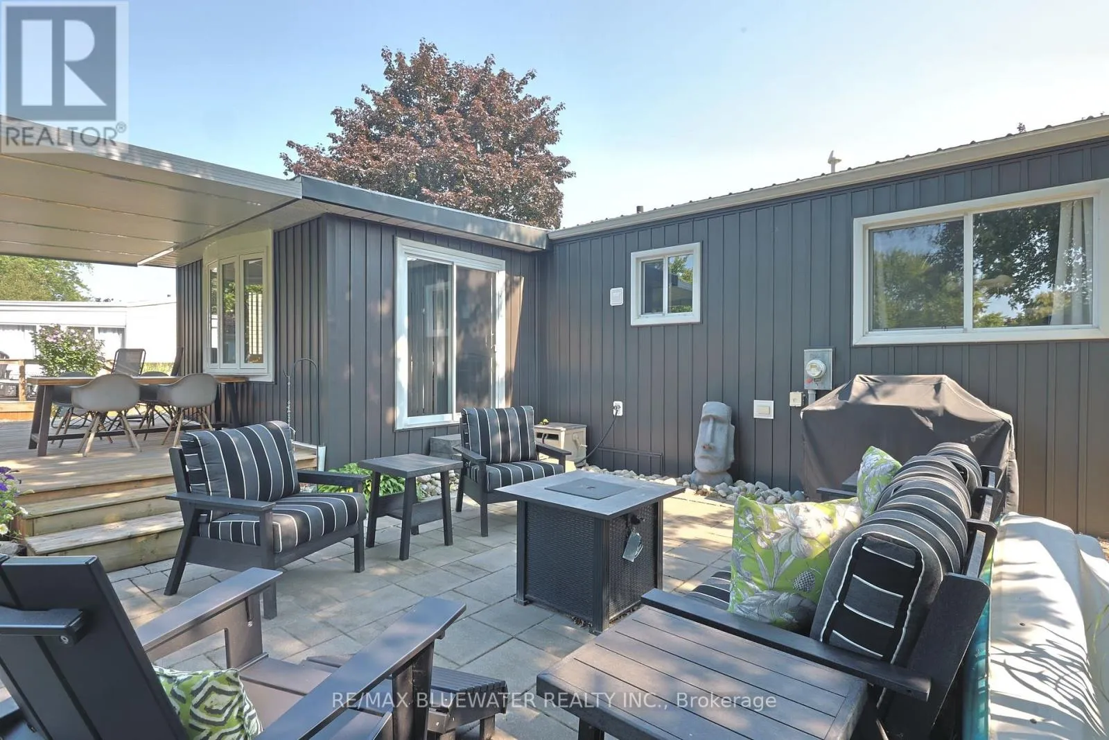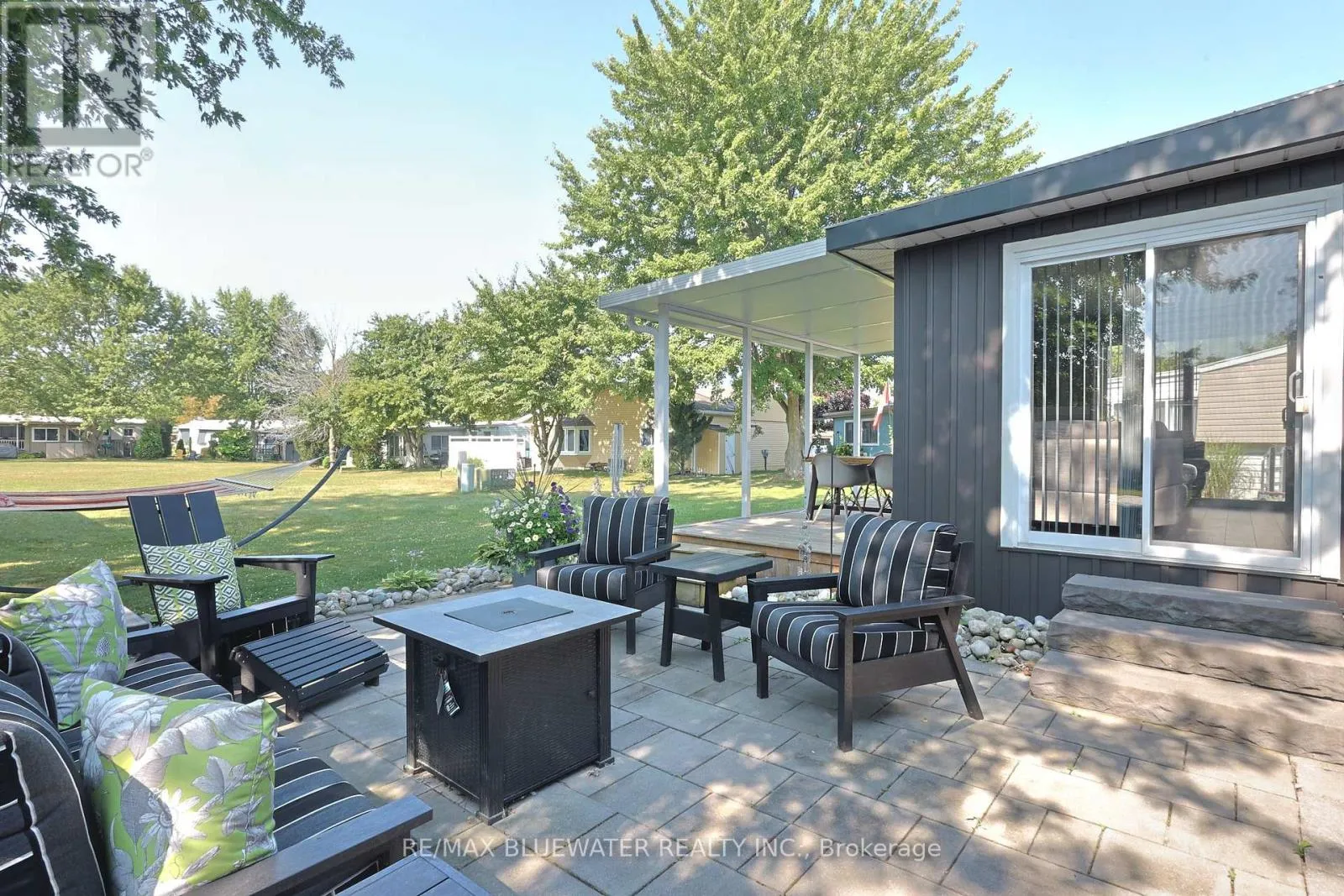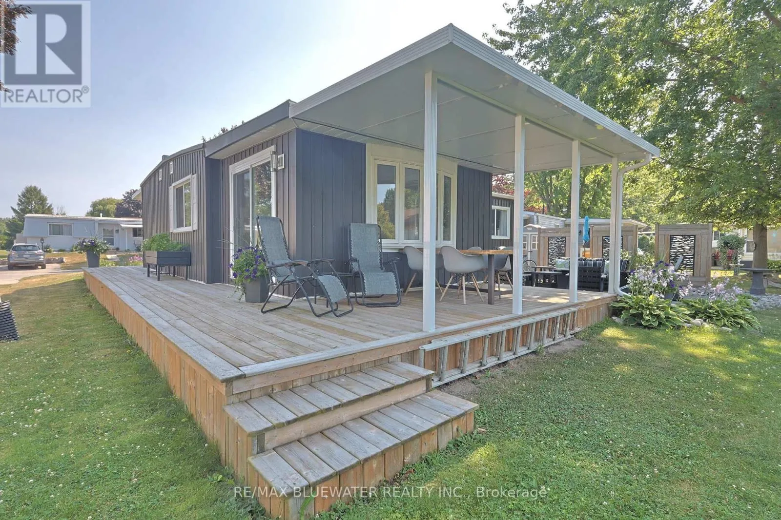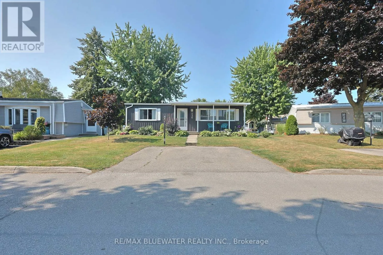 Cross Streets: Pebble Beach Pkwy/Dunes Dr. ** Directions: Entering Grand Cove Estates. Through gates turn left. Home is on the right. TURN KEY TOTALLY RENOVATED HOME IN 2014 BACKING ONTO GREENSPACE IN GRAND COVE ESTATES. Welcome to 236 Pebble Beach Parkway, Grand Bend in the land leased community of Grand Cove Estates. This is your perfect getaway that was totally renovated back to the studs in 2014. These renovations include plumbing, electrical, siding, metal roof, doors, windows, drywall, trim, flooring, kitchen, bathrooms, decks, landscaping and every other thing in the home! Tastefully redesigned allowing for wide open concept floorplan flowing in the bonus room overlooking an expansive green space. Kitchen offers lots of cabinetry with pass through window into bonus room making easy work of getting things to the BBQ. New countertops installed 2024. Bonus room overlooking greenspace allows for sliding door to stone patio and another sliding door to wraparound deck. Along with bay window for ample natural light creating a great space to kick back. Home offers two bedrooms and a fully updated four piece bathroom that allows for a tub with tiled surround. Front covered porch awning and back covered porch awning installed 2024. Both covered portions connected by 4 ft wide wrap around deck. All leading to the 16'x18' stone patio with privacy fences allowing for lots of privacy. BONUS: ALL CHATTELS EXCLUDING ARTWORK/PERSONAL ITEMS AS SEEN IN PERSON CAN BE INCLUDED IN ADDITION TO THE LISTED PURCHASE PRICE. This would include 2024 heavy duty patio furniture from Casual Industries, high end couches, chairs, dining set, island barstools, primary bed set, kayak, lawnmower & much more! Grand Cove has activities for everybody from the heated salt water pool, tennis courts, wood working shop, garden plots, lawn bowling, nature trails and so much more. All this and your only a short walk to downtown Grand Bend and the sandy beaches of Lake Huron with the world famous sunsets. Come view this home today and enjoy life in Grand Bend! (id:27476)