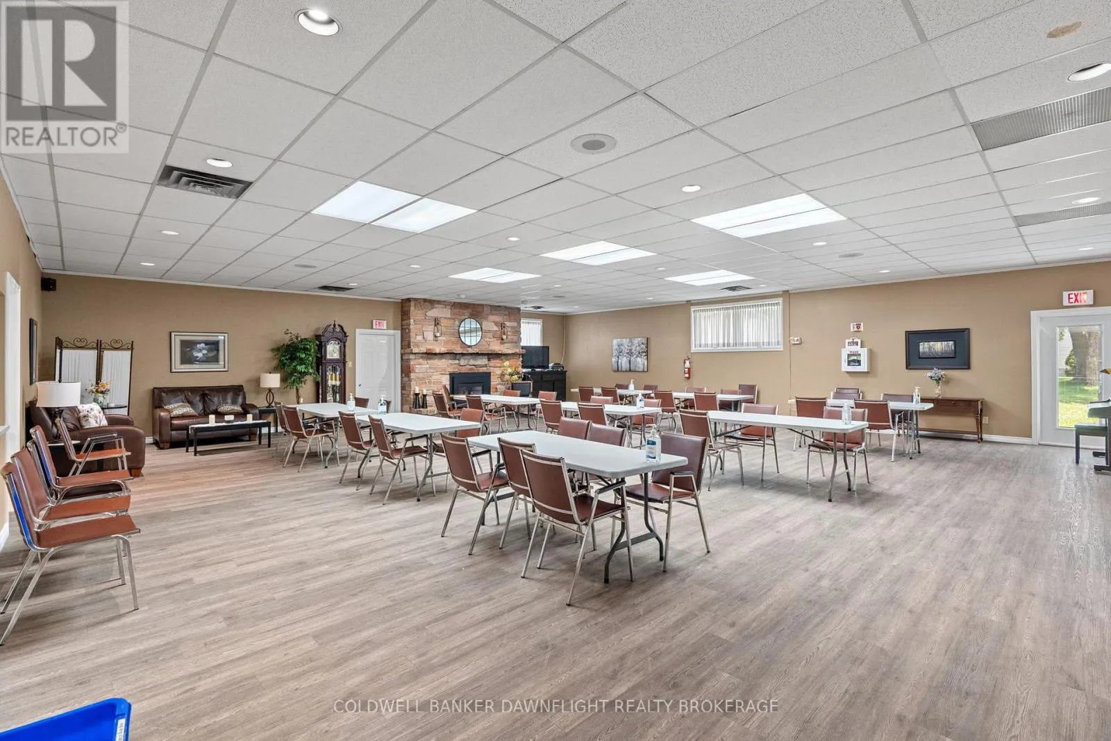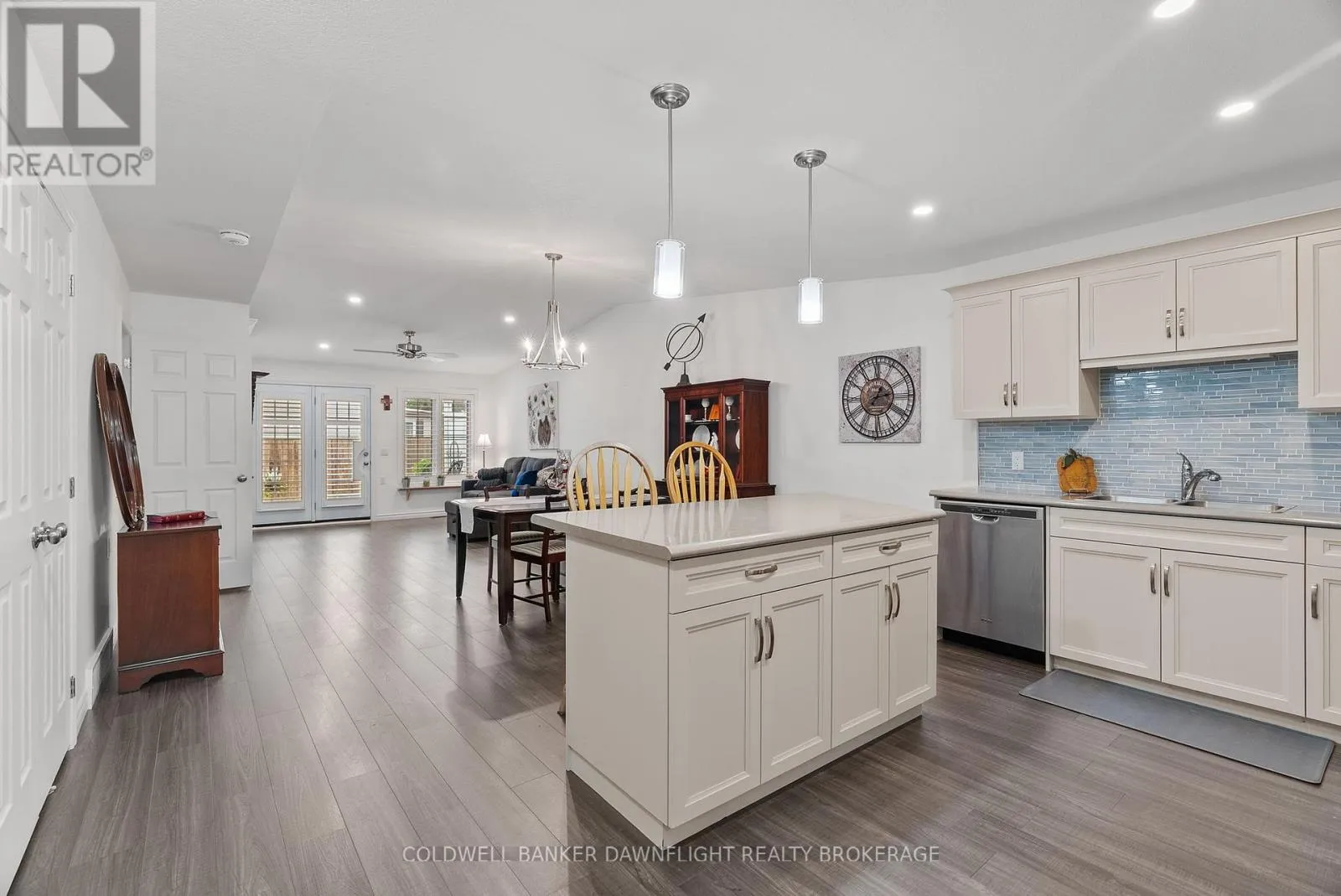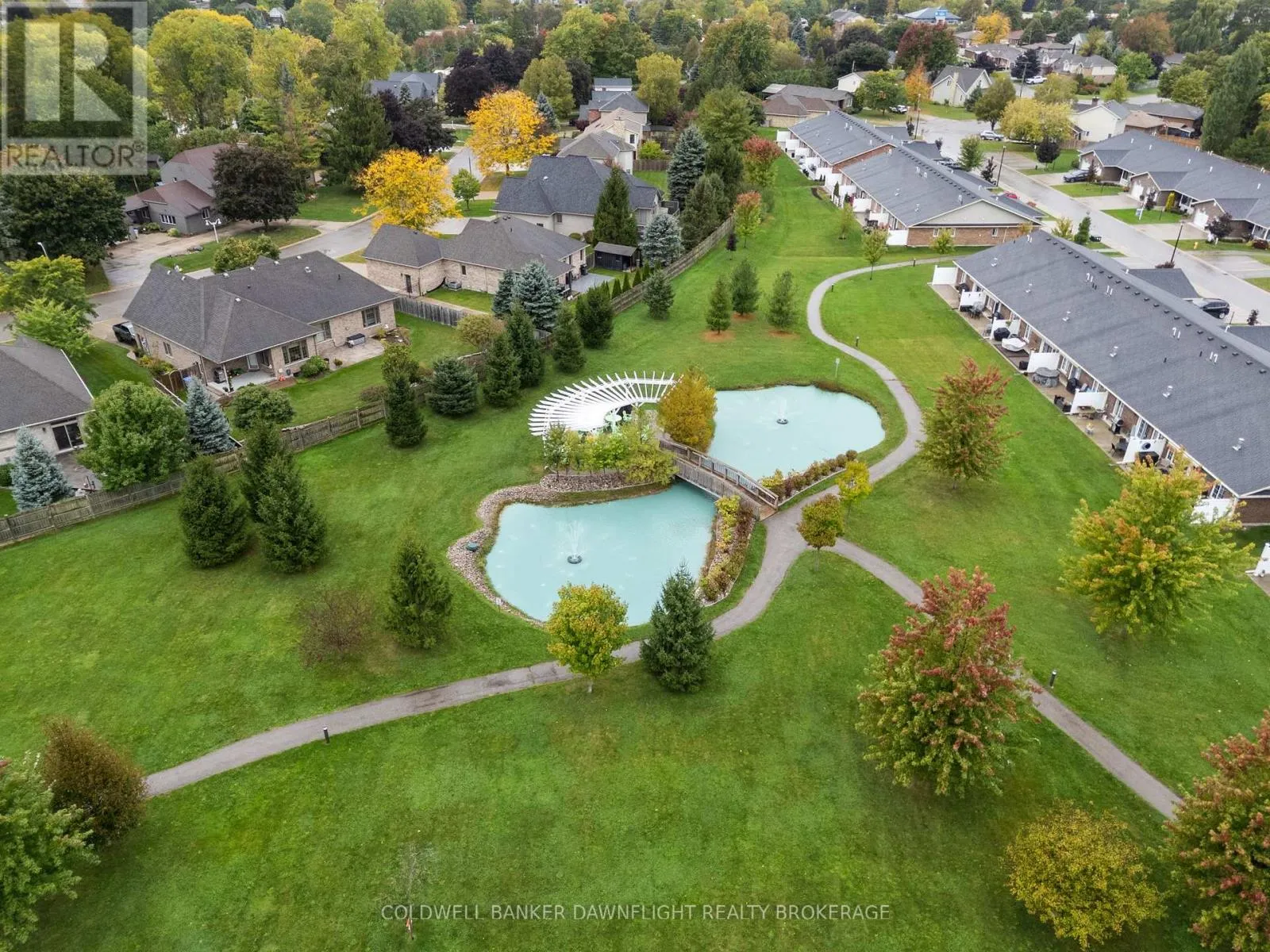 Cross Streets: Redford Drive and Devon Drive. ** Directions: Off of Main St, turn east onto George St. Follow to Devon Dr and turn right. Nestled in the heart of Exeter, Riverview Meadows offers the perfect blend of small-town charm, modern convenience, and peaceful rural surroundings. Ideally located just 30 minutes from London and only 15 minutes from the serene shores of Lake Huron, this adult-oriented community provides a relaxed and friendly atmosphere with easy access to healthcare, shopping, dining, golf courses, and scenic walking trails. This 1160 sq ft home which is situated on leased land, offers easy, step-free access with no stairs at the entry which is ideal for convenience and accessibility. This beautifully maintained home features an open-concept layout that is both spacious and inviting. The kitchen boasts ample cabinetry, an updated backsplash, and a sit-up island perfect for casual dining or entertaining. The adjoining living and dining areas flow seamlessly together and includes a cozy gas fireplace which is ideal for relaxing evenings at home. The primary bedroom is generously sized and includes a walk-in closet and a private 3-piece ensuite. A second bedroom is conveniently located near the 4-piece main bath, making it perfect for guests. Step out onto the private patio area, perfect for enjoying a relaxing morning coffee or hosting a BBQ made easy with a convenient gas hookup. The attached garage provides convenient access to a generous amount of storage space located beneath the main floor. Additional upgrades include premium vinyl flooring, backsplash and fresh paint, adding to the homes modern appeal. Residents of Riverview Meadows enjoy access to a wide array of community amenities, including a recreation hall with a kitchen, pool table, shuffleboard, library, a fitness room, outdoor shuffleboard courts, horseshoe pits, and a tranquil community pond perfect for socializing with neighbors and visiting family. This is more than a home - it's a lifestyle. (id:27476)