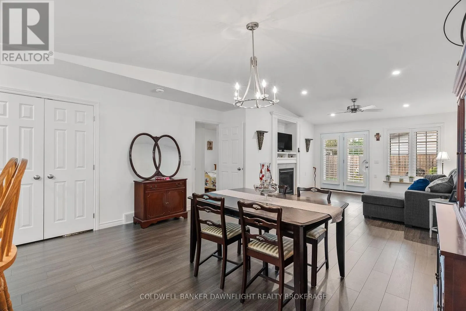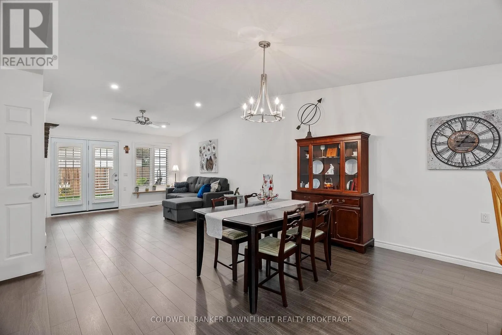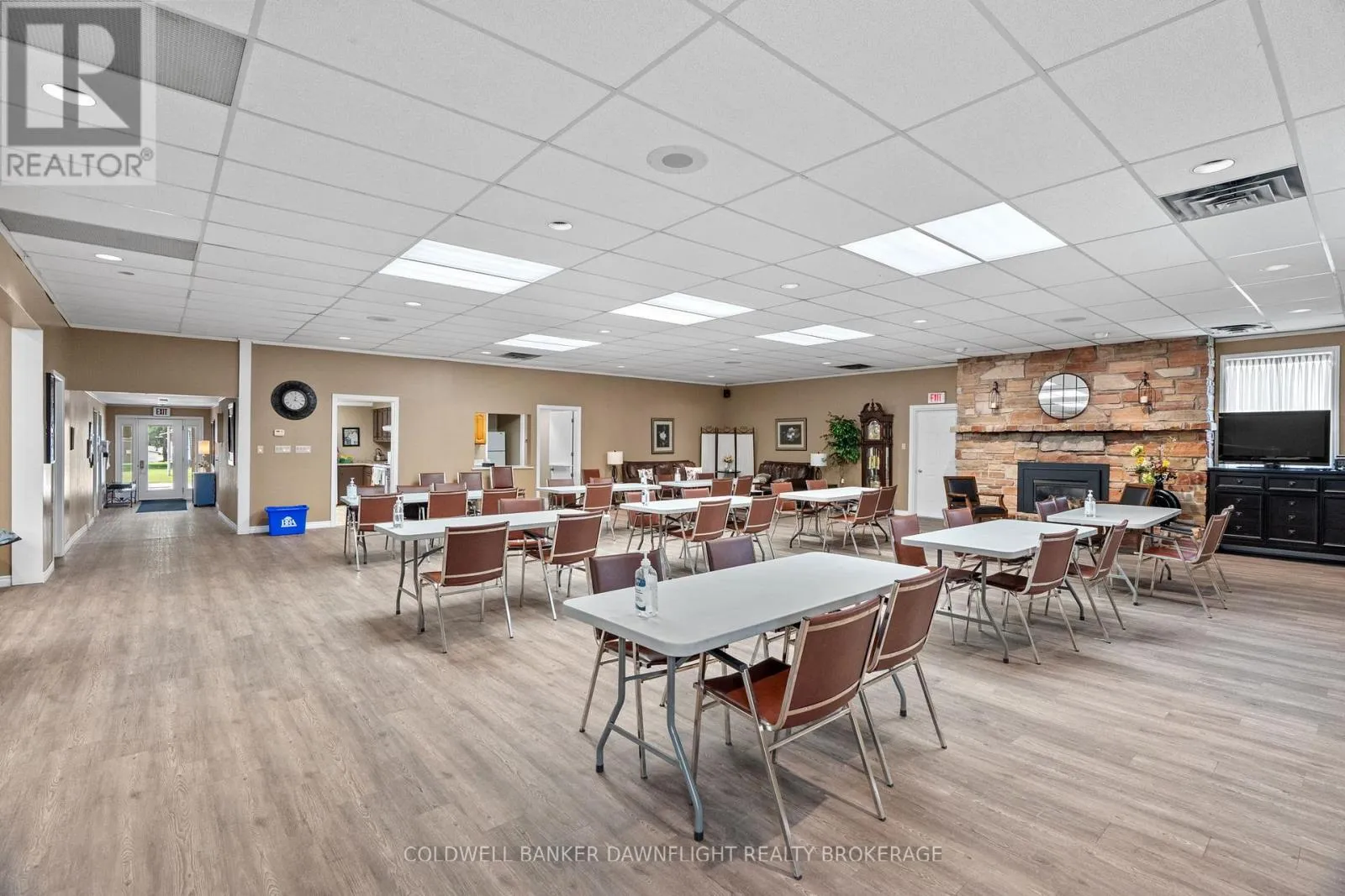 Cross Streets: Redford Drive and Devon Drive. ** Directions: Off of Main St, turn east onto George St. Follow to Devon Dr and turn right. Nestled in the heart of Exeter, Riverview Meadows offers the perfect blend of small-town charm, modern convenience, and peaceful rural surroundings. Ideally located just 30 minutes from London and only 15 minutes from the serene shores of Lake Huron, this adult-oriented community provides a relaxed and friendly atmosphere with easy access to healthcare, shopping, dining, golf courses, and scenic walking trails. This 1160 sq ft home which is situated on leased land, offers easy, step-free access with no stairs at the entry which is ideal for convenience and accessibility. This beautifully maintained home features an open-concept layout that is both spacious and inviting. The kitchen boasts ample cabinetry, an updated backsplash, and a sit-up island perfect for casual dining or entertaining. The adjoining living and dining areas flow seamlessly together and includes a cozy gas fireplace which is ideal for relaxing evenings at home. The primary bedroom is generously sized and includes a walk-in closet and a private 3-piece ensuite. A second bedroom is conveniently located near the 4-piece main bath, making it perfect for guests. Step out onto the private patio area, perfect for enjoying a relaxing morning coffee or hosting a BBQ made easy with a convenient gas hookup. The attached garage provides convenient access to a generous amount of storage space located beneath the main floor. Additional upgrades include premium vinyl flooring, backsplash and fresh paint, adding to the homes modern appeal. Residents of Riverview Meadows enjoy access to a wide array of community amenities, including a recreation hall with a kitchen, pool table, shuffleboard, library, a fitness room, outdoor shuffleboard courts, horseshoe pits, and a tranquil community pond perfect for socializing with neighbors and visiting family. This is more than a home - it's a lifestyle. (id:27476)
