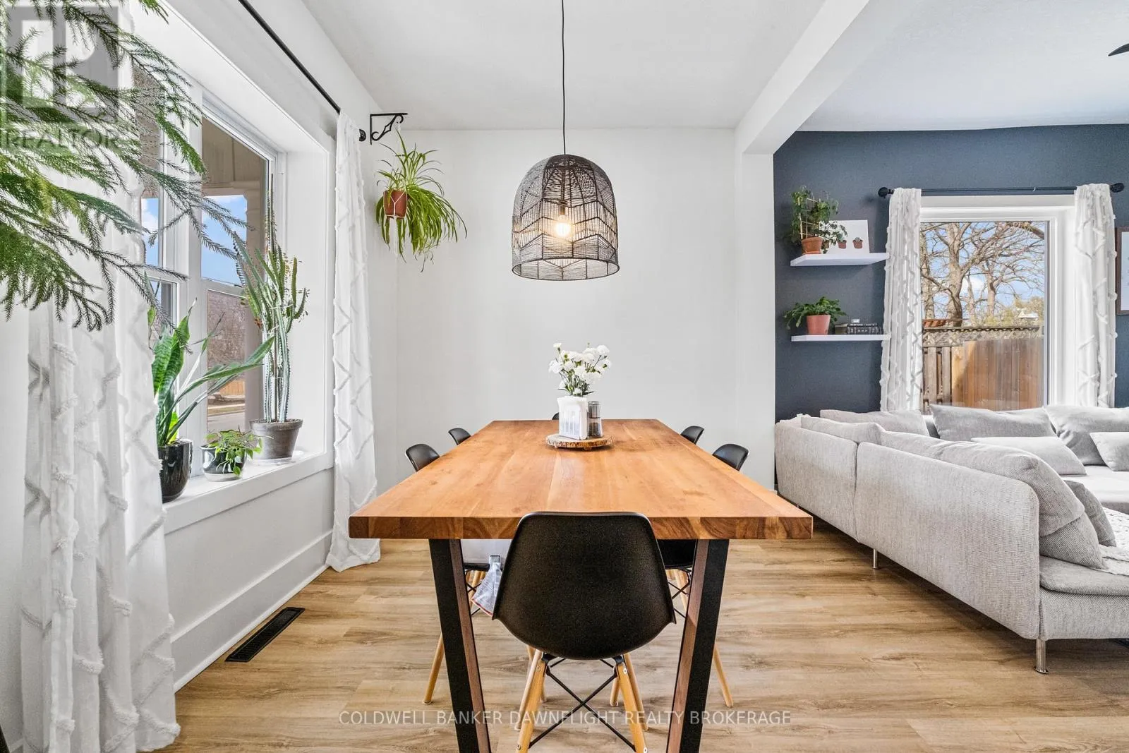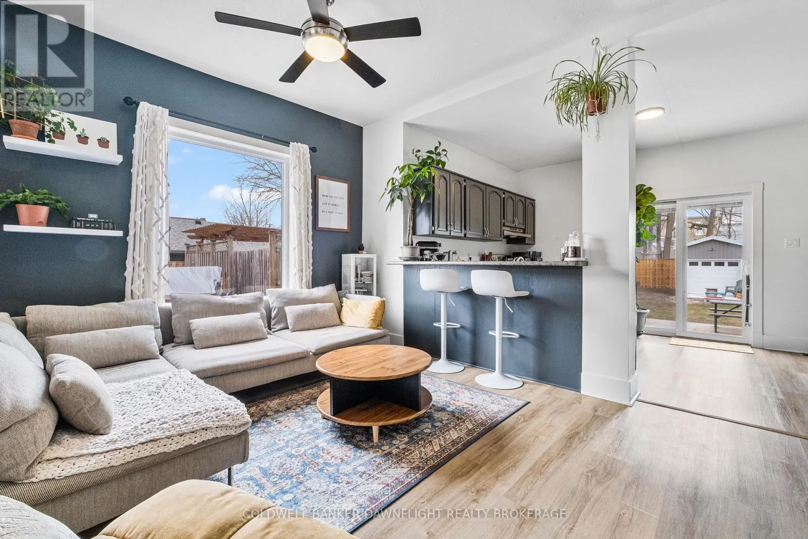 Cross Streets: William St & John St. ** Directions: Turn off of Main Street Exeter, turn west onto Huron street. Continue one block & turn right on William Street. Property is on right side of street. This impressive semi-detached home, has been thoughtfully updated and is ideally located just moments from the heart of downtown Exeter. The main floor features a bright, open-concept layout with clear sightlines connecting the kitchen, dining, and living areas, creating a functional and inviting space for both everyday living and entertaining. The kitchen has been refreshed with newly painted cabinetry, updated light fixtures, and patio doors that lead directly to the backyard. The dining and living areas continue the cohesive feel with new flooring, updated receptacles and switches, and fresh paint throughout. Upstairs, you'll find a spacious and well-lit four-piece bathroom, a primary bedroom complete with a walk-in closet (or ideal home office), and a second bedroom with large windows and a double closet. New carpet on the staircase and upper level adds comfort and a polished finish. The fully fenced backyard offers excellent outdoor space, featuring a rear deck and a brand new detached shed equipped with a poured concrete floor, bay door, man door, and hydro, ideal for storage, hobbies, or workspace needs. Additional updates include all new subflooring, select floor joists replaced, added jack posts in the basement for enhanced structural support, and a new oven (2023). Major renovations completed in 2014 include insulation, drywall, wiring, plumbing, trim, windows, and roof shingles. Move-in ready and extensively updated, this property is well suited to a range of buyers, including investors. (id:27476)