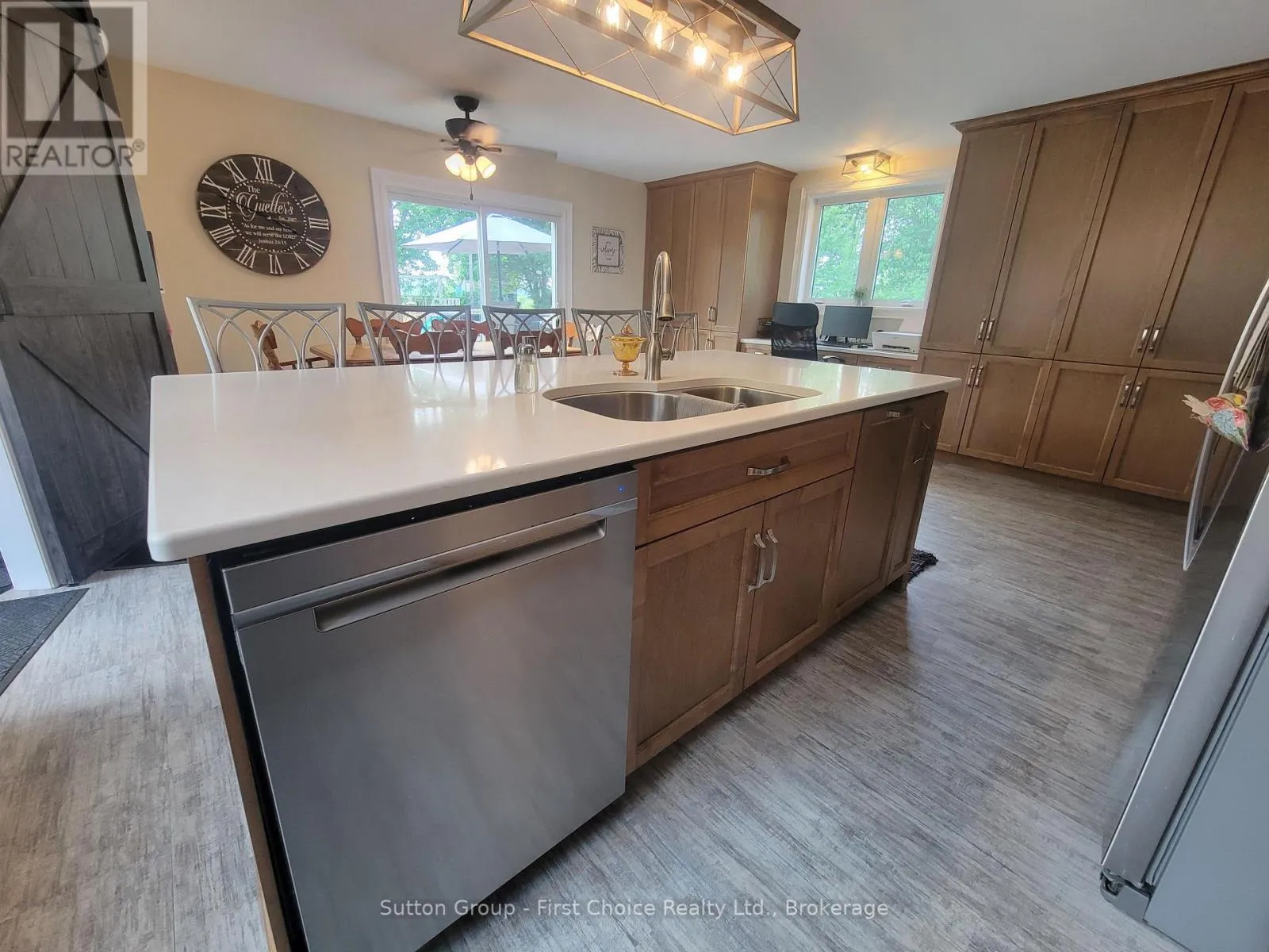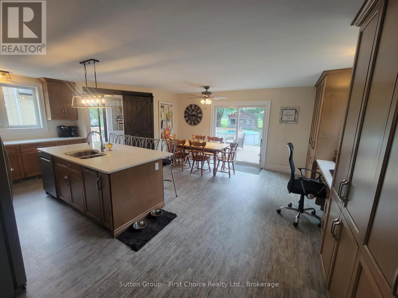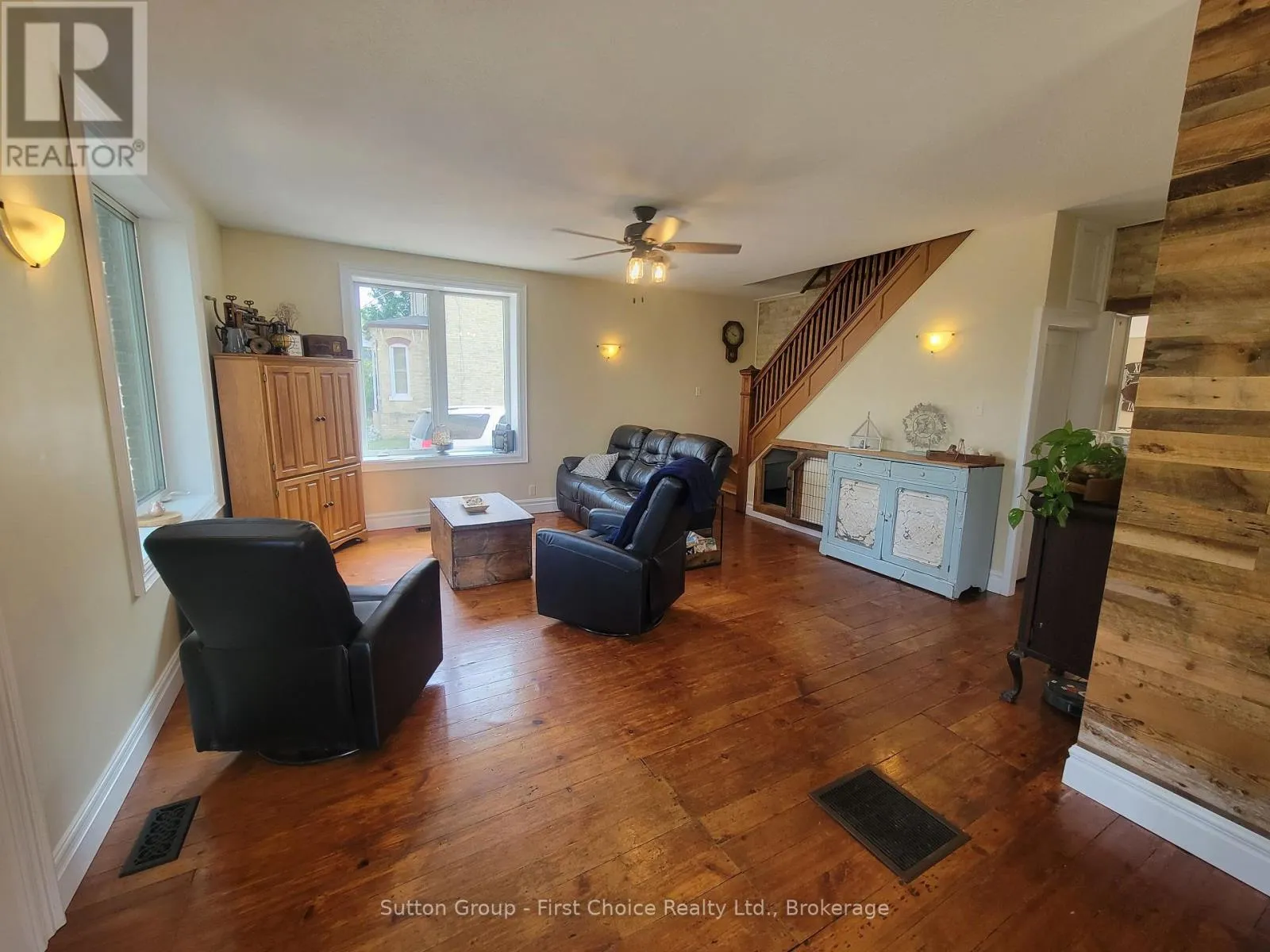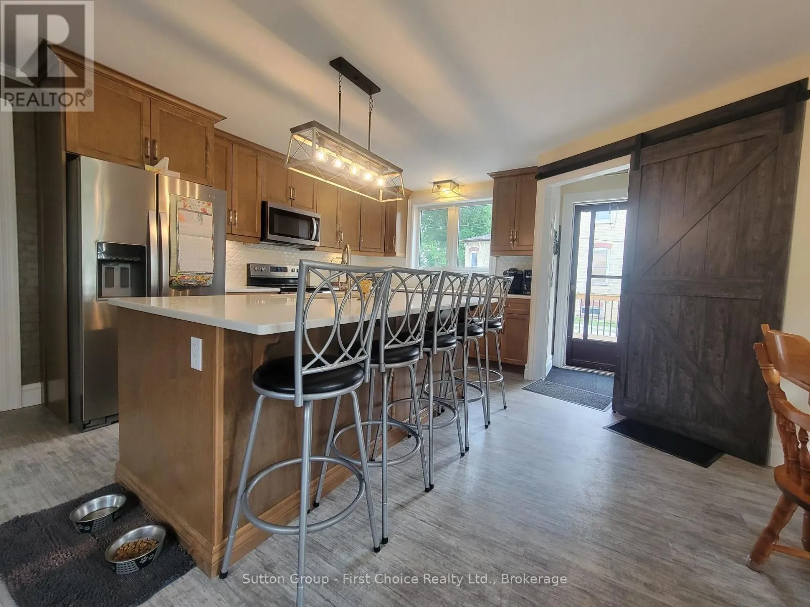 Cross Streets: King St. N. / Crediton Rd. ** Directions: Heading West on Crediton Rd. turn right onto King St. N.; Property On L.H.S. Beautifully renovated yellow brick century home on just over a 1/4 acre, in the quaint village of Crediton. This 4 bed 2 bath home features a great balance of many updates with much of the original charm. Stunning newer kitchen with sprawling island and tons of cabinet space! Dining area beside kitchen features patio doors to massive rear deck. Most of the flooring is Original (re-finished) pine floors. Living Room features a recently added corner gas fireplace and lots of natural light with large windows throughout (all windows updated). Upstairs offers 4 Beds with a huge Primary Bedroom featuring a walk-out to balcony overlooking the rear yard and spanning fields. Master Bed also has a large (19'4" x 6') walk-in closet that can easily accommodate a future ensuite if desired. The rear yard is the picturesque with a massive deck (2019) and rear shed (16'6" x 12'6"). Recently re-done roof (10 years for back when master was added, and 3 Yr old for the rest). Call your realtor today to see this fabulous family home, flexible closing date! (id:27476)