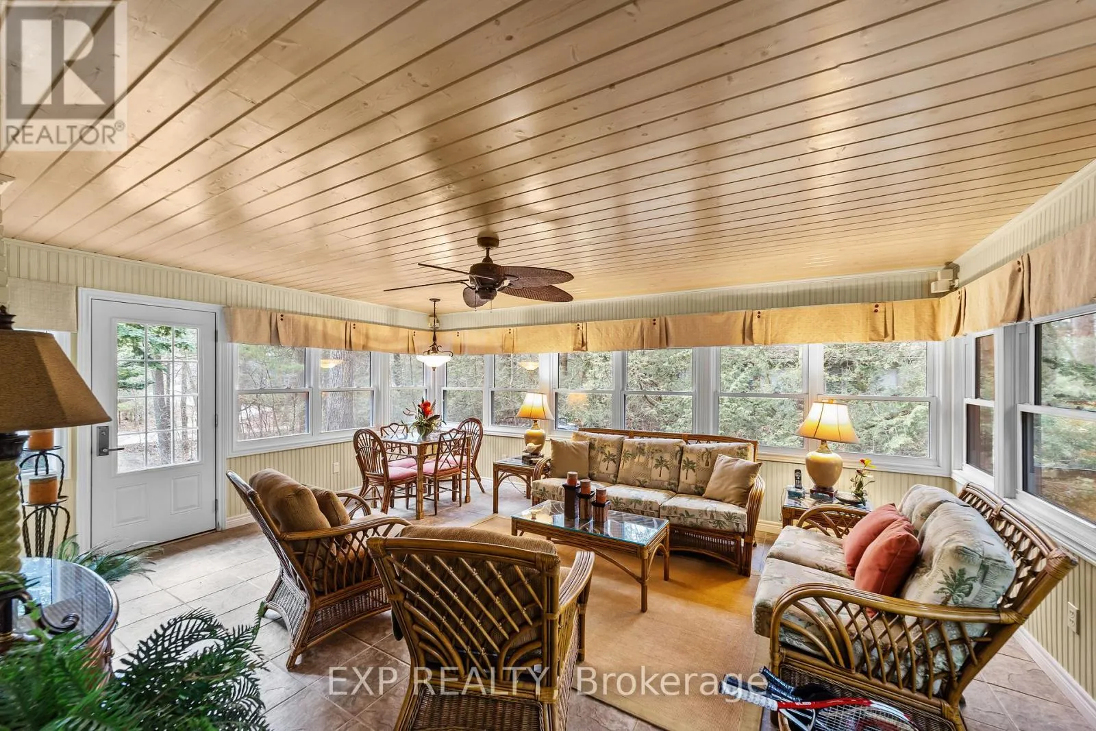 Cross Streets: Bluewater Hwy/Indian Rd. ** Directions: Indian Rd/Summit Ave. Set on an HUGE treed lot measuring approximately 99.23 ft x 261.77 ft with dual access from both the front and rear, a private tennis court, and exceptional entertaining spaces on both sides of the property, this is one of the rarest offerings available in Oakwood Park. If you've been trying to get into a private beach community in Grand Bend, this is one of the few chances you'll get. Perched up on a hill and surrounded by mature trees, the setting delivers a level of privacy and presence that's almost impossible to replicate. The depth of the lot creates multiple outdoor living zones, whether you're hosting, relaxing, or just trying to escape everyone for five minutes.The home itself is full of original charm, warm, inviting, and full of character you just don't get in newer builds. A gorgeous sunroom floods with natural light and acts as the heart of the home, while the tucked-away dining area, wrapped in windows, creates a quiet, almost hidden space to gather. Step outside and you'll find a fully enclosed tennis court, giving the property a true lifestyle edge that's rarely seen in this community. Combined with ample parking and the ability to access the property from both the front and back road, the functionality here is just as strong as the experience. From your front door, it's a short 2-3 minute walk along private paths to exclusive resident-only beach access, offering a quiet, sandy stretch of Lake Huron shoreline without the crowds.Oakwood Park is a gated, tightly held lakefront community on the north side of Grand Bend, known for its privacy, private beach, and proximity to everything while feeling completely removed from it. Freehold ownership with an annual fee of approximately $800 covers private roads, beach access, and community upkeep. (id:27476)