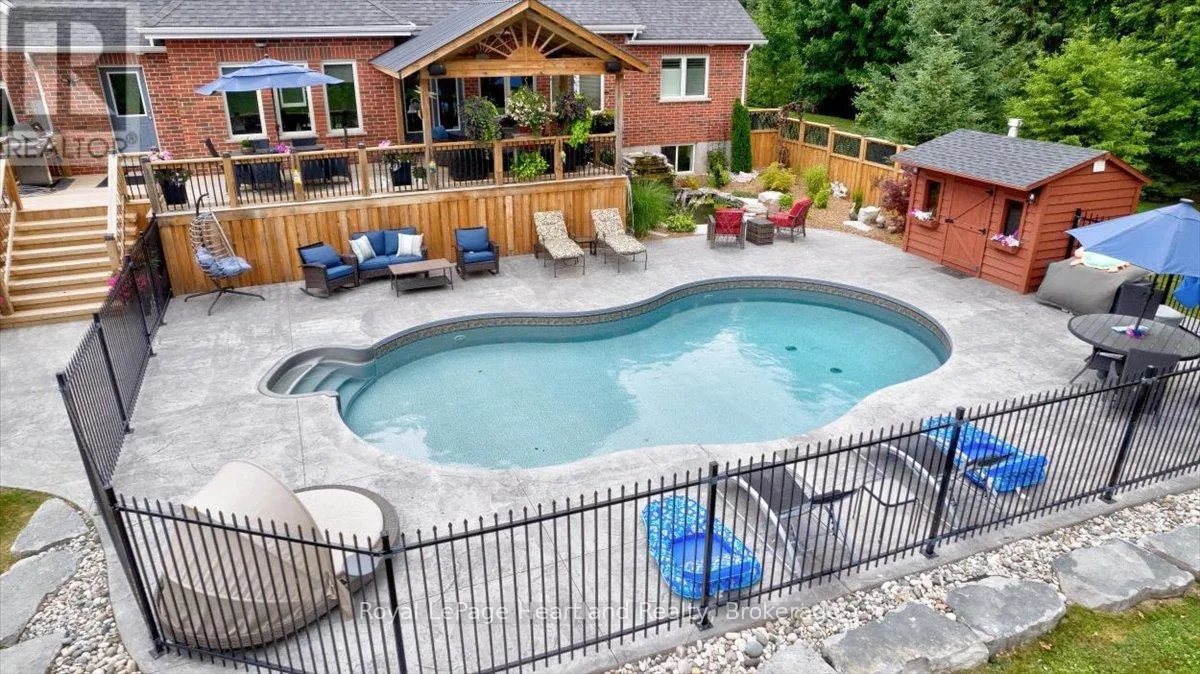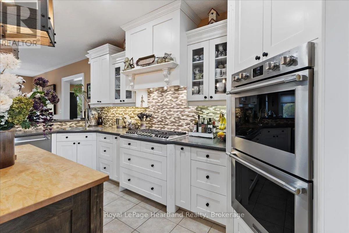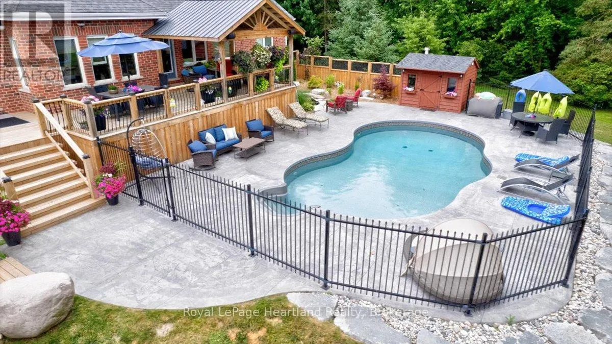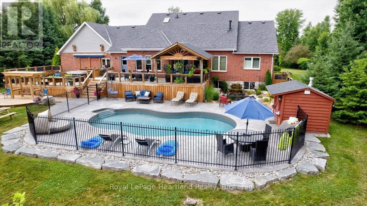Cross Streets: HWY 21. ** Directions: North of Grand Bend, off HWY 21 - 36241 Gore Road, Grand Bend. Welcome to this Prestigious address offering every luxurious desire you have ever dreamed of. Exquisite approximately 4-acre sprawling private country estate located mins from Grand Bend is an absolute showstopper. Professionally landscaped grounds and gardens surround this 2800 sq ft home. As the front door unfolds into the spacious foyer, all your guests will be in awe. The chef's kitchen features hardrock countertops, double built-in wall ovens, a breakfast bar, pantry & lots of room for Sunday family dinner gathered around the harvest table overlooking your backyard oasis. The striking stone gas fireplace is the focal point of the inviting living room. Main Floor primary suite has it all covered, w-i closet, ensuite boasting a w-i shower & soaker tub. Laundry will be enjoyable in this bright spacious main floor laundry room! Beautiful staircase leading to the Upper level featuring 2 bedrooms lg enough to accommodate sitting areas along with another full bath. Adding to the already extensive footprint is the lower level & it has it all. Lg family room, bedroom, bathroom, kitchen, den, & private walkup entrance into garage. Lower level offers a multitude of options for multi-family living, or potential for rental income, offering an excellent opportunity for investors or homeowners to offset carrying costs. You will never need another holiday again when you experience this backyard wonderland. Entire rear outdoor space has just been recently transformed with no expense spared. Awning-equipped Massive decks overlook the newly installed in-ground heated pool lined w/black iron fence & pool house. New hot tub under the pergola, by the tranquil pond. If you have pets, this pet paradise will provide so much space for them to roam & play or go on nature walks to the stream at the back of the property. This forever home will bring friends & family together and provide lasting memories for years to come. Rest assured you will find new meaning to the words Let's Stay Home. (id:27476)