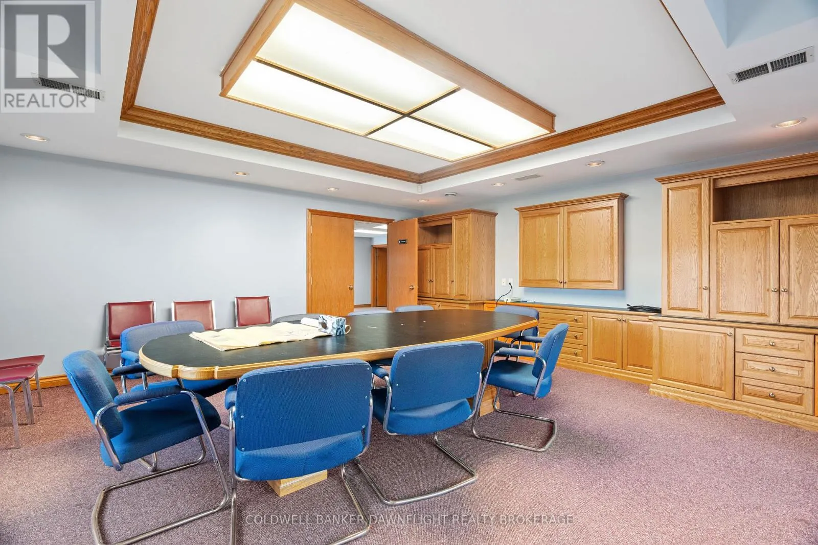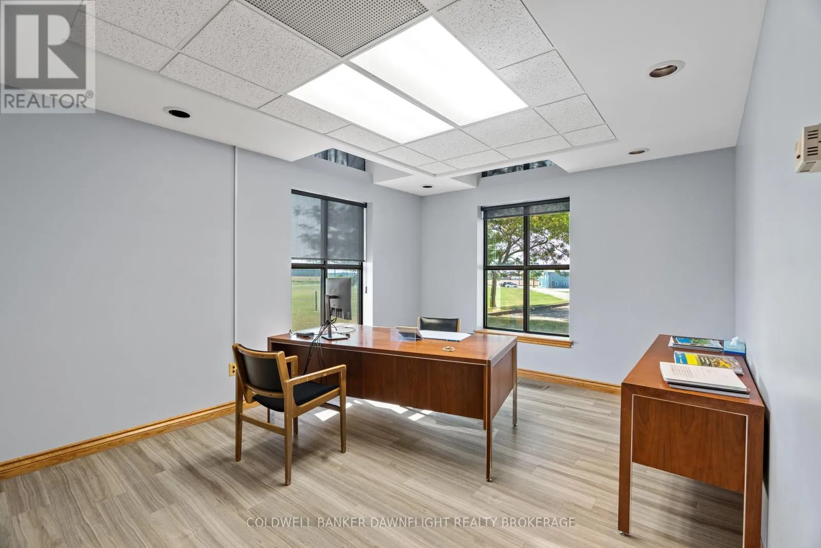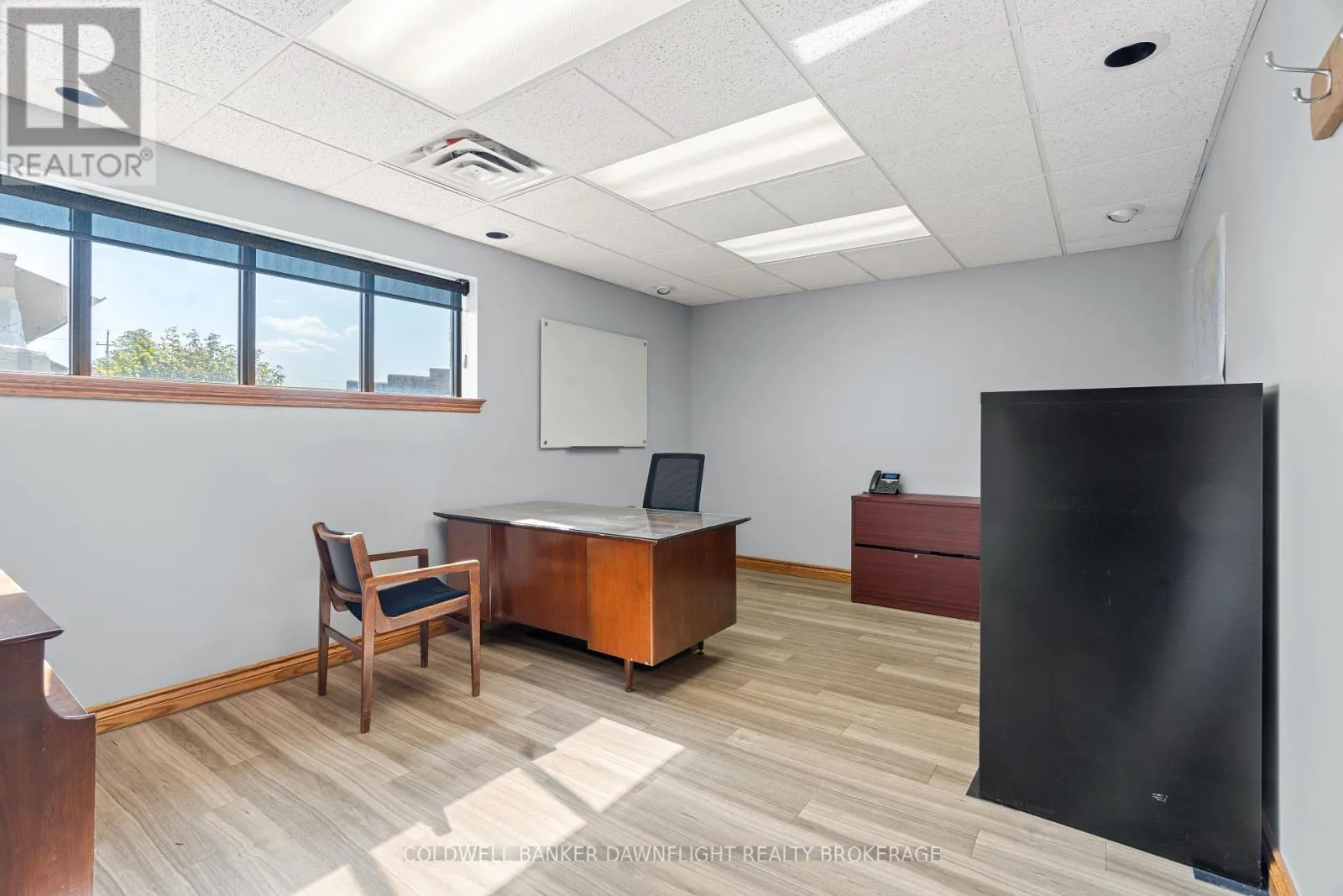 Cross Streets: North-west corner of Victoria Road & Mount Carmel Drive -. ** Directions: From Hwy 4 turn west onto Mt Carmel Road. Proceed right onto Victoria Drive. The property is on your left. What an opportunity! This meticulously maintained 2-level office building offers over 5,000 sq. ft. of finished space, perfect for meeting your business needs. Inside, you'll find multiple private offices, a spacious boardroom with custom cabinetry, open office areas, a dedicated employee lunch room, washrooms, and plenty of storage. The building boasts excellent curb appeal, designed by Oke Woodsmith Building Systems, one of the regions premier builders. The upper level is fully handicap accessible, either from the rear parking lot or via interior stairs. This versatile building can easily be divided into 2, 3, or even 4 separate units to suit your individual requirements. The possibility of living on one level and operating your business from the other level makes this property even more attractive. Each level has its own HVAC system, ensuring efficient climate control. Situated on a 2.44-acre corner lot, this property offers plenty of room for future expansion. It enjoys prime exposure and easy access to Highway 4 and nearby London businesses. Some office furnishings are included in the sale, and the building is ready for immediate possession. Priced well below replacement costs for a structure of this caliber, this is an a incredible value you won't want to miss! (id:27476)