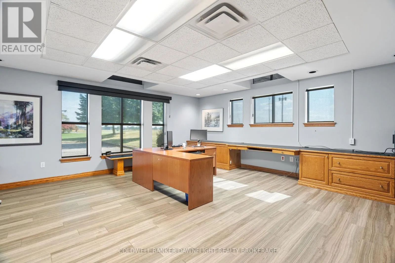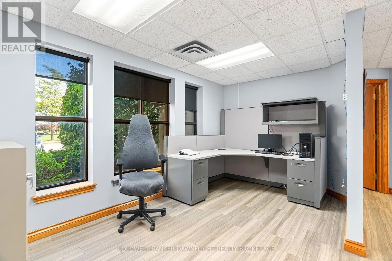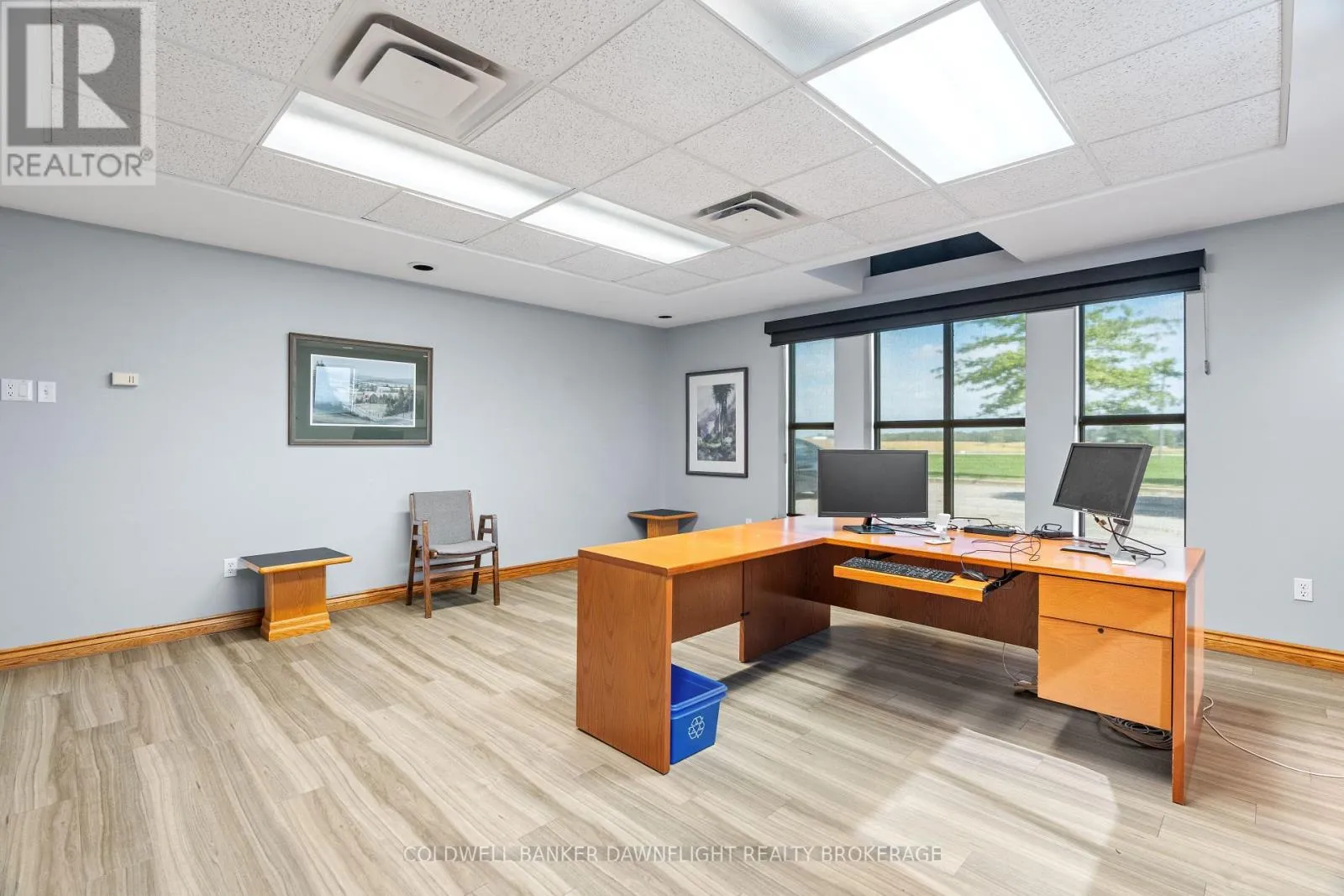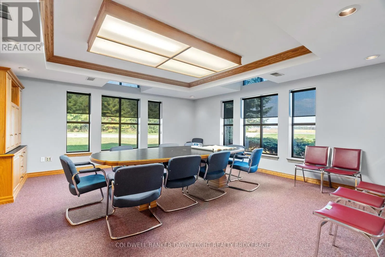 Cross Streets: North-west corner of Victoria Road & Mount Carmel Drive -. ** Directions: From Hwy 4 turn west onto Mt Carmel Road. Proceed right onto Victoria Drive. The property is on your left. What an opportunity! This meticulously maintained 2-level office building offers over 5,000 sq. ft. of finished space, perfect for meeting your business needs. Inside, you'll find multiple private offices, a spacious boardroom with custom cabinetry, open office areas, a dedicated employee lunch room, washrooms, and plenty of storage. The building boasts excellent curb appeal, designed by Oke Woodsmith Building Systems, one of the regions premier builders. The upper level is fully handicap accessible, either from the rear parking lot or via interior stairs. This versatile building can easily be divided into 2, 3, or even 4 separate units to suit your individual requirements. The possibility of living on one level and operating your business from the other level makes this property even more attractive. Each level has its own HVAC system, ensuring efficient climate control. Situated on a 2.44-acre corner lot, this property offers plenty of room for future expansion. It enjoys prime exposure and easy access to Highway 4 and nearby London businesses. Some office furnishings are included in the sale, and the building is ready for immediate possession. Priced well below replacement costs for a structure of this caliber, this is an a incredible value you won't want to miss! (id:27476)