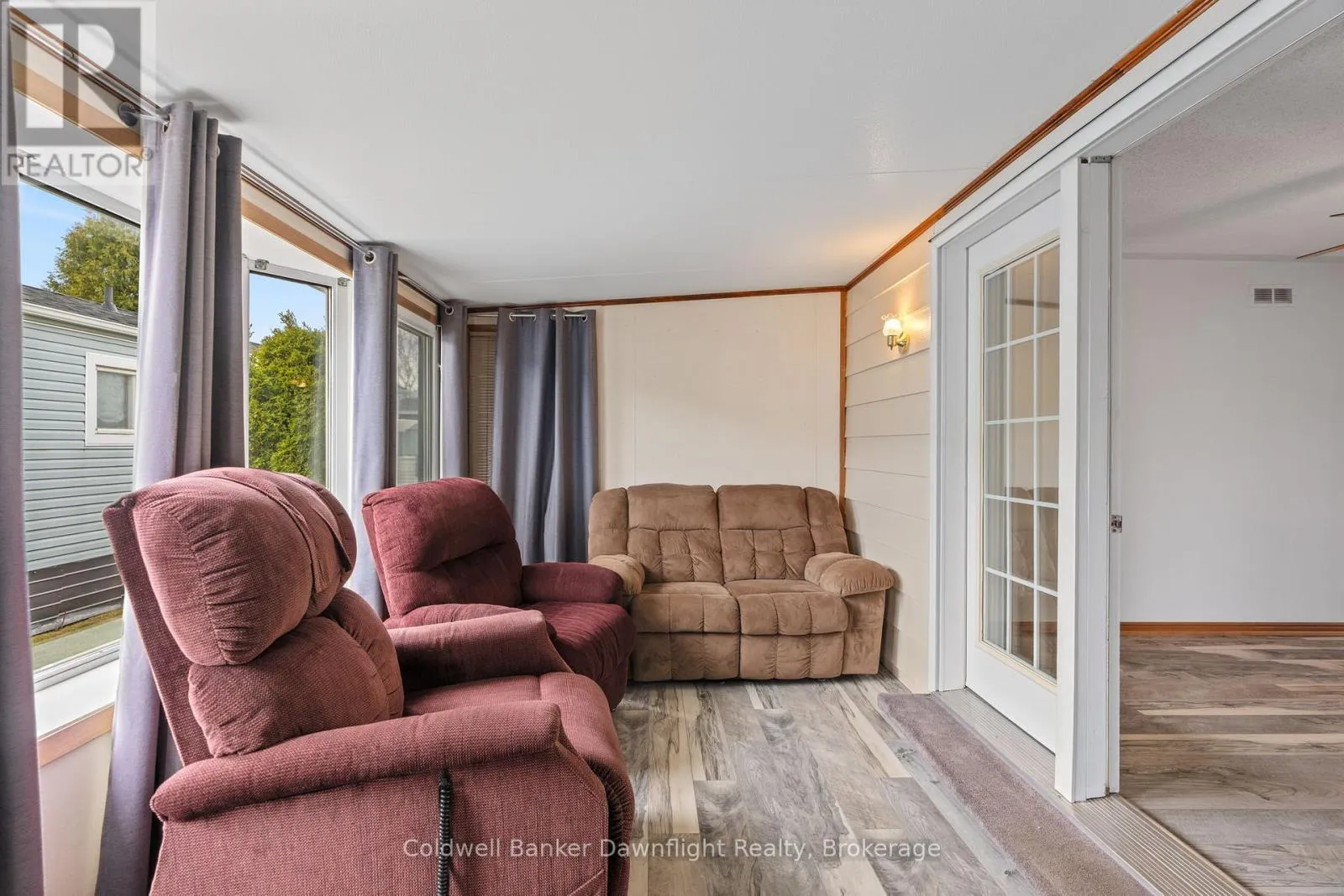 Cross Streets: Kalisch Ave & Redford Drive. ** Directions: Heading North on Main Street, Turn right onto George Street, Continue on Veri Blvd, Turn right onto Kalishe Ave, then left onto Redford Drive. Property is on the left side. Welcome to this beautifully maintained 2-bedroom, 2-bathroom modular home, ideally situated in the desirable adult community of Riverview Estates. Step inside through the inviting enclosed sunroom, where a cozy den area creates the perfect space to relax year-round. The home opens into a bright and spacious family room, featuring new flooring, abundant natural light, and plenty of room for entertaining family and friends.The kitchen is both cheerful and functional, showcasing generous cabinetry, ample storage, and an abundance of windows that fill the space with natural light. An adjoining, separate dining area provides the perfect setting for everyday meals or special gatherings.A convenient laundry/mudroom offers additional storage and includes a third entrance leading to a private side deck-an ideal spot to unwind with a book or enjoy peaceful outdoor moments.The large primary bedroom is a true retreat, complete with a walk-in closet, a 3-piece ensuite bathroom with shower, and a large window that enhances the bright and airy feel. The second bedroom is versatile and well-suited for guests, a home office, or additional living space. A well-appointed 4-piece bathroom and ample storage throughout the home add to its overall appeal.This charming modular home boasts excellent curb appeal, highlighted by a welcoming covered front porch-perfect for morning coffee-along with a double driveway and a fantastic workshop for hobbyists or additional storage.Residents of Riverview Estates enjoy access to a private community pond and the scenic McNaughton Trail, ideal for leisurely walks. The community recreation center offers a vibrant social atmosphere with activities, games, and events to enjoy year-round.Conveniently located close to shopping, dining, banking, and essential amenities, this home offers a relaxed, low-maintenance lifestyle in a friendly and welcoming community. (id:27476)