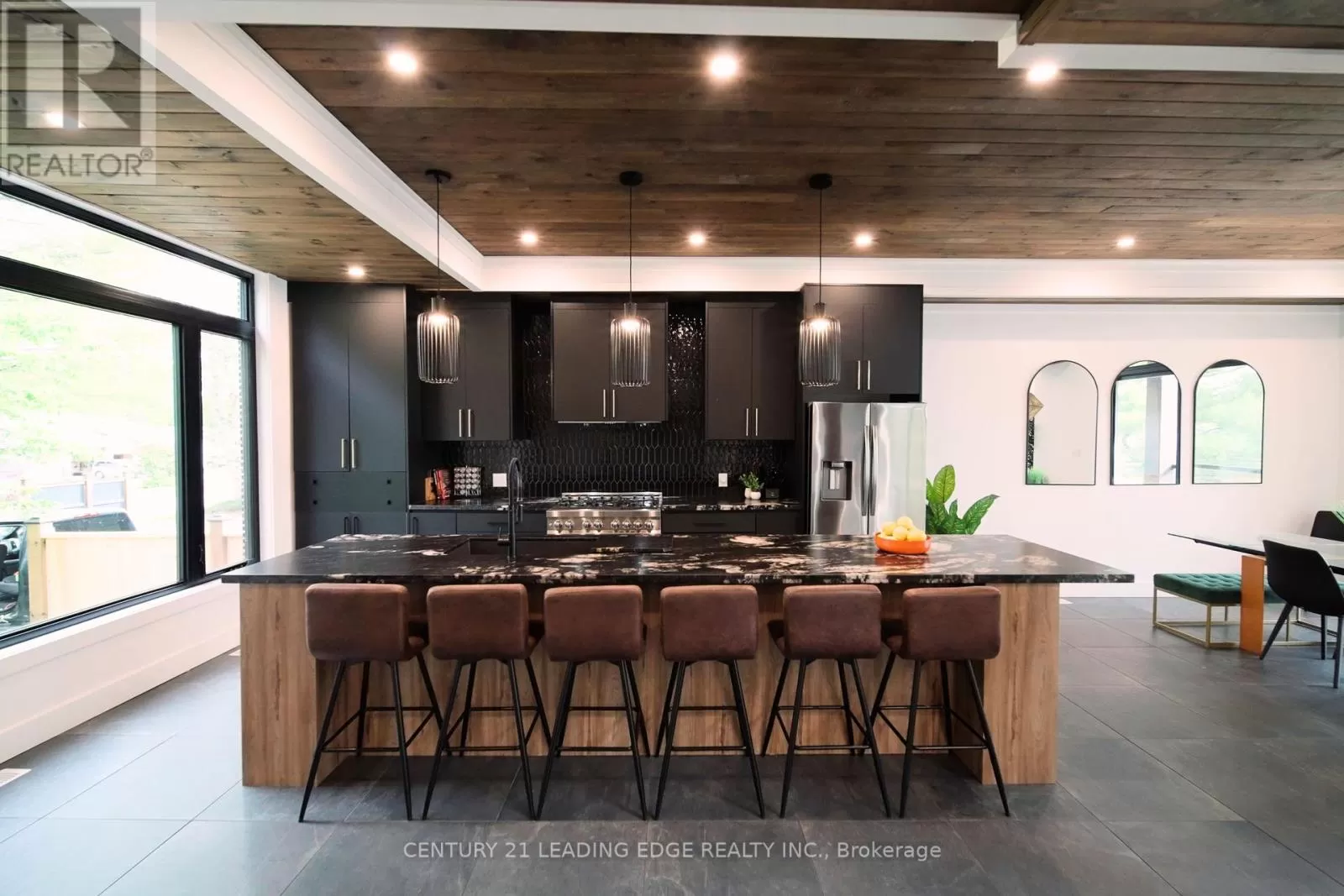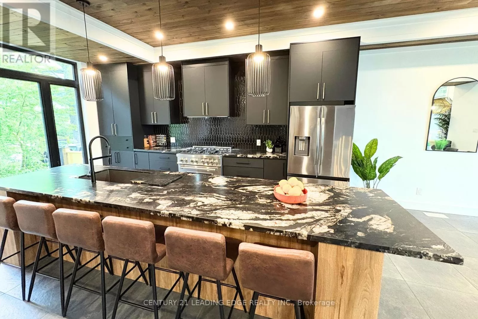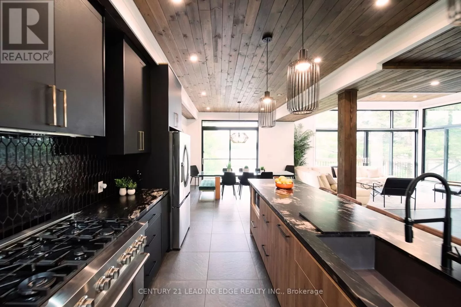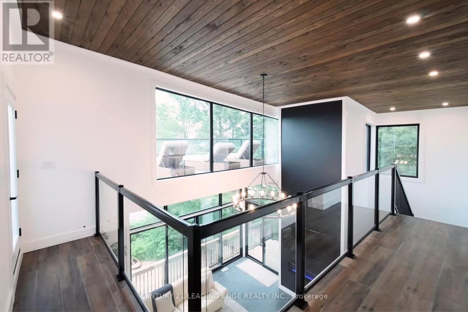 Cross Streets: Hwy 11 and Ottawa Ave. ** Directions: North on 11 to Ottawa Ave., Turn. Welcome to 34 Ottawa Avenue, an extraordinary newly built waterfront retreat nestled on the pristine shores of Forest Lake in the charming community of South River in Parry Sound. This rare offering is more than just a waterfront home, it's a fully operational short-term rental business with a proven track record of impressive income, making it ideal for investors and lifestyle seekers alike. Designed with both comfort and luxury in mind. This expansive modern residence accommodates up to 14 guests, making it perfect for large families, vacation groups, or rental clients seeking an unforgettable lakeside getaway. Inside, you'll find a stunning modern layout, high-end finishes such as leathered countertops, 20' ceiling height with floor-to-ceiling fireplace, and ample space for entertaining and relaxation. Step outside and immerse yourself in the natural beauty that surrounds you. The property boasts clean, clear water ideal for paddleboarding, swimming, and boating, along with a private sandy beach where guests can unwind and enjoy the serenity of lake life. The second-story lounge decks provide the perfect vantage point for taking in panoramic views of Forest Lake, an unforgettable backdrop for morning coffees or evening sunsets. Whether you're looking to expand your investment portfolio with a thriving, high-performing vacation rental or seeking a luxurious family compound on the water, 34 Ottawa Ave. delivers both lifestyle and income in one exceptional package. Don't miss this opportunity to own a one-of-a-kind waterfront gem with endless potential. (id:27476)