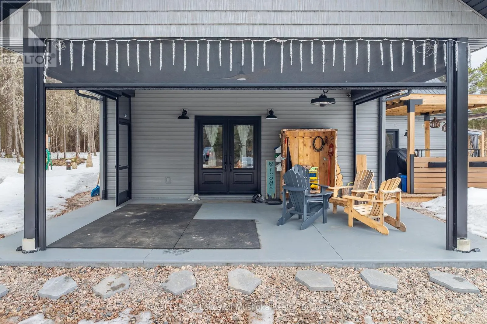 Cross Streets: Chemical Road and Boulder Road. ** Directions: Ottawa St in South River to Chemical Rd to Boulder Rd to SOP. Your private 1+1 bed, 1930 sq.ft. home sits on 14 ac in an Unorganized Township. This beautiful property features mature trees throughout the majority of the property with trails throughout. The home is built with quality and comfort in mind. From entry you'll be in awe of the Main Floor open concept design with Cathedral Ceiling lined with custom stained pine imported from BC. A beautiful Gas Fireplace exudes ambiance and is hand built with granite from Manitoulin Island. Gently slide a beautiful barn door open and a large Pantry/Bar is unveiled just off the huge Kitchen and Dining Room combination with solid maple cabinetry, custom quartz countertops and Stainless Appliances. Western exposure out the patio door offers amazing sunsets with lots of fresh air. Automatic blinds can all be controlled at once or separately. This Energy Efficient home has Triple Pane Windows with Insulated Concrete Formed (ICF) walls help keep the house warm and cozy in the cold seasons and cool in the warm seasons. The Main Floor also has a Large Bedroom with Cathedral Ceiling and Two patio doors to multiple decks, The Main Floor Bathroom has a large standup shower c/w with rain head shower head and soaker tub. Also, the Main Floor has the Laundry Area, and Utility Room. The Upstairs Loft offers additional Living Space / Bedroom for overnight guests or use it as an Office. All rooms on the Main Floor are Wheel Chair Accessible. The Utility Room offers easy access to the Combination on Demand Hot Water / Hydronic In-floor Heating System. Also, there is a back-up Hot Air Furnace, c/w an attached HRV Ventilation System, for fresh air. Outside there's an Automatic Generator. Added Features include a three sided Motorized Screened in Carport, 130 ft deep drilled well and a Work Shop. Underground hydro lines to future garage site. Lots of parking for ATVs and Snow Machines. This home is located in Hunting Zone 50, Fishing Zone 15, OFSC Snow Mobile Trails, and ATV Trials are minutes away. (id:27476)