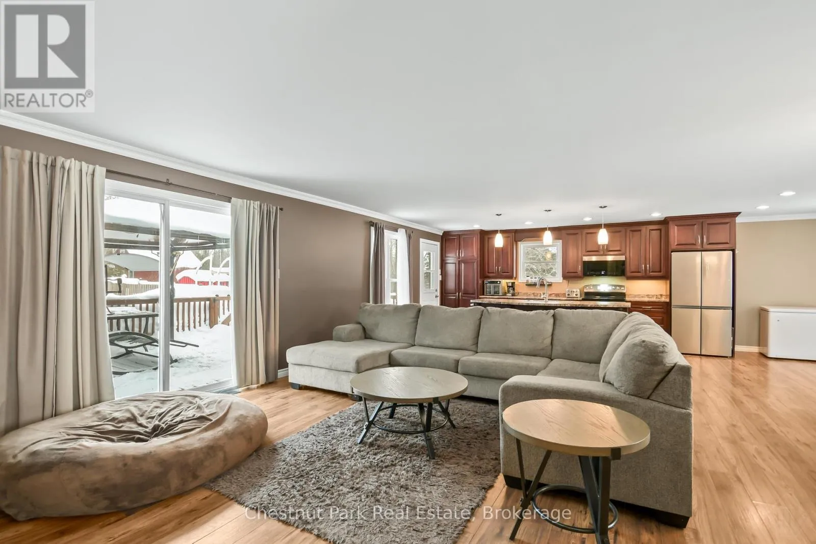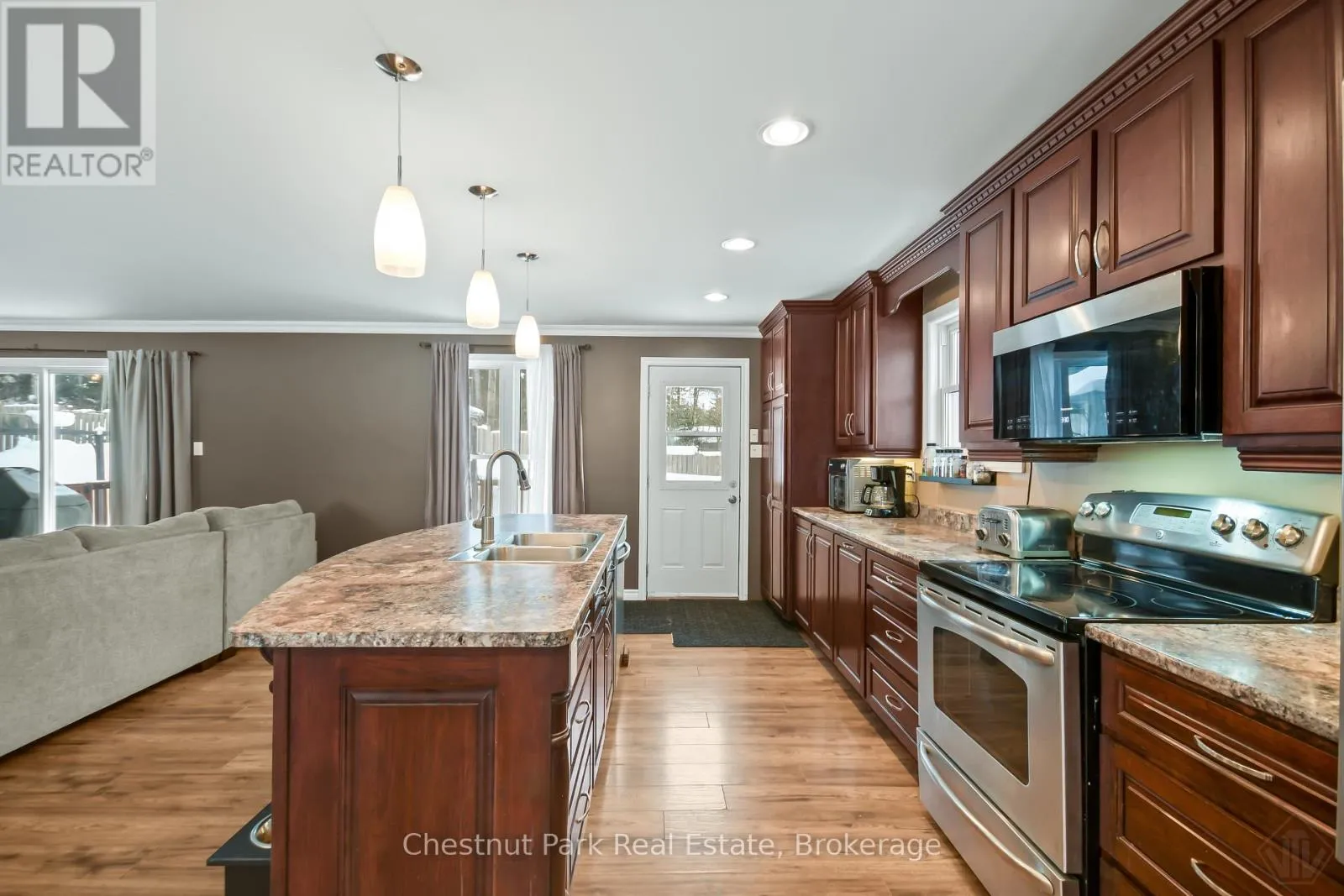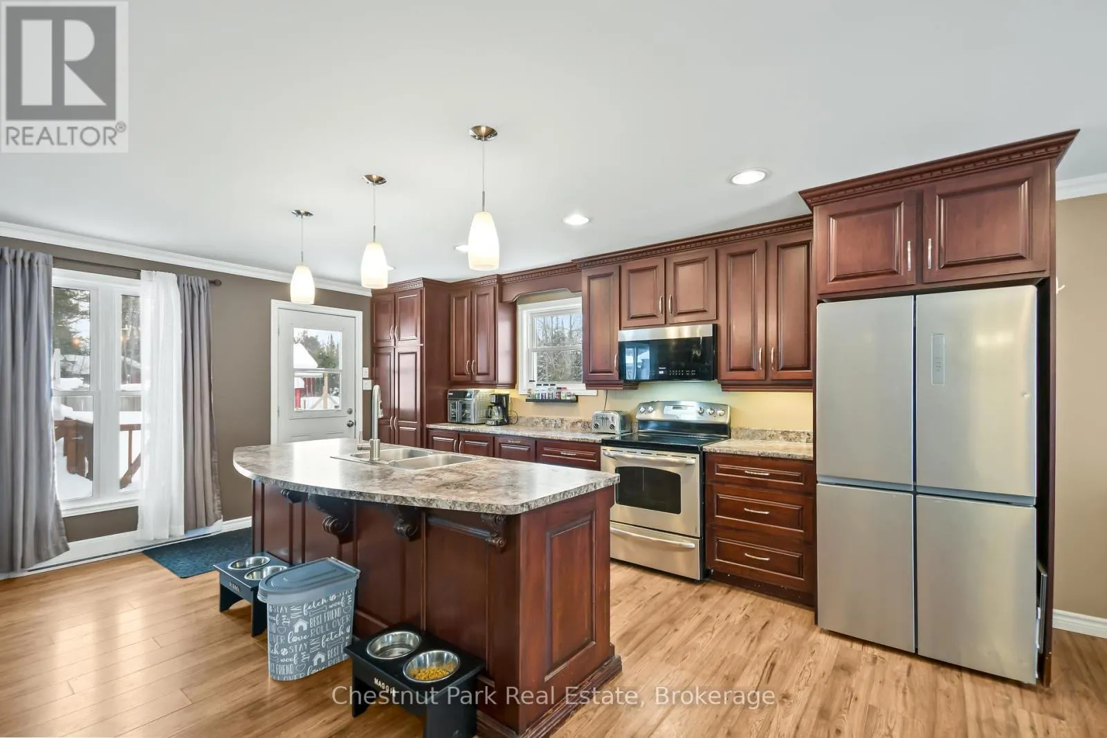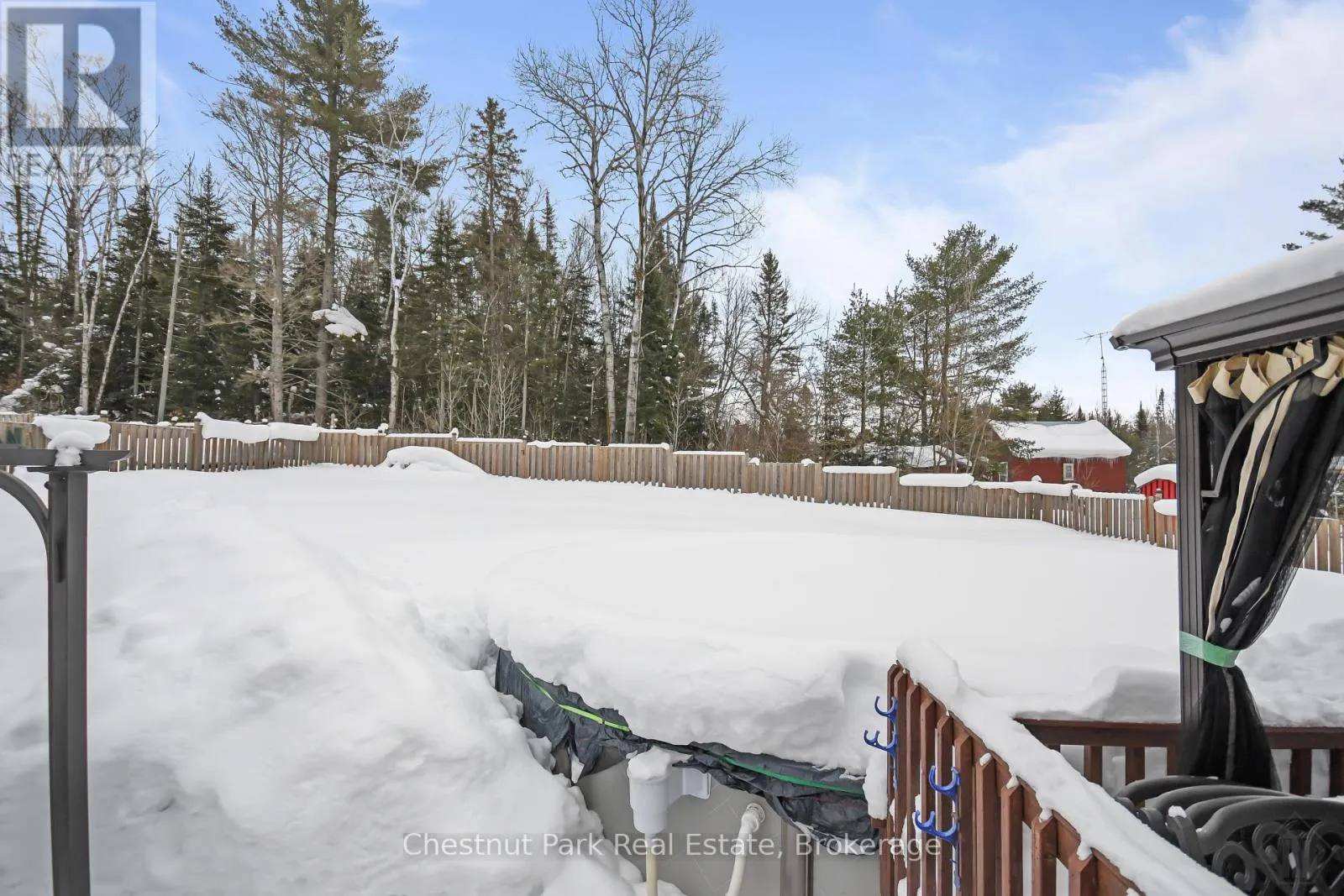Cross Streets: Eagle Lake Road. ** Directions: Hwy 124, left Marie St, Right Eagle Lake Road, Right on Johnston Road. IDEAL HOME FOR YOUNG FAMILIES or empty nesters that strikes a balance between comfort, safety, practicality, and community connection. Family-friendly neighbourhood with low traffic on DEAD-END Street with FIBRE internet. Heated with NATURAL GAS to help keep utility costs manageable, with new Briggs & Stratton full automatic generator and central air to ensure comfort throughout the year. Fantastic large patio area with granite and stone as you enter this solid brick raised bungalow with 2 bedrooms, office or bedroom, main 5pc bath, 3pc ensuite bath, ensuite walk-in closet with huge open concept space for the large modern island kitchen, dining and living room area with gas fireplace. Walk-out to 30' deck with gazebo, gas connect for BBQ, hot tub & 26' above ground pool & fire pit. Good sized landscaped backyard, fully fenced for your furry friends. Lower-level family room, large bedroom, 2pc washroom, laundry room, with home entry to 1.5 car partially insulated garage to large mud room for coats & boots during the winter months. Large double spaced driveway to accommodate 6 cars or if trailer space is needed. Outdoor recreation to ALGONGUIN & MISKISEW Provincial Parks, plus local spots like Tom Thomson Park, featuring disc golf, trails, with boat launch. Local amenities include medical centre, pharmacy, library, elementary & secondary school (bus pick-up), community centre/arena for sports events, grocery store, gas & shops. There is a strong sense of community here in South River, making this home the ideal location to raise your children or for empty nesters to enjoy recreational activities with close access to two Provincial Parks. Pride of ownership is very evident here, here are some updates; roof shingles 2022, full automatic generator 2024, leafless gutters 2024, pool pump/filter/cover 2025 plus more! Fully carpet free, crown moulding in main living area. South River is located 10 min. north of Sunny Sundridge Ontario & 30 min. south of North Bay. (id:27476)