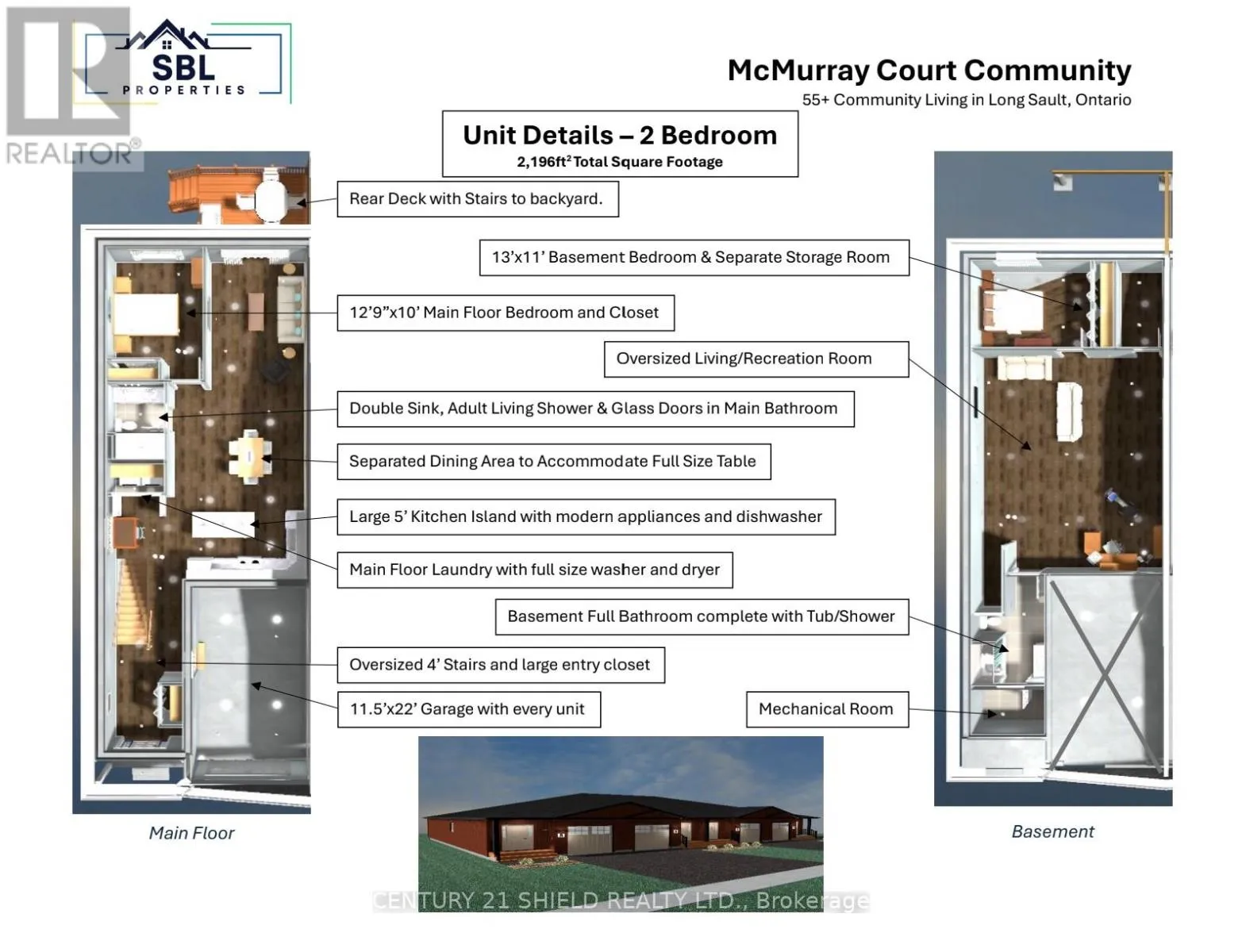 Cross Streets: Forrester Way and McMurray Court. ** Directions: From hey 36, take Forrester Way and turn right on McMurray Court. Stylish, Spacious & Maintenance-Free Living in Long Saults Premier 55+ Community. Welcome to easy living in the heart of Long Sault, one of Eastern Ontario's best-kept secrets, nestled along the shores of the stunning St. Lawrence River. Known for its scenic trails, waterfront parks, and small-town charm, Long Sault is the perfect blend of tranquility and convenience just minutes from Cornwall and an easy drive to Ottawa or Montreal. This beautifully designed 2-bedroom bungalow is part of a thoughtfully developed 55+ community by SBL Properties and features 1,100 sq. ft. of main floor bright, open-concept living space plus fully finished basement for a total of 2200sqft. The main floor offers a spacious primary bedroom, a full bathroom, and a modern kitchen with high-end finishes, opening to a private rear deck ideal for morning coffee or quiet evenings. The attached garage adds everyday convenience, and the ICF construction makes each home up to three times more energy and sound efficient than traditional builds. The fully finished basement offers even more living space with a second bedroom, a second full bathroom, and a large rec room perfect for guests, hobbies, or relaxation. Enjoy maintenance-free living, with lawn care and snow removal included, so you can focus on what matters most whether its a walk through the Long Sault Parkway, a ride along the bike trails, or time spent with family and friends. We are currently in the construction phase, with landscaping and driveways to be completed as progress continues. First finished units will be ready by the end of April. Monthly lease also includes additional services: annual spray down of the exterior and decks, eavestrough cleaning, spring garden bed renewal, and fall HVAC maintenance (including furnace filter replacement, AC cleaning, water heater testing, and HRV unit service).All designed to keep your home running smoothly, looking beautiful, and stress-free year-round. (id:27476)