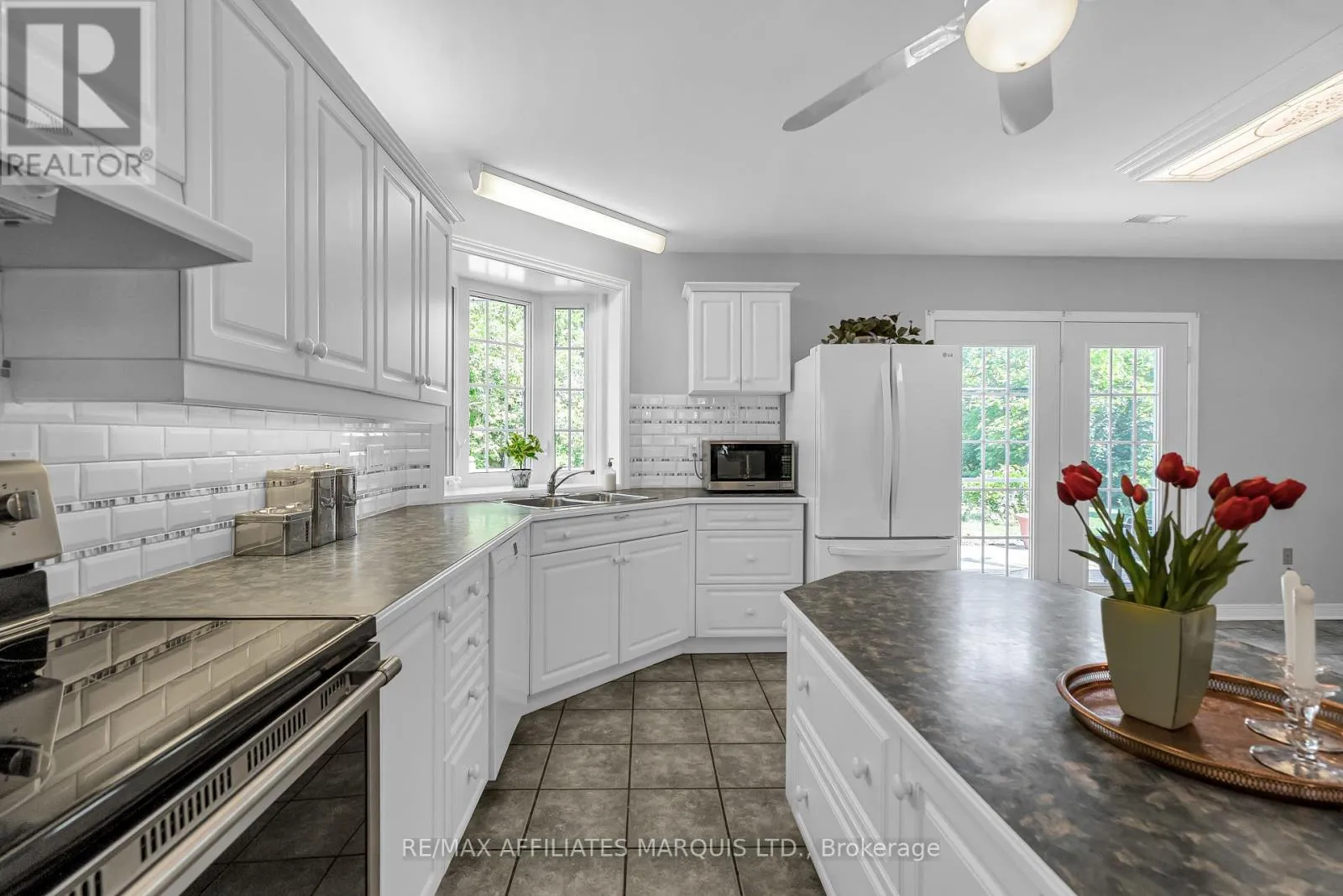 Cross Streets: Moulinette Rd & Hwy #2. ** Directions: From Hwy 401, Exit # 778 Long Sault, South on Moulinette Rd., left on Strachan Ave, left on Saunders Ave. to 24 on left side look for sign. This 1,450 sq. ft. bungalow, built in 2000 on a concrete slab with in-floor radiant heat with four separate zones (natural gas hot water tank) and ductless air conditioning offers comfortable and efficient one-level living. The home features a welcoming living room with a bay window and natural gas fireplace, a bright dining area with hardwood flooring, and a beautifully updated kitchen with ceramic tile flooring, a subway tile backsplash, ample cupboard and counter space, a center island, and a double sink set beneath a charming garden window, a breakfast area with garden doors opens to the rear yard, while the spacious primary bedroom includes double closets and a private 3-piece ensuite. A second bedroom, 4-piece main bath, utility room, and a convenient laundry closet complete the layout. The attached 1.5-car garage provides space for vehicle parking as well as a workshop area. Additional features include three sun tunnels providing natural light, front verandah, rear concrete patio, and a storage shed, 200amp electrical service. Situated on a 60' x 127' lot backing onto an Trans-Northern Pipeline right-of-way, this property offers added privacy and outdoor enjoyment. Complete feature sheet attached in documents. Please allow 48hr irrevocable on all offers. (id:27476)