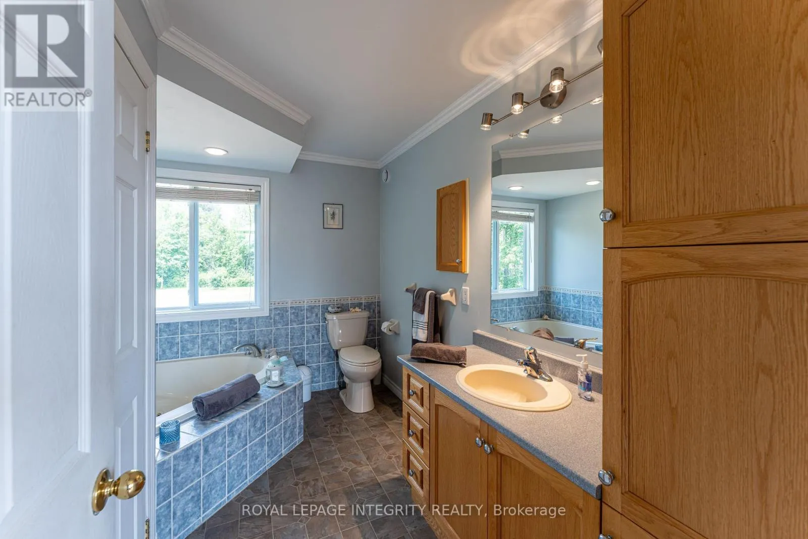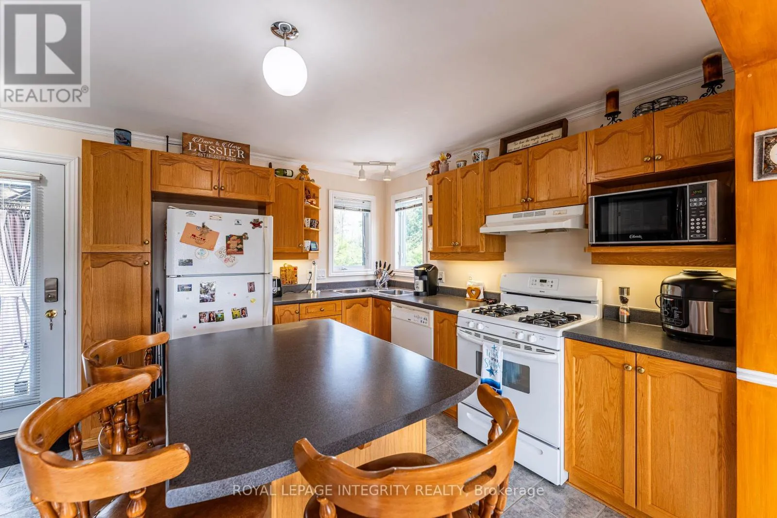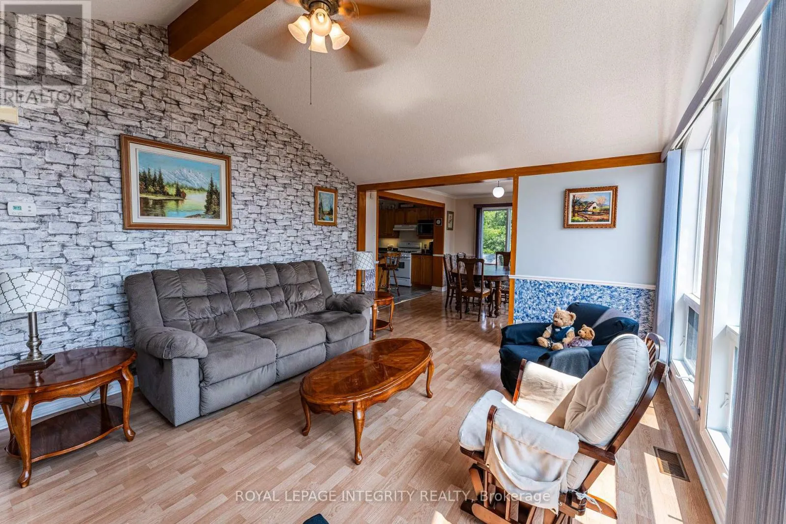 Cross Streets: Wales Drive. ** Directions: Highway 2 East of Ingleside on North Side. Charming 2-bedroom, 2-bathroom bungalow built in 2005, set on a spacious double lot. This bright and inviting home features a living room with wall-to-wall, ceiling-high windows that fill the space with natural sunlight. The kitchen opens to a large back deck, perfect for entertaining, while the dining area offers walkout access to a front deck. The basement includes a finished rec room and potential to expand by dividing the extra-large heated, insulated garage double deep for a workshop or abundant storage. The oversized driveway provides ample parking and a 50-amp RV hookup. The property is on septic and well and city water is at the road ready for hook up. This home is just waiting for a family who loves the outdoors. Call today for a private viewing. (id:27476)