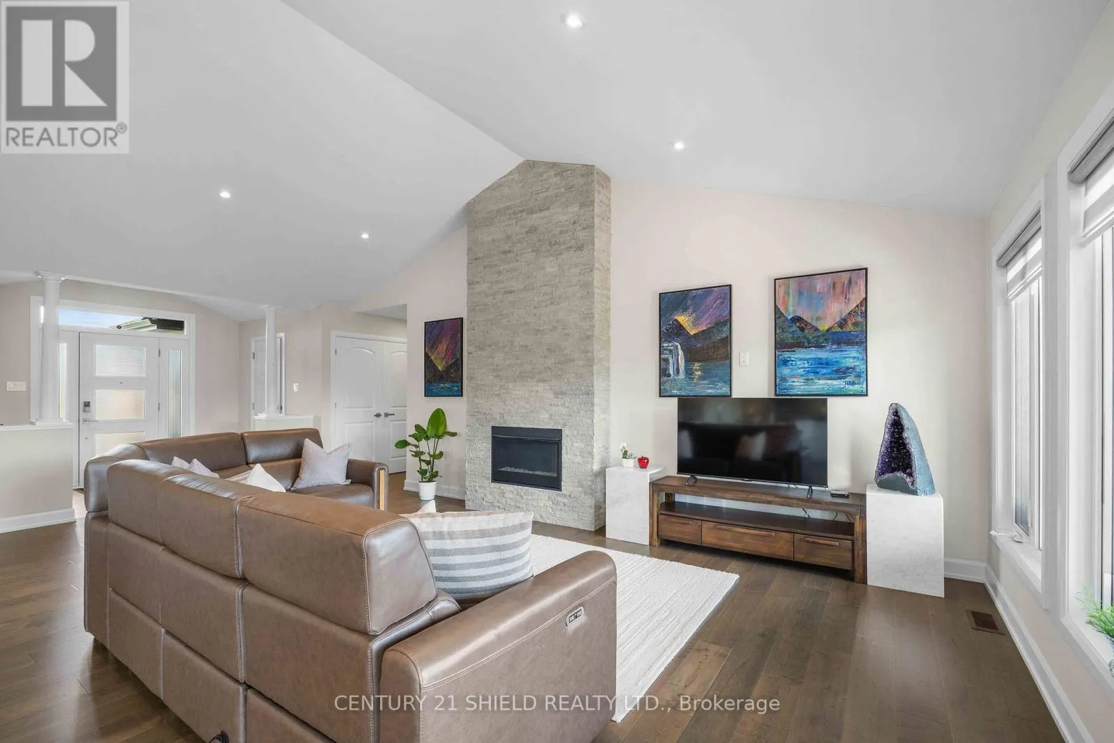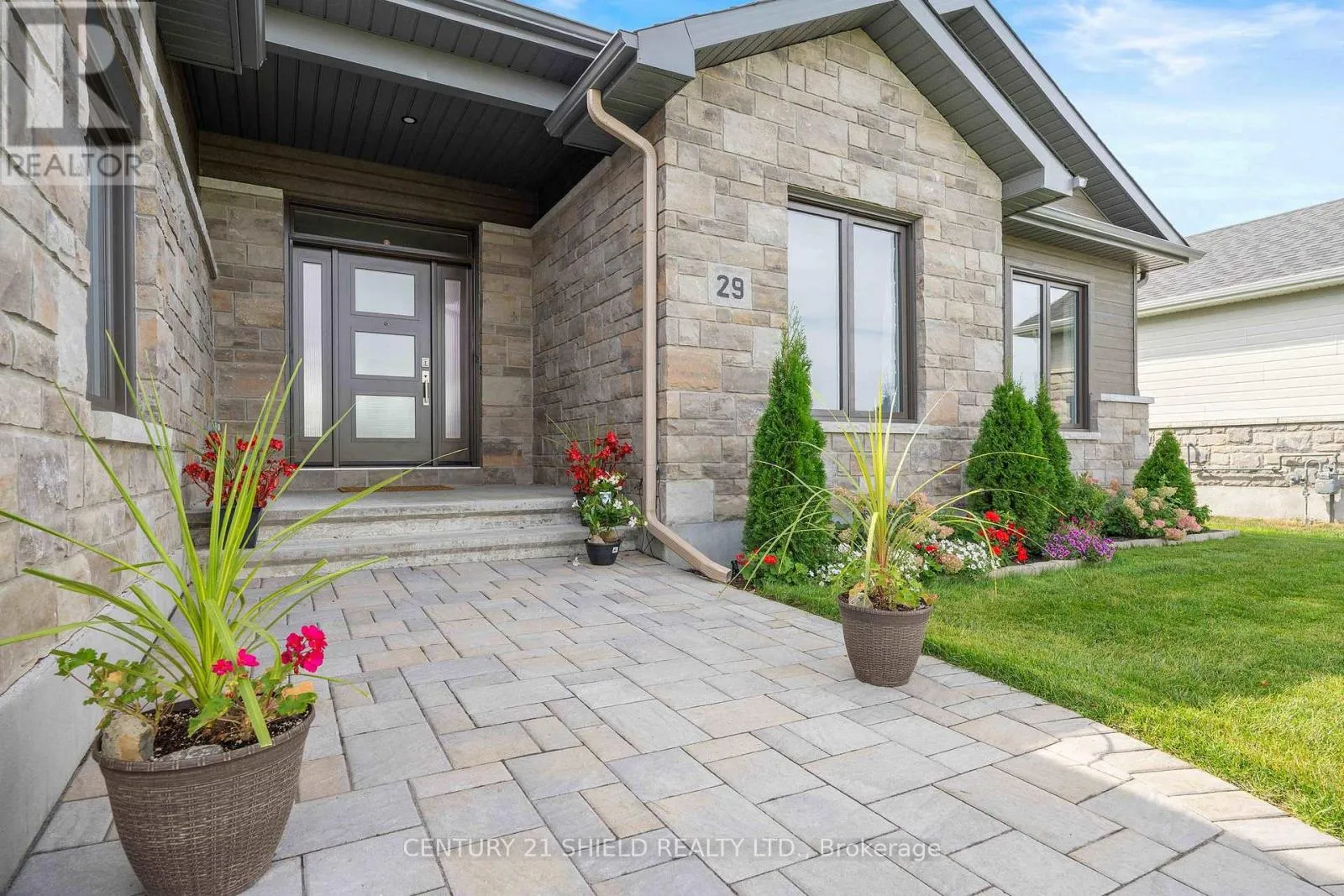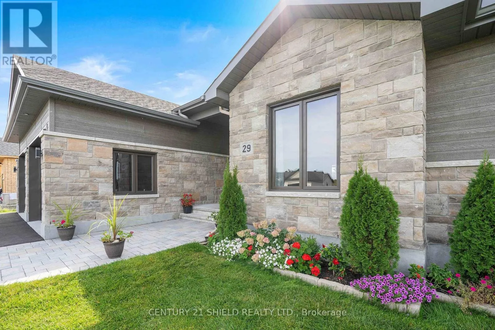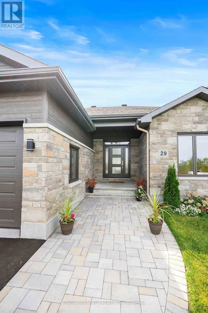 Cross Streets: Whitetail Ave & Fickes Rd. ** Directions: Just north of County Rd 2 and East of Village of Long Sault. Introducing Stunning 29 Whitetail Ave in beautiful Long Sault! Tucked away in the prestigious community of "Arrowhead Estates", this '24-built masterpiece combines modern luxury with serene living! If you've been searching for a newer home with all the bells & whistles, where you can relax and recharge - this is it! At a first glance, the exterior makes a bold statement with its high-grade stone façade & extended 2-car garage & driveway. Out back, you'll also find a paved walkway, a BBQ gas hook up, covered private deck & pot lights overlooking the beautifully landscaped oasis, the perfect setting for peaceful mornings & entertaining. As you step inside, prepare to be impressed: The welcoming foyer sets the tone with ceramic flrs, a convenient closet, & elegant columns. The home opens up into a bright, airy layout with oversized windows and an abundance of pot lights that fill the space with style. At the heart of the home, is a chef-inspired kitchen, a true showstopper with large breakfast island ideal for prepping meals for your loved ones & entertaining, sleek silver ceramic backsplash, quartz countertops, a walk-in pantry & high-end appli. The DR area flows effortlessly to the back deck via patio French doors, creating a seamless indoor-outdoor living experience. Unwind in the inviting LR, where a gas fireplace adds a touch of coziness to the sophisticated design. The main floor offers 4 serene bedrms & 2 full baths, incl. a primary retreat with a panoramic view, a spacious walk-in closet, and a spa-like ensuite. A perfect blend of elegance, comfort, and modern design, 29 Whitetail Ave is a true gem in the heart of Long Sault. Dont miss your chance to call this spectacular home yours! Upgrades: Additional Windows/DR/Bathrm, Drywall, Fluo lights, 50 amp/gar., bidet/upgraded shower faucet/mirrors/in bathrm, lots of pot lights in each room, pillars, FRPL, Extra Stones, backsplash, walk-in pantry, cedar fence, sodded yard. Pls allow 24 Business Hrs irrevocable. (id:27476)