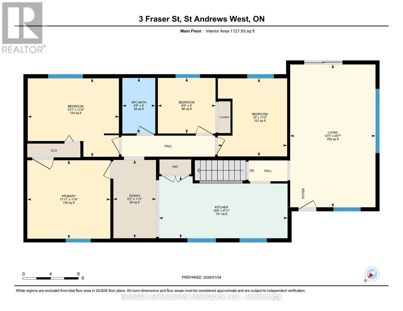 Cross Streets: County Road 18. ** Directions: Go North on the 138, turn left onto County Rd 18, turn right onto Fraser Street. First house on the right hand side. Welcome to this charming four-bedroom bungalow nestled on a quiet dead-end street in the desirable village of St. Andrews West, South Stormont. Offering 1,121 sq. ft. of main floor living space, this home is ideal for anyone seeking peaceful small-town living. Enjoy the perfect balance of tranquility and convenience, with easy access to both Highway 401 and 417, placing major cities less than an hour away while still enjoying the close-knit feel of a friendly village community. The main level features a bright and spacious living room filled with natural light, complete with patio doors leading to an extra-deep backyard-perfect for outdoor entertaining, gardening, or relaxing in privacy. The kitchen and dining area offer functional space for everyday living, while four comfortable bedrooms and a 4-piece bathroom complete the level. Downstairs, the finished lower level provides a large open-concept space ready to be customized to suit your needs-whether it's a family room, home office, gym, or a combination of all three. Additional highlights include ample storage space and a separate utility room. Located in a great neighbourhood and surrounded by quiet streets, this home is truly a must-see for those looking for comfort, flexibility, and small-town charm. (id:27476)