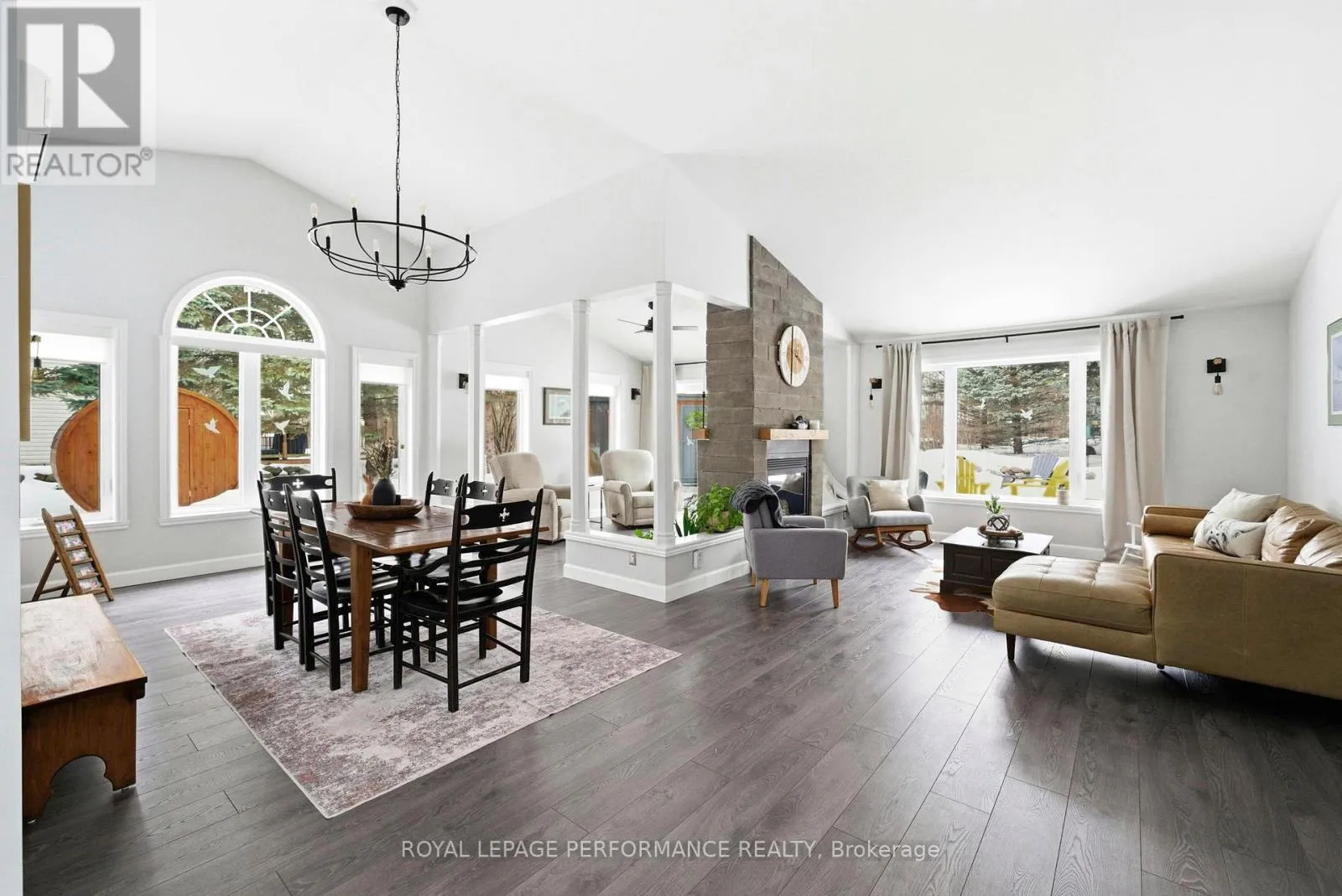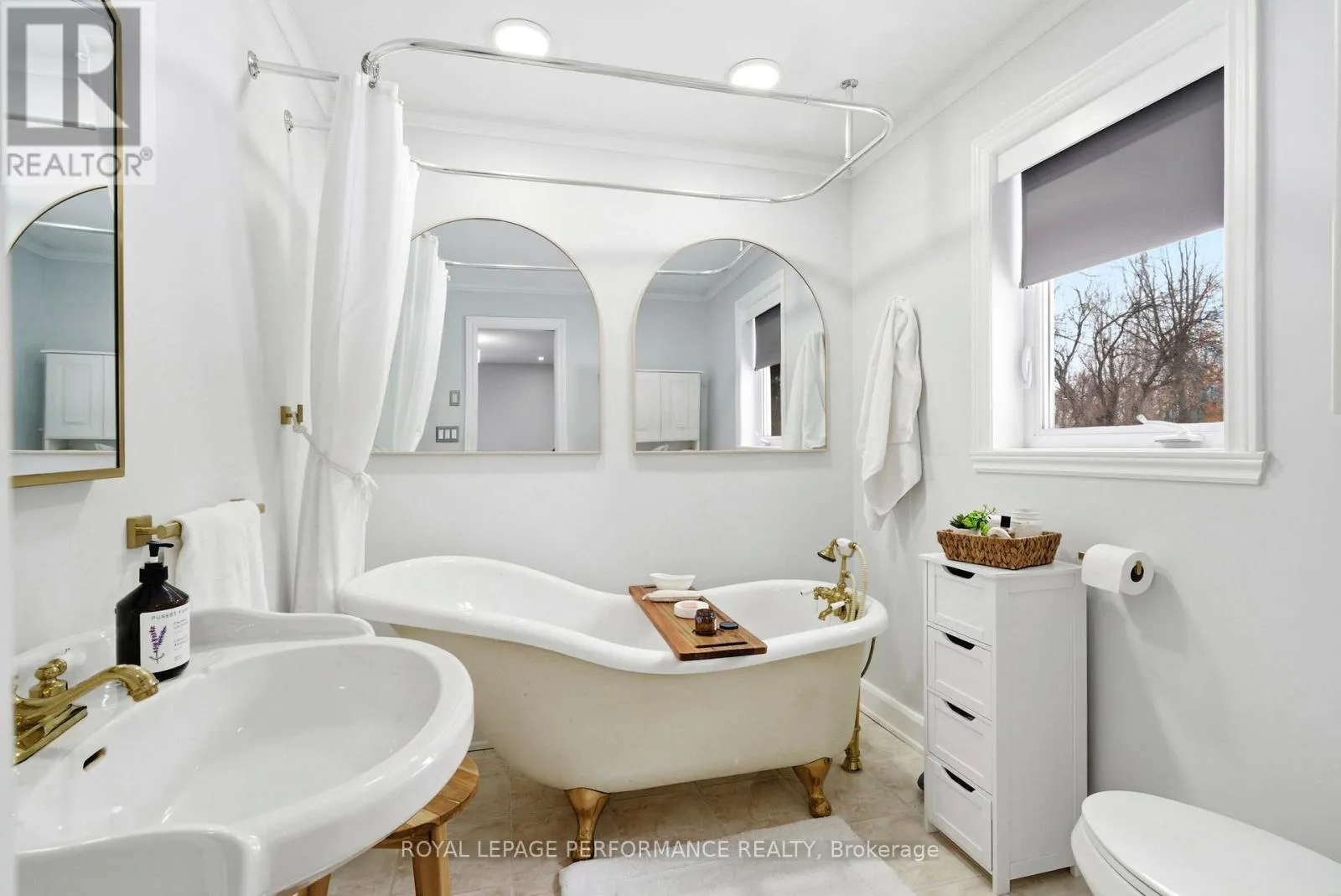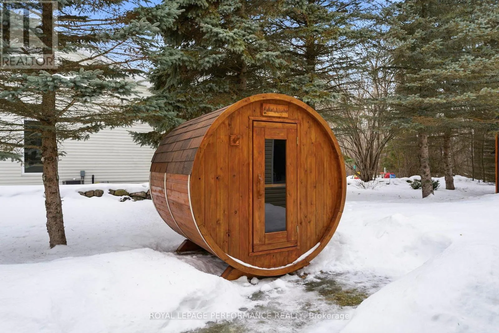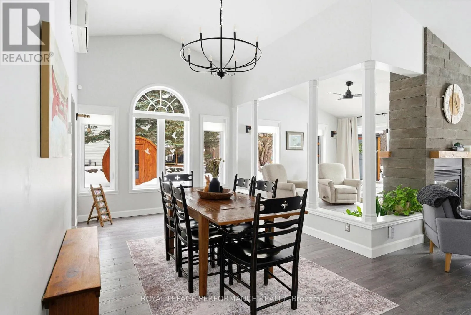 Cross Streets: Barry St. and Barnhart Dr. ** Directions: From County Rd 36. North on Barnhart Dr. to the Corner of Barnhart Dr. and Barry St. This uniquely designed and stylish 3-bedroom home with garage sits proudly on a rare double lot and delivers effortless one-level living. Built slab-on-grade, it's ideal for buyers seeking a low-maintenance, mobility-friendly lifestyle without compromising on design or comfort. Step inside to a spacious, light-filled open concept layout where the living and dining areas soar with vaulted ceilings. Radiant heated floors keep things cozy, while a striking two-sided gas fireplace with a modern stone surround adds warmth and flair. The custom eat-in kitchen (2015) is both functional and refined, featuring quartz countertops, centre island, backsplash, and stainless steel appliances. The primary bedroom offers a private retreat with a 3-piece ensuite highlighted by a charming clawfoot soaker tub. Two additional well-sized bedrooms provide flexibility for family, guests, or a home office. A 3-piece guest bathroom with shower completes the interior. Outside, the backyard is designed for entertaining and relaxing, complete with a large interlocking patio, stonewall garden, fire pit, and storage shed. Additional highlights include a dedicated laundry room, central air conditioning, Generac generator, ICF Blue Max construction, tankless hot water heater (2022), washer and dryer (2023), roof shingles (2015), and extensive updates to paint, trim, and flooring. Other notables: Garage door 2025, light fixtures, washroom vanity, garden / storage shed refurbished Gutter guards, landscaped gardens, and an interlocked driveway round out the package. Ideally located close to recreation and everyday amenities, this home blends modern comfort, smart upgrades, and standout design-an exceptional opportunity on a truly impressive lot. Parks of the St. Lawrence, golf, schools, church and other amenities nearby. 10 min to Cornwall. Allow 24 hour irrevocable on offers. (id:27476)