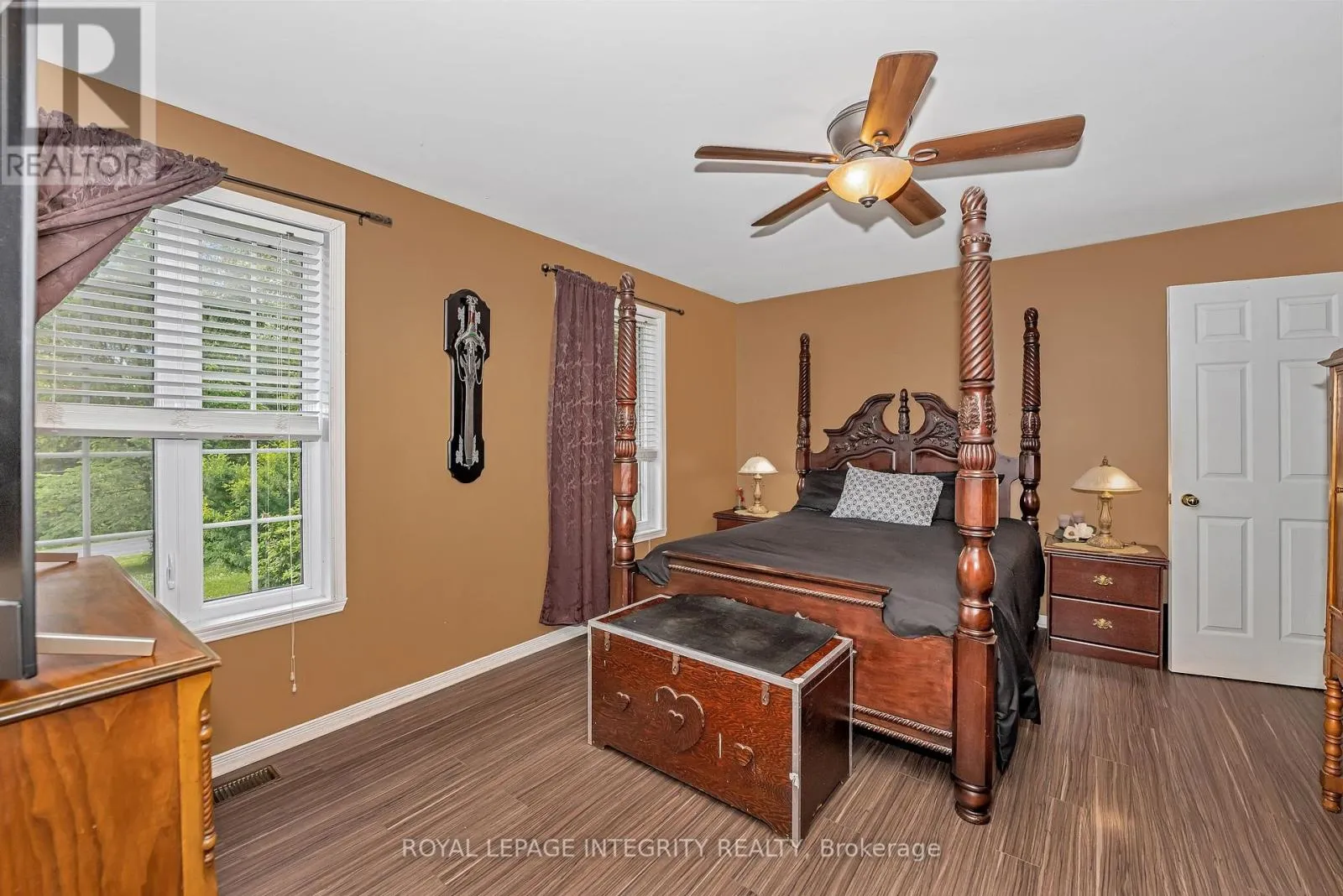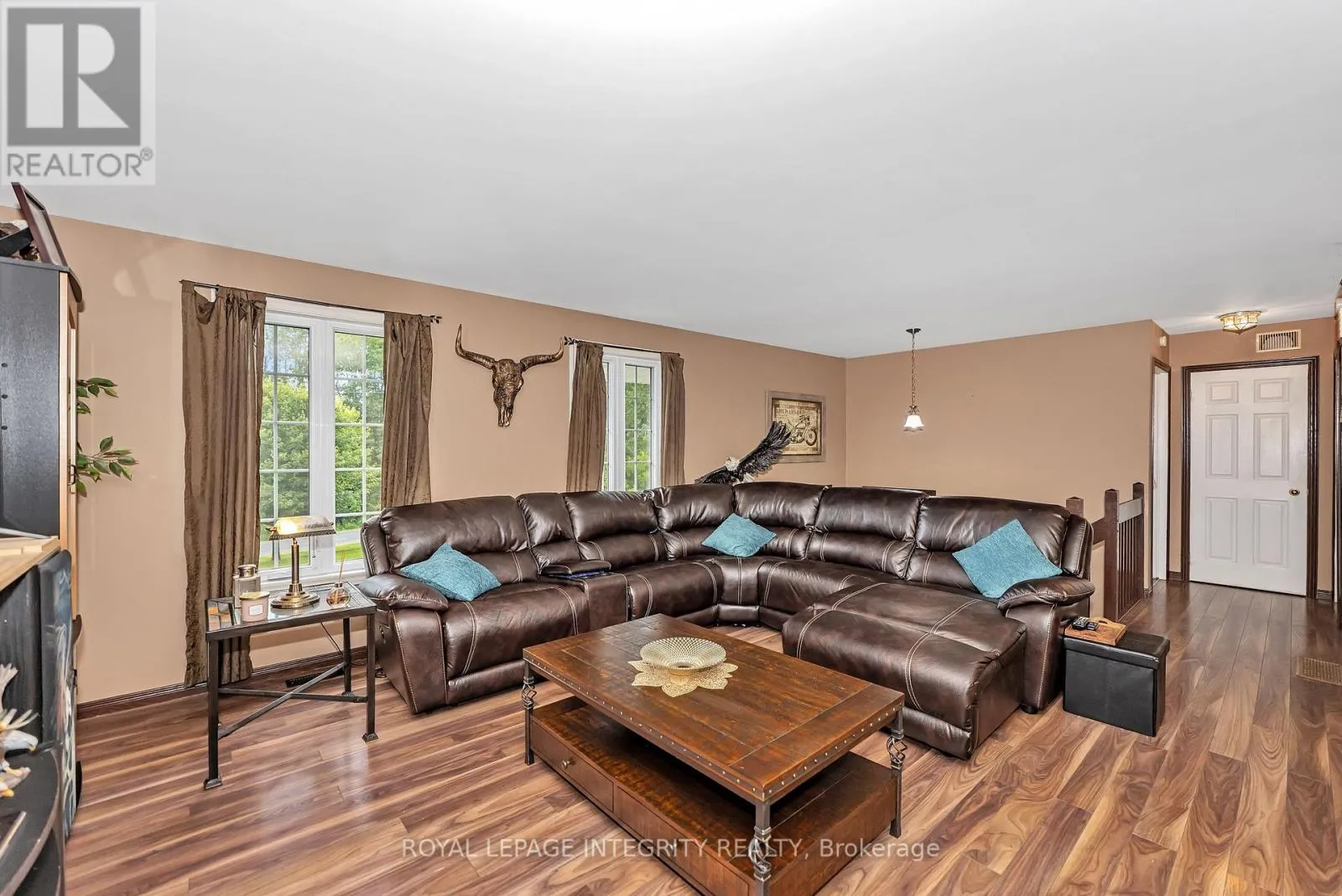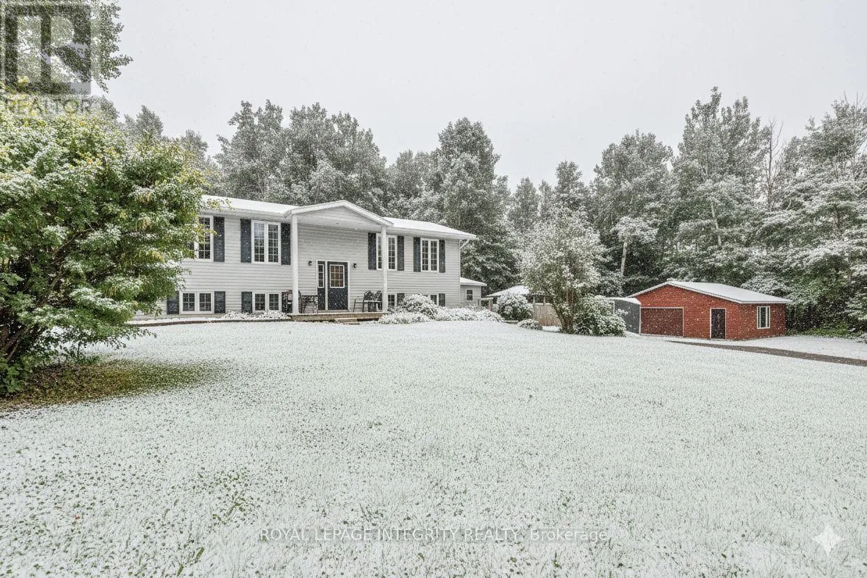 Cross Streets: Highway 138 and Cameron. ** Directions: Travelling Highway 138 turn east on Cameron Rd (Dead End Road). Discover this thoughtfully designed HI-RANCH BUNGALOW with a WALK-OUT IN-LAW SUITE set on a beautifully private, landscaped 1.2acre lot with two property PINs (see pictures). The charming front pathway leads to the covered porch and inviting front entrance featuring high ceilings and closet space. The bright open-concept main level showcases a spacious living room, dining area with direct access to the deck. A well-appointed kitchen complete with ample cabinet and counter space plus a functional island perfect for gathering and everyday living. The main level also offers a full bathroom with soaker tub and tile surround, a primary bedroom with walk-in closet, and a second well-sized bedroom. The fully finished walk-out lower level provides exceptional versatility with a separate in-law suite featuring its own kitchen and shared laundry area. You'll also find a cozy family room with wood-burning fireplace, third and fourth bedrooms with ample closet space, a full bathroom, abundant storage and direct access outside. The detached double garage (2018) is insulated, featuring a concrete floor and an area ideal for a workshop, hobby space or ultimate retreat. The extended driveway provides ample parking for multiple vehicles, trailers or guests. Outdoor living is equally impressive with a fenced yard that showcases beautiful gardens, mature trees, shrubbery, an enclosed gazebo, firepit area and storage sheds. Tucked away on a quiet dead-end road just minutes from Cornwall and quick highway access for an easy commute to Ottawa. A rare opportunity offering flexible living, privacy and room to grow. 24-hour irrevocable on all offers. (id:27476)