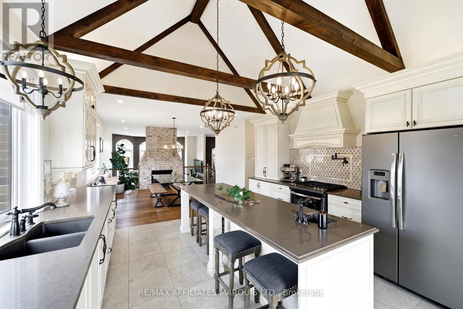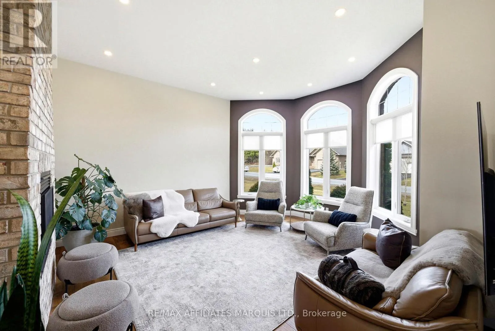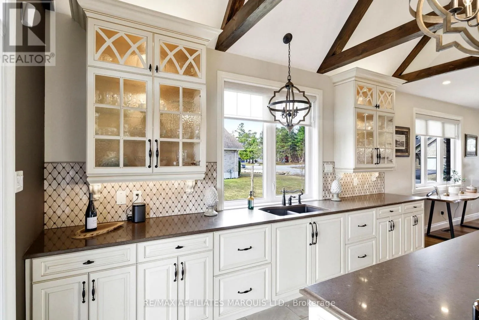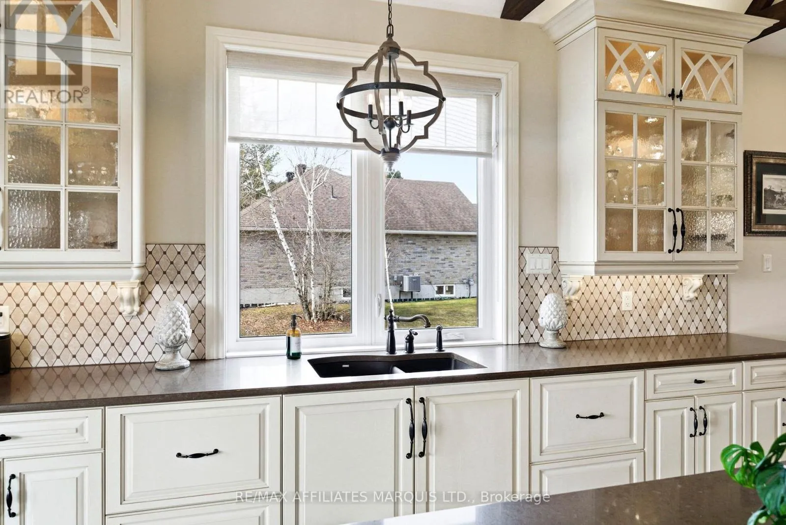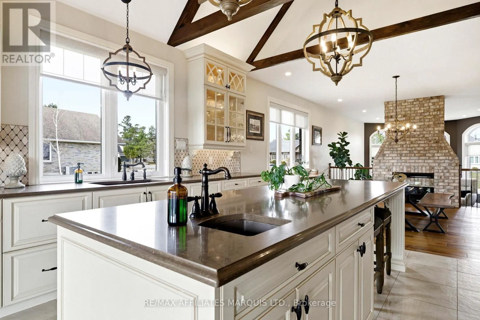 Cross Streets: County Rd 2 & Fickes Rd. ** Directions: Take Highway 2 West to Long Sault. Travel north on Fickes Rd to the subject property. Welcome to 38 Forest Hill Rd, a custom-built home offering over 3,300 sq ft of thoughtfully designed living space, set on a large double sized lot in desirable Arrowhead Estates. Built with quality and low-maintenance living in mind, this home features a striking brick and stone exterior, interlock walkway and patio and beautifully landscaped grounds. The covered rear deck, finished in composite, along with a gas outdoor fireplace, creates the perfect space for relaxing or entertaining. A natural treed area at the rear provides added privacy and a peaceful setting. Inside, the home offers impressive ceiling heights, including 11' ceilings in the foyer and living room, and 9' ceilings throughout the main level. A double-sided gas fireplace with real brick veneer serves as a stunning focal point between the living and dining areas. The kitchen is a standout feature, designed in a timeless French country style with cathedral ceiling and exposed wood beams. Complete with a large island, custom cabinetry, quartz countertops, and both a gas oven and an electric oven, it offers both beauty and functionality. Patio doors provide direct access to the rear deck. Additional features include main floor laundry, a finished lower level and an ICF foundation for added efficiency and durability. A truly unique property offering space, quality, and a desirable location just minutes from Cornwall, with easy access to the bike path, St. Lawrence River and the Long Sault Parkway. Click on the Multi-media link for virtual tour, additional photos & floor plan. The Seller requires 24 hour Irrevocable on all Offers. (id:27476)