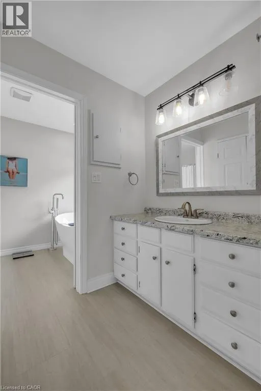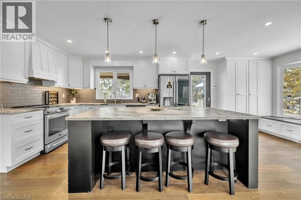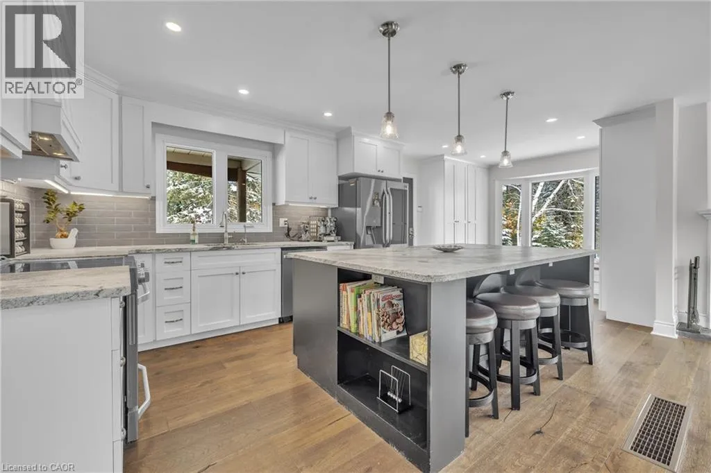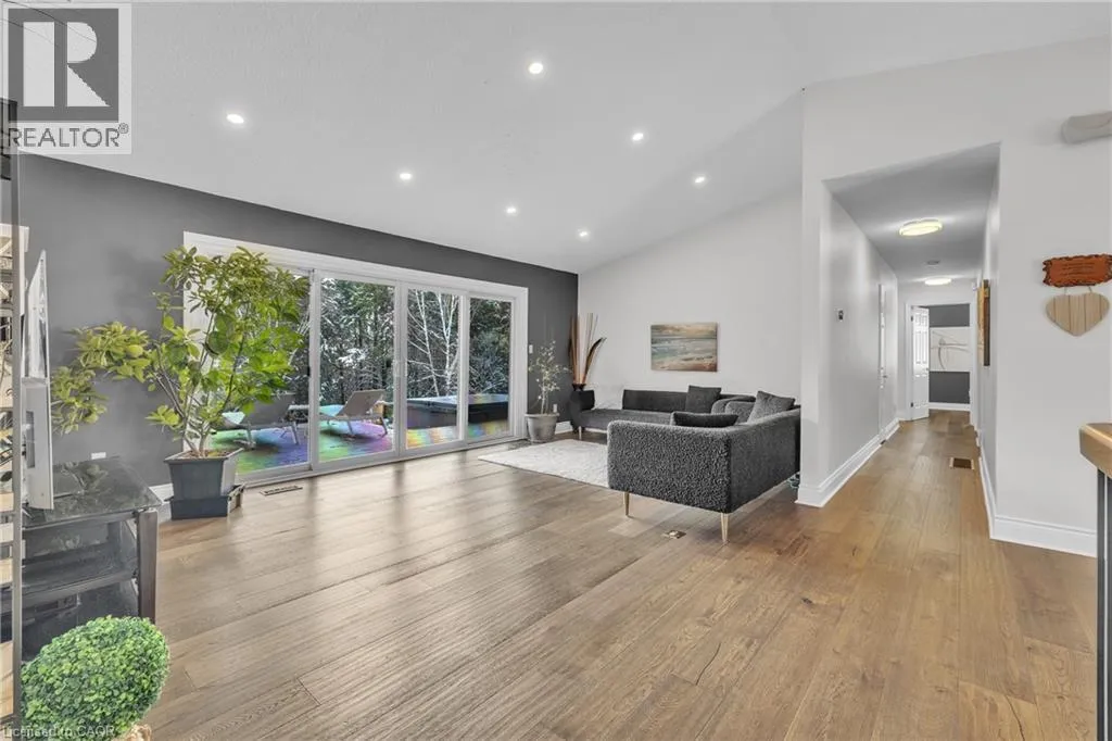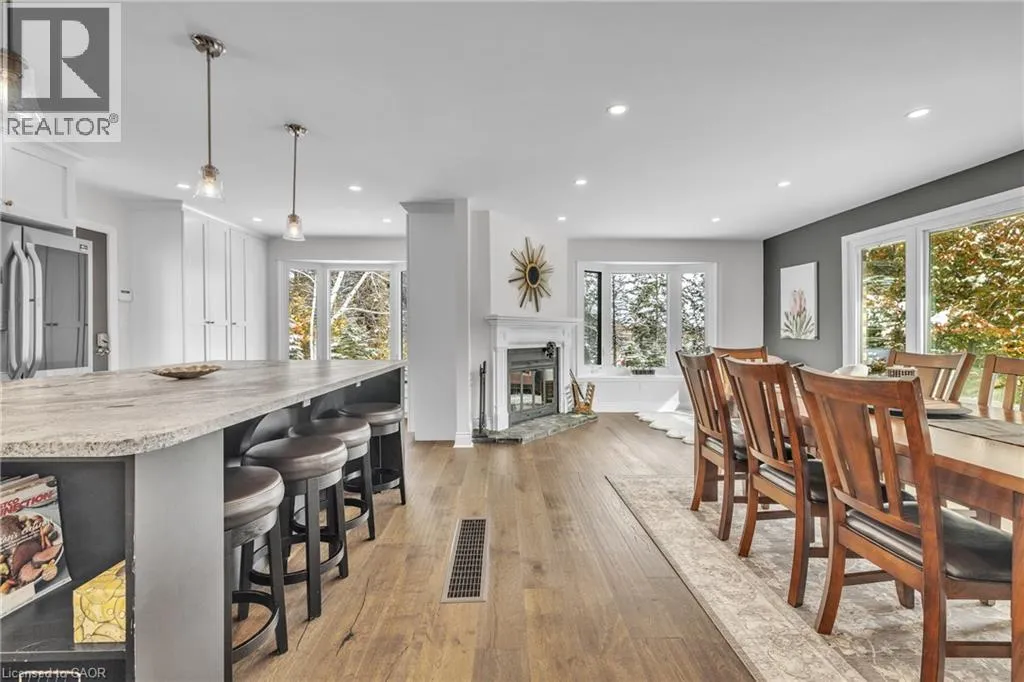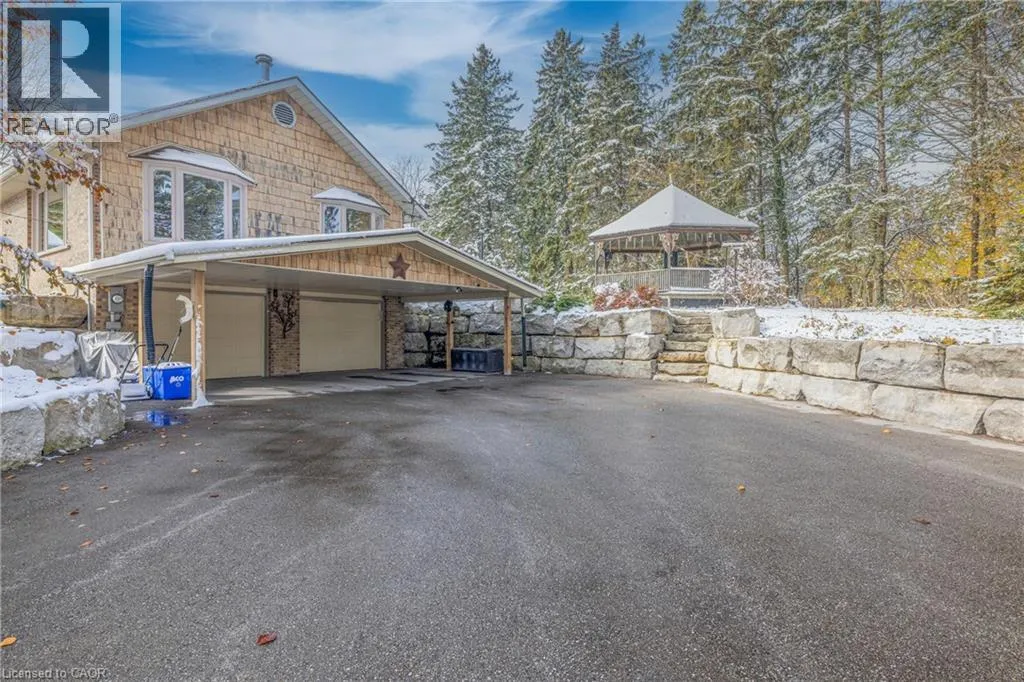 HWY 2 WEST - TURN LEFT ONTO THE 43RD LINE- HOUSE IS ON THE RIGHT HAND SIDE As you drive up the lane, you will be impressed by the space and tranquillity of this private 3 acre estate. The 1880 sf Bungalow with 3+1 Bedrooms and 3 full bathrooms is well updated throughout. The stunning kitchen overlooking the dining area with seating by the fireplace has a large island with seating, leathered granite, distressed cabinets, lots of drawers/pullouts, large pantry cabinets and a separate entrance to a great bbq patio. Engineered hardwood throughout the main floor, living room w/ vaulted ceiling & XL patio doors offering a stunning view and leads to the large composite deck with built in hot tub. A sun filled house with oversized windows throughout and many high quality energy efficient Tripple Pane windows with built in pull-down screens. King size primary bedroom with door access to the deck and his/her closets. A large en-suite with soaker tub, and separate shower. 2 other bedrooms are a good size. 4pc bath & laundry finish the main floor. The basement is finished with a rec-room, office space and additional bedroom/office/games room + 3pc bath, utility space with storage & access to the garage. All appliances included. Dbl car garage and car port. Expansive yard with plenty of space for playing, gardening, hanging out... Beautifully landscaped. Fruit trees and vegetable garden. Paved driveway and a parking area that has plenty of room for all of your vehicles, toys, trailers, etc. 15'x24' drive-in shed/workshop with power. If you are looking for country living on the outskirts of this picturesque town of Beechville then this is the one for you. 9 min to 401. Call today for your private showing or to learn more. (id:27476)
