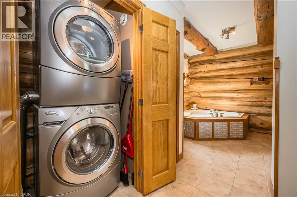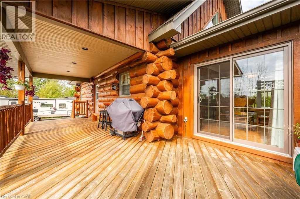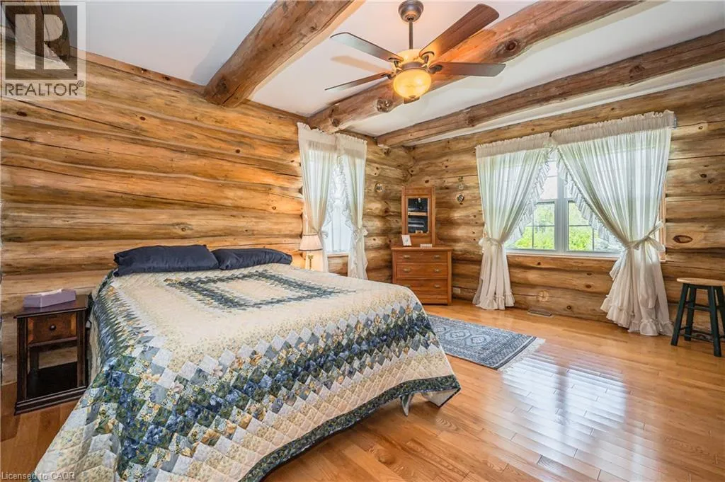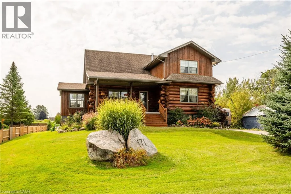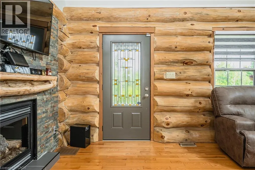 From Southampton on HWY 21 turn left onto Turner St/Bruce County Rd 13, then turn Right onto Gosford. Stunning custom-designed and built white pine log home in the heart of Southampton. This one of a kind residence combines natural charm with modern comfort, centrally located close to schools, shopping, golf, and the beach and just minutes from Lake Huronâs world-famous sunsets. The property also features an impressive 930 sq. ft. detached garage, perfect for a workshop, RV (with RV outlet), classic car storage, or a home-based business. Step inside this well maintained, carpet free home and enjoy the warmth of a two-sided gas fireplace shared between the chalet-style living room with soaring ceilings and the main-floor primary bedroom, which features a walk-in closet, ensuite privilege with jacuzzi tub, and laundry area. The kitchen offers ample cabinetry, an island with breakfast bar, and a seamless flow to the dining area with walkout to a covered porch and natural gas BBQ hookup. The upper loft, which could be a 3rd bedroom provides spectacular sunset views and star gazing, another bedroom and full bathroom complete the upper level and offer privacy for family or guests. The partially finished basement features drywall, a cold room, and a rough-in for a bathroom, ready for your finishing touches. Neutral interior paint (2021), exterior wood painted (2022), foundation painted (2024). In addition to the amazing detached garage, enjoy a large, partly fenced backyard with raised garden beds, landscaping with pond, sandy area, firepit, garden shed, and ample parking. Whether you enjoy hiking, biking, swimming, boating, fishing, golfing, skiing, or gardening, this home places you at the centre of it all. A rare opportunity to own a truly unique property in one of Ontarioâs most desirable communities. (id:27476)