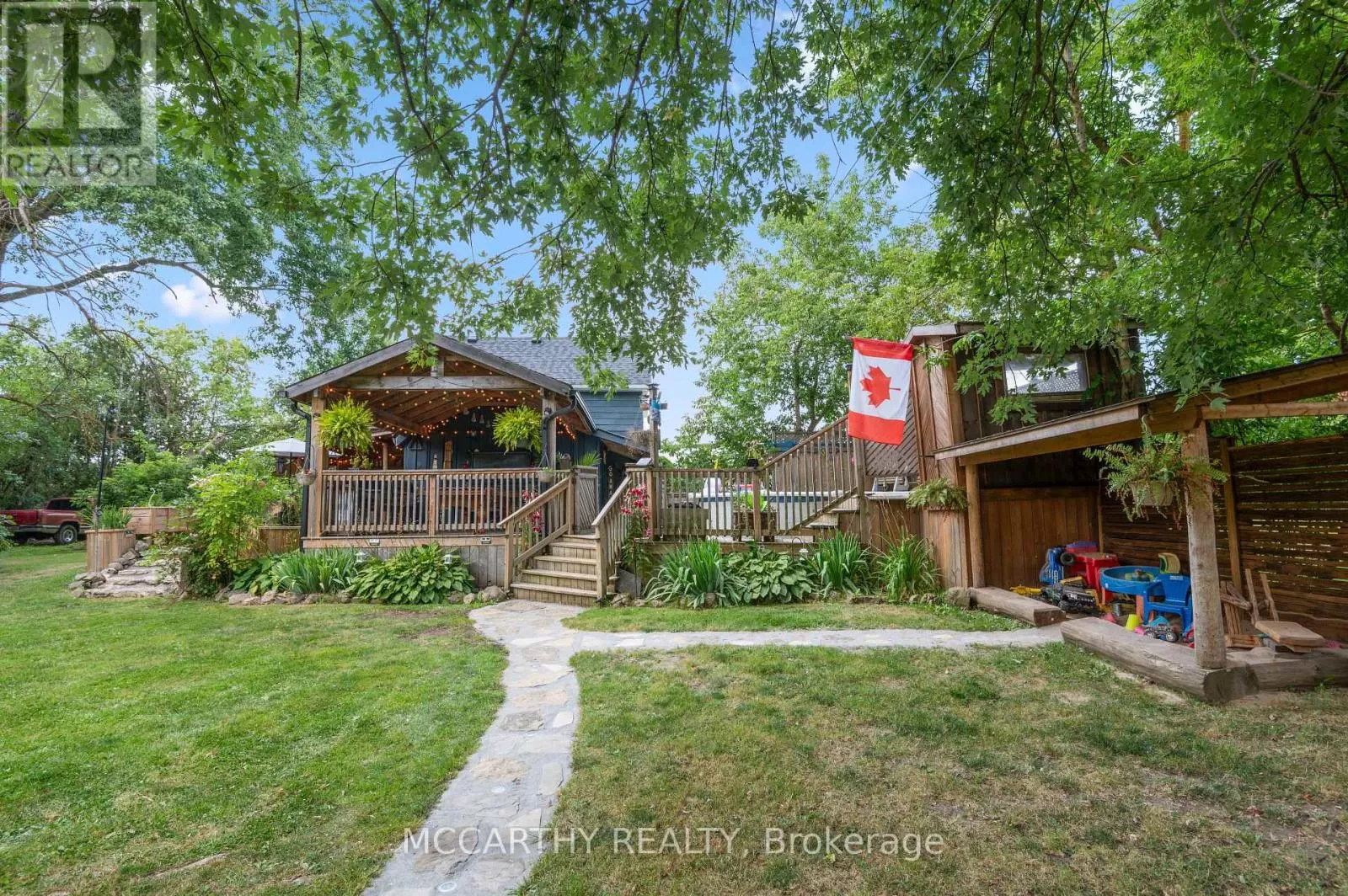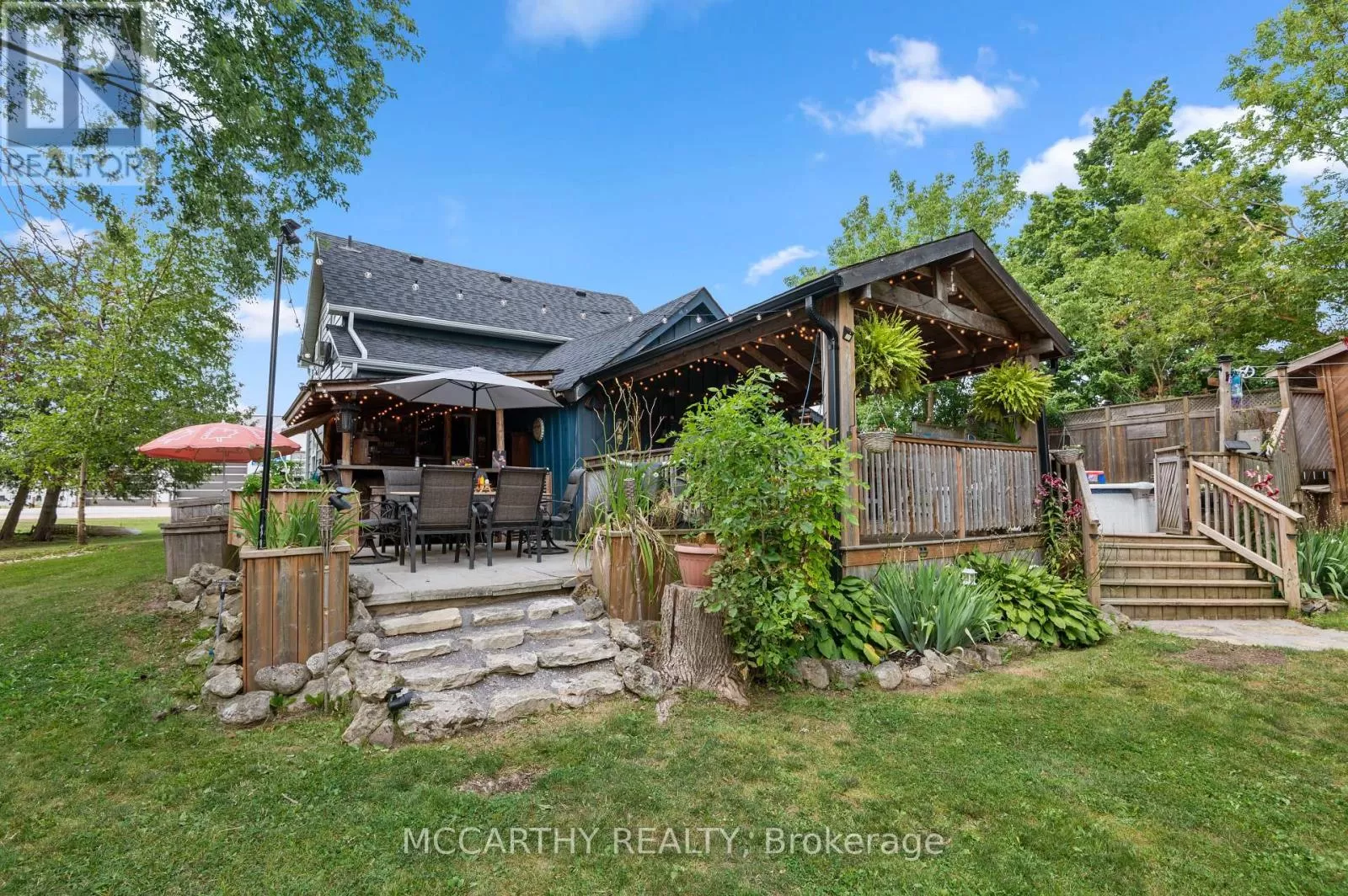 Cross Streets: Dundalk Street & Grey Street. ** Directions: Head North On Highway 10 Towards Dundalk, Turn Left Onto Main Street, Turn Right Onto Dundalk Street, Left Onto Grey Street, Destination Will Be On Your Left. Welcome to your dream home, where elegance meets coziness! This stunning three-bedroom, two-bath showcases custom wood finishing, exuding warmth and charm at every turn. Picture yourself sipping coffee on the inviting covered porch or hosting summer barbecues on the spacious deck surrounding a sparkling above-ground pool ideal for hot sunny days! Nestled on a dead end road amid mature trees and vibrant gardens, this property offers ultimate privacy. The expansive backyard features a detached garage (currently a woodworking shop!) and a bonus 12x20 ft space.Get ready to entertain in the covered outdoor kitchen with a fabulous bar, perfect spot for weekend gatherings! Inside, the main floor welcomes you with a spacious bedroom, a beautifully designed bathroom, and a living room flowing into a custom kitchen. A mudroom, office, and laundry area complete this level.Upstairs, discover an additional bathroom and two more spacious bedrooms, ideal for guests or family. Recent upgrades include durable 50-year shingles (2022), new eavestrough, fascia, and soffit (2024), stylish pergola and sandbox (2024), modern kitchen cabinets (2022), and a reliable hot water tank (2024).Situated on a generous lot with ample parking (room for six or more cars!), this home is on a peaceful street yet has easy access to main roads for commuters. Enjoy convenient walking distance to schools and shopping! Additional highlights include natural gas heating, an enclosed garden, swing bench, sandbox, and charming playhouse. Don't miss out on this updated gem in the highly sought-after town of Dundalk your dream lifestyle awaits! (id:27476)