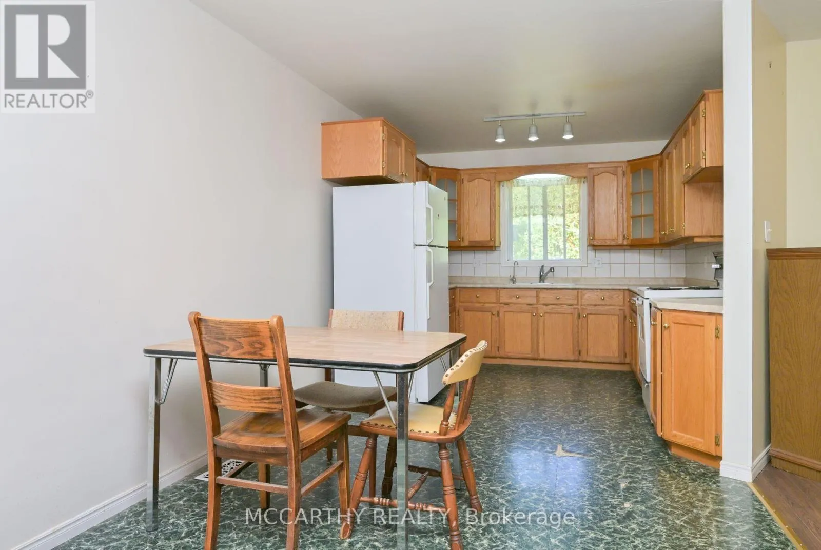 Cross Streets: Osprey Bradley and Highpoint. ** Directions: Main St to Osprey St N to Toronto St and EAst to Bradley St then Right onto Highpoint and then left onto Wilson Cres. Brick Bungalow on quiet crescent. Nice neighborhood for family or downsizing. 3 bedrooms, 2 baths, one is 4pc large bathroom on the main level and a convenient 2 pc in the lower level, off the large Rec Room. Main Floor Laundry, Large open concept Living Room / Dining Room. Big picture window over looks the New entry deck, room to sit and watch the neighborhood and sunsets. Kitchen has wood cabinets, double sink with window overlooking the back yard. Entry has tile flooring. Nicely laid out with Three good sized bedrooms, Main Floor Laundry by the kitchen in closet cabinet. Lower level has expansive Rec Room with broadloom. Cozy gas fire place. 2 pc Bathroom. Under stairs storage, Utility room with 200 amp hydro service. Walk out from the Dining Room to a large deck with stairs down to the large pie shaped back yard, mature tree lined yard for privacy. Wooden Garden Shed. Plenty of space for garden or playground. Entrance to the garage, easy access to basement. (In-law suite potential) large parking lot for 3 plus cars outside and 2 inside 5 total Parking, Newer Insulated Garage door with opener, Dryer is New, Front deck is new, new flooring going into the kitchen. Extra large lot that is very private. Beautiful home ready for you to make your own. (id:27476)