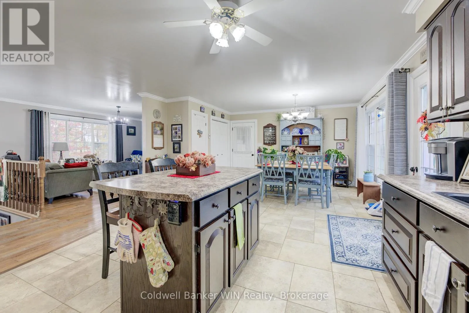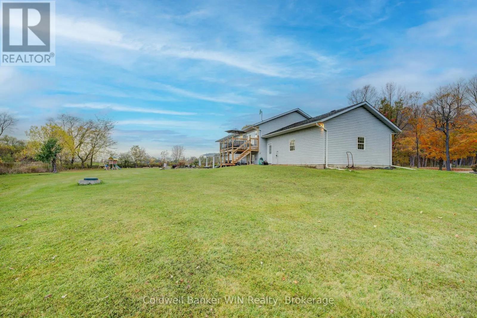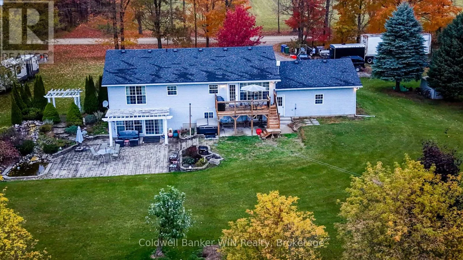 Hwy #6 in Mount Forest, turn East on Sligo Road (Southgate Rd #41) to Southgate Road #8, turn right to sign on s/s This 1,500 sq. ft., 3+1 bedroom home exhibits pride of ownership and boasts many interior and exterior features. Some of the interior features include a modern, updated and oversized kitchen with in-floor electric heat with a main level a walk out onto recently replaced decking. Custom hardwood, porcelain and ceramic flooring throughout. The house is characterized by a multitude of oversized windows along both levels with a southerly exposure overlooking the surrounding rolling and treed farmland. The 24' x 28' rec room has a propane fireplace and walk out onto the 900 sq. ft. patio that in turn overlooks the extensive landscaping and ornamental pond. This two-acre property is nestled in the rolling hills of Southgate Township and is located on a quiet country road just minutes from Mount Forest. If you are looking for a quiet, relaxing lifestyle in a well maintained home, this may be home for you. (id:27476)