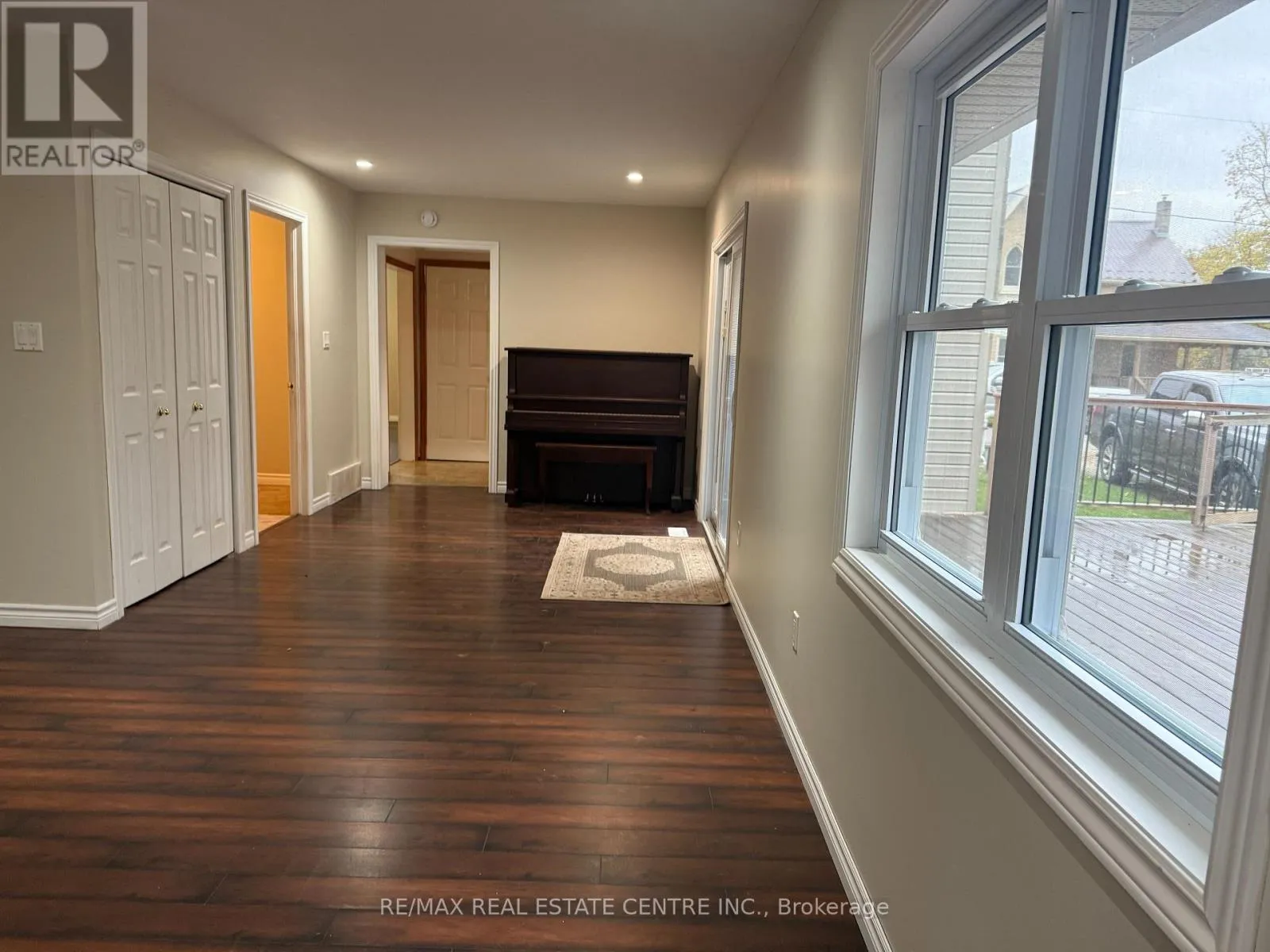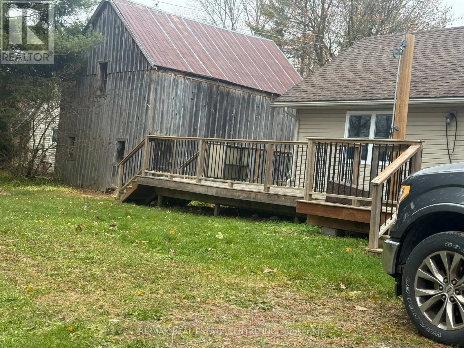 Cross Streets: 109 and centre. ** Directions: Centre St. Cute as a button starter home in the quaint village of Holstein. Quiet dead end street. Many extras and up grades. Large deck (side and rear) ideal for entertaining. Home is bigger than it looks and well maintained. New laminate flooring in bedrooms (oct 2025) Large eat in kitchen with under cabinet lighting and brick backsplash. Pot lighting in family room. Patio doors to deck and single door to side deck. Living / Dining room combination. Main floor laundry and 2 piece powder room (updated) Drilled well. Septic pumped October 2025. 2 storey barn at back of property 20' x 26'. Upper level may require some work but ideal for the handy man and storage. (id:27476)