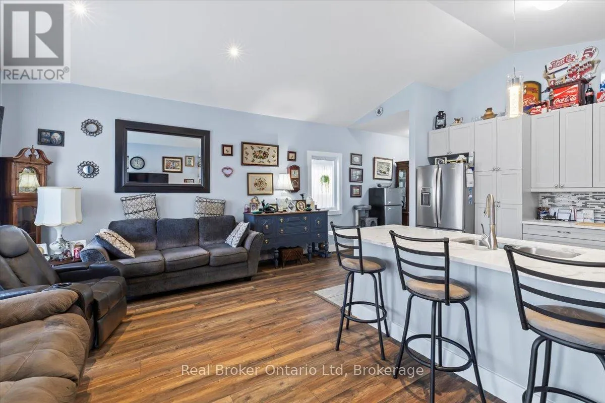 Cross Streets: Main St / Proton St. ** Directions: 169 Main St W Dundalk. Welcome to 169 Main Street W, Dundalk !! Discover modern comfort and small-town charm in this beautiful 2020 raised bungalow located in the heart of the Dundalk community. Situated on a deep 150-foot lot, this home offers a perfect blend of style, function, and versatility - ideal for first-time buyers, families, or those looking to downsize. Step inside to find a bright and open layout featuring 2+1 bedrooms and 3 bathrooms. The modern kitchen is a showstopper, complete with quartz countertops, a breakfast bar, stainless steel appliances, under-cabinet lighting, porcelain tile flooring, and an over-the-range microwave. The living room boasts vaulted ceilings and a walkout to a wooden deck, overlooking a spacious and private fully fenced backyard - perfect for entertaining or relaxing outdoors. The finished basement offers exceptional flexibility, featuring a large rec room, bedroom, 3-piece bath, laundry, and ample storage. It's an ideal setup for an in-law suite or additional living space. Other highlights include: 4-Car Driveway Parking + 1-Car Garage (with door opener and extra storage). Walk-in Closet with Laundry Hook-Up in Primary Bedroom. This home truly has it all - modern upgrades, a functional layout, and plenty of room to grow. Don't miss your chance to call 169 Main Street W your new home !! (id:27476)