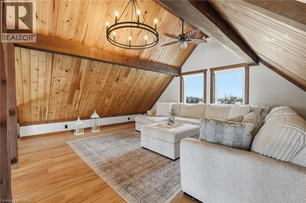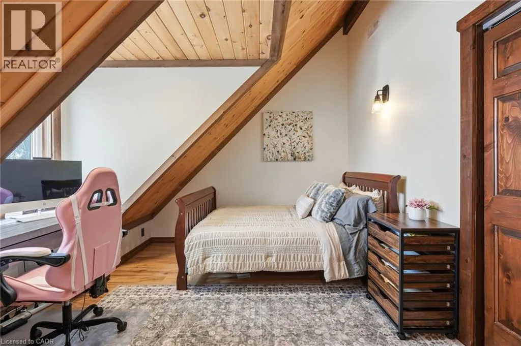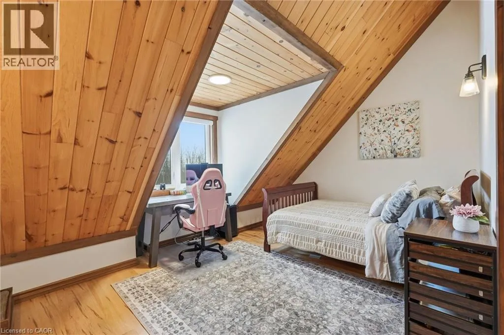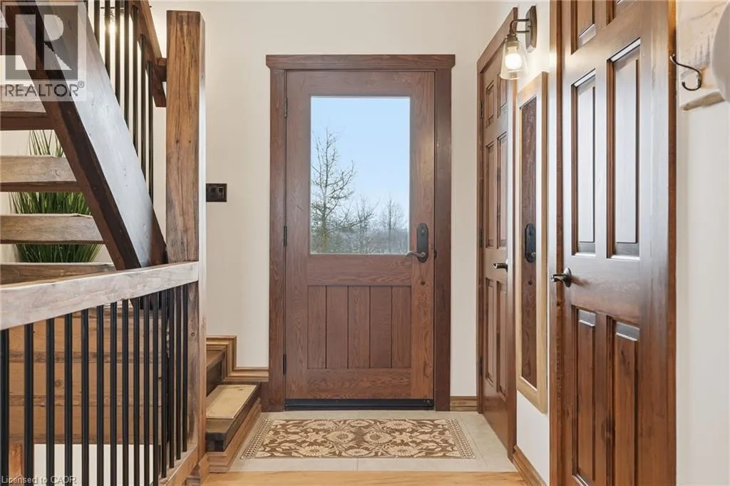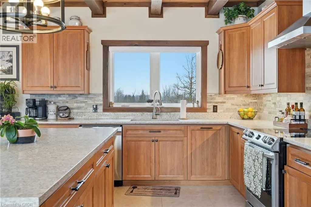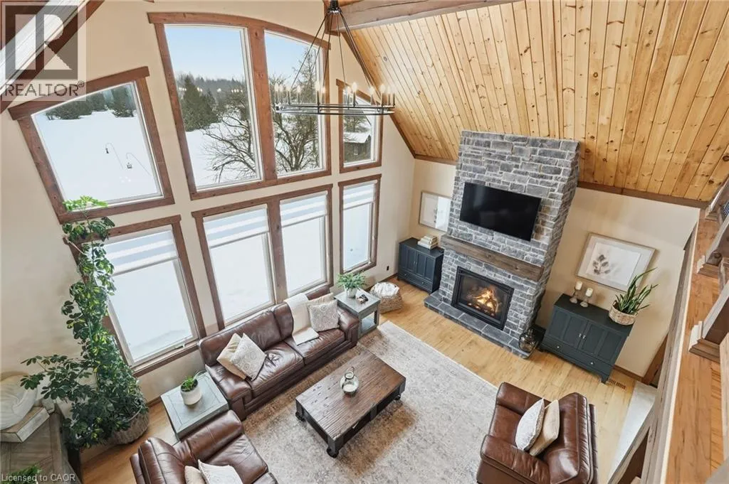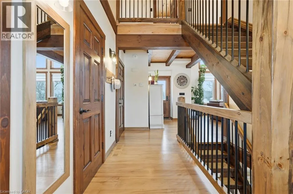 Take Southgate Sideroad 49 to Southgate Rd 12, South Side. Welcome to this truly special 3-bedroom, 3-bathroom timber-framed home, perfectly set on a beautifully landscaped almost 5.5-acre lot just a hop, skip, and a jump from Mount Forest. The heart of the home is the spectacular great room, featuring vaulted ceilings, a floor-to-ceiling stone fireplace, and a stunning wall of windows that frames peaceful views of the surrounding nature. A spacious loft overlooks the great room, offering flexible space for a home office, reading nook, or guest area. The large, open-concept kitchen flows seamlessly into the great roomâideal for entertaining or everyday living. The main-floor primary bedroom provides comfort and convenience, while the finished lower level impresses with high ceilings, large windows, heated floors, and an additional stone fireplace, creating a warm and inviting retreat. Outside, the property truly shines with a picturesque pond, mature landscaping, and endless room to enjoy the outdoors. Car enthusiasts, hobbyists, or tradespeople will love the massive 24â x 36â detached garage/workshop. This is country living at its best. Donât be TOO LATE*! *REG TM. RSA. (id:27476)
