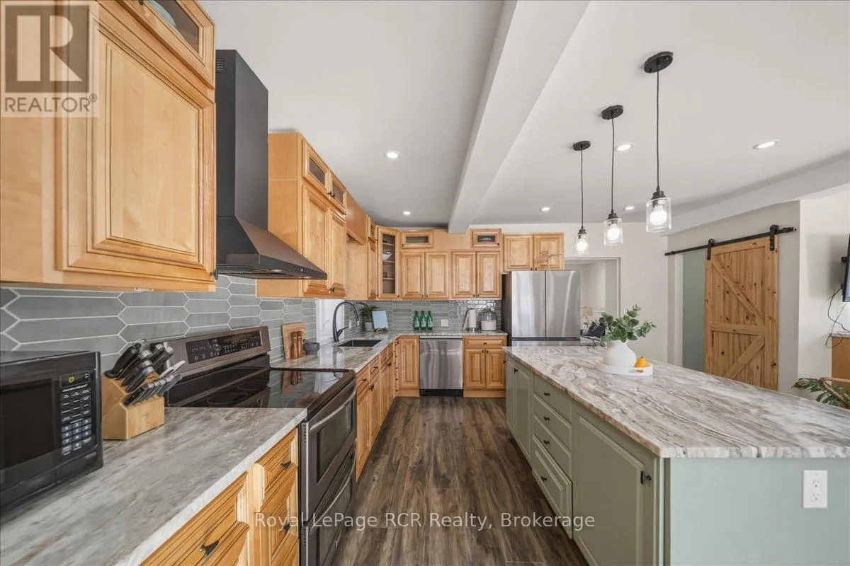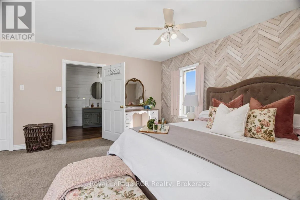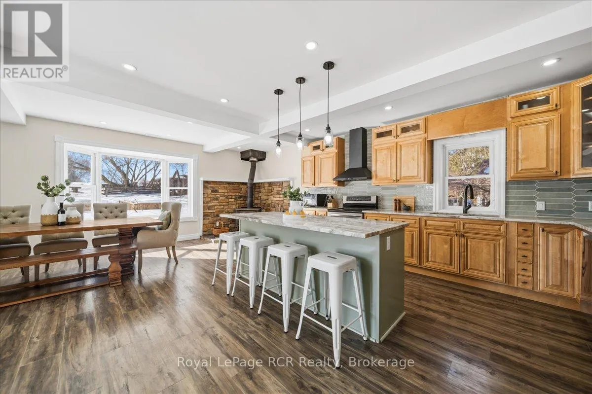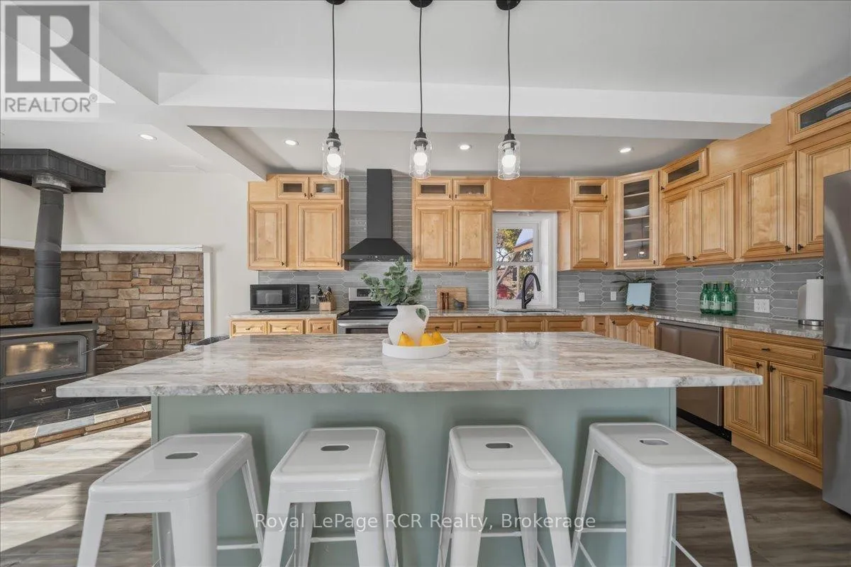 Cross Streets: Grey Rd 109 & Southgate Rd 12. ** Directions: If in Holstein, head south on Grey Rd 109 for 450 meters, the property will be on the right-hand side of the road before the stop sign. Welcome to this beautifully updated two-story brick home in the charming community of Holstein, where small-town living meets modern comfort. The main level offers a bright, open-concept kitchen and dining area filled with natural light, a convenient main-floor bathroom, and a versatile room that works perfectly as a home office or additional bedroom. Upstairs, you'll find a spacious primary bedroom complete with a walk-in closet and a private ensuite that includes a washer and dryer. Three additional cozy bedrooms and a second bathroom with a stand-up shower complete the upper level, offering plenty of space for family or guests. Year-round comfort is provided by an energy-efficient heat pump system installed in September 2025, while a wood stove adds warmth and cozy character on those really cold winter mornings. Step outside and enjoy a backyard that gardeners will love, featuring a patio and raised garden beds ready for the growing season. The detached shop is a standout feature, offering excellent space for hobbyists, tradespeople, or additional storage. With its functional layout, classic brick character, and thoughtful updates, this move-in-ready home offers a wonderful opportunity to enjoy the slower pace of small-town living. It's the kind of place where neighbours wave, mornings start a little slower, and there's still room to breathe. Schedule your private viewing today! (id:27476)