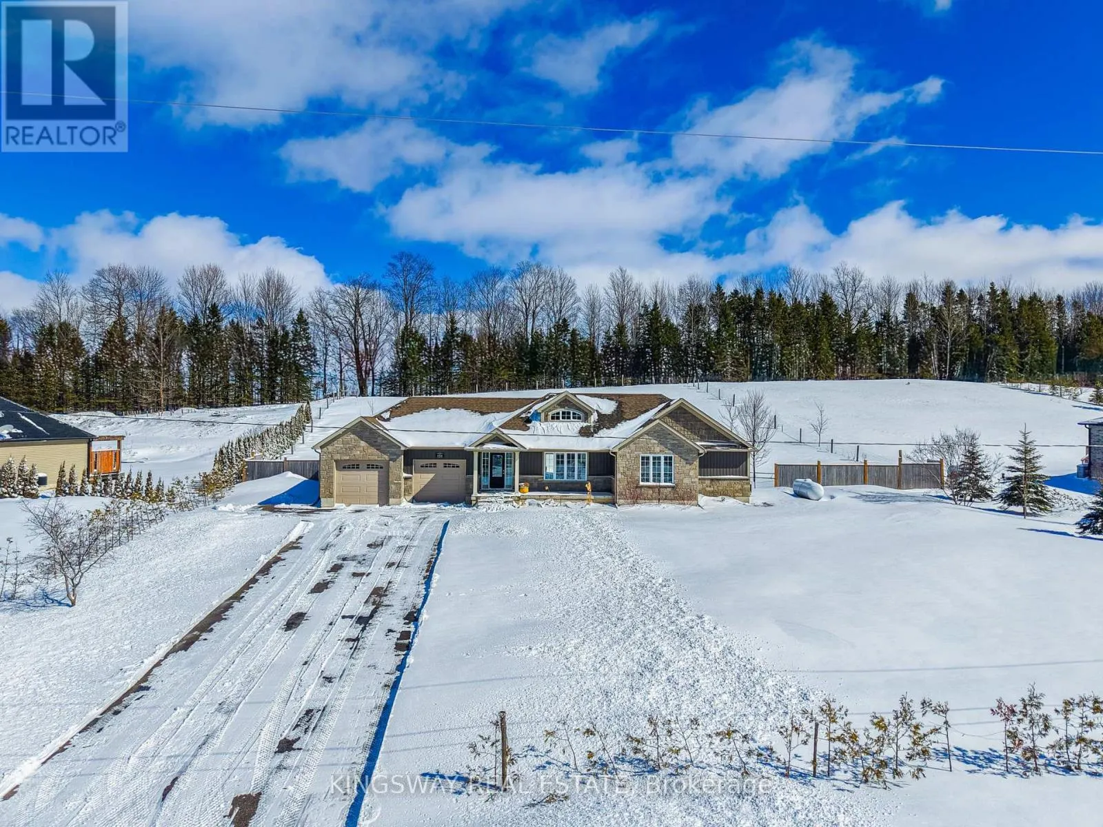 Southgate Sideroad 49 / Watra Gorgeous executive bungalow set on approximately 1 private acre in Southgate, Grey County. Bright open-concept living and dining area featuring vaulted ceilings, pot lights, and large windows providing excellent natural light throughout. Updated kitchen with LG stainless steel appliances, granite countertops, and large island with lots of storage and bar seating. Ideal for everyday living and entertaining. 3 bedrooms (2+1 layout) with two bedrooms on the main level and a third bedroom on the finished lower level, perfect for guest suite, home office, or flexible workspace. Spacious primary bedroom includes custom built walk-in closet and semi-ensuite 4-piece bath. Convenient main floor laundry with newer LG washer and dryer. Finished lower level offers large recreation room, third bedroom, 3-piece bathroom, and additional storage space, providing excellent flexibility for family living or extended stays. Additional features include oversized double garage, updated electrical panel with generator hookup, deck, fenced backyard, water softener, and water filtration system. Enjoy the privacy of rural living while remaining close to amenities - approx 10 minutes to Dundalk, home to shops, groceries, and the highly regarded St. Peter's Catholic School, and approx 20 minutes to Shelburne for additional services, restaurants, and healthcare. Ideally positioned within Grey County with convenient access to Collingwood, Blue Mountain, Georgian Bay, and Lake Huron beaches, offering year-round recreation including skiing, boating, hiking, and golf.A rare opportunity to own a newer-built country home on acreage in a region known for its natural beauty and growing demand for lifestyle properties. (id:27476)