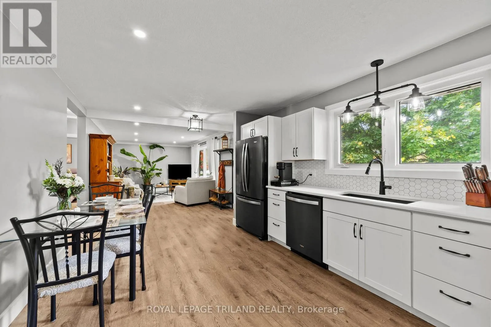 Cross Streets: ELIZABETH STREET. ** Directions: GLENDON ROAD SOUTH FROM LONDON TO GLENCOE, ROAD NAME CHANGES TO APPIN ROAD; HOME ON THE NORTH SIDE OF APPIN ROAD. This well-cared-for bungalow with attached garage sits on an oversized lot and offers 2 bedrooms and 1.5 bathrooms. Thoughtfully updated throughout, the home boasts numerous main floor upgrades in 2020 including new vinyl plank flooring, trim, doors, ceilings, kitchen cabinets, recessed lighting, under mount sink, backsplash, appliances, bathroom vanities, fixtures, and fresh paint. In 2025, the lower level received even more enhancements, including new trim, vinyl plank flooring, fresh paint, recessed lighting and an upgraded bathroom, creating a comfortable and modern space for guests or additional living. Additional highlights include an owned gas water heater and a prime location close to all amenities-schools nearby, bus route, grocery stores, pharmacies, restaurants, the post office, curling and skating arena, Four Counties Health Services, the VIA Rail train stop, and more. This move-in-ready home is ideal for anyone seeking comfort, convenience, and modern living in a welcoming community. (id:27476)