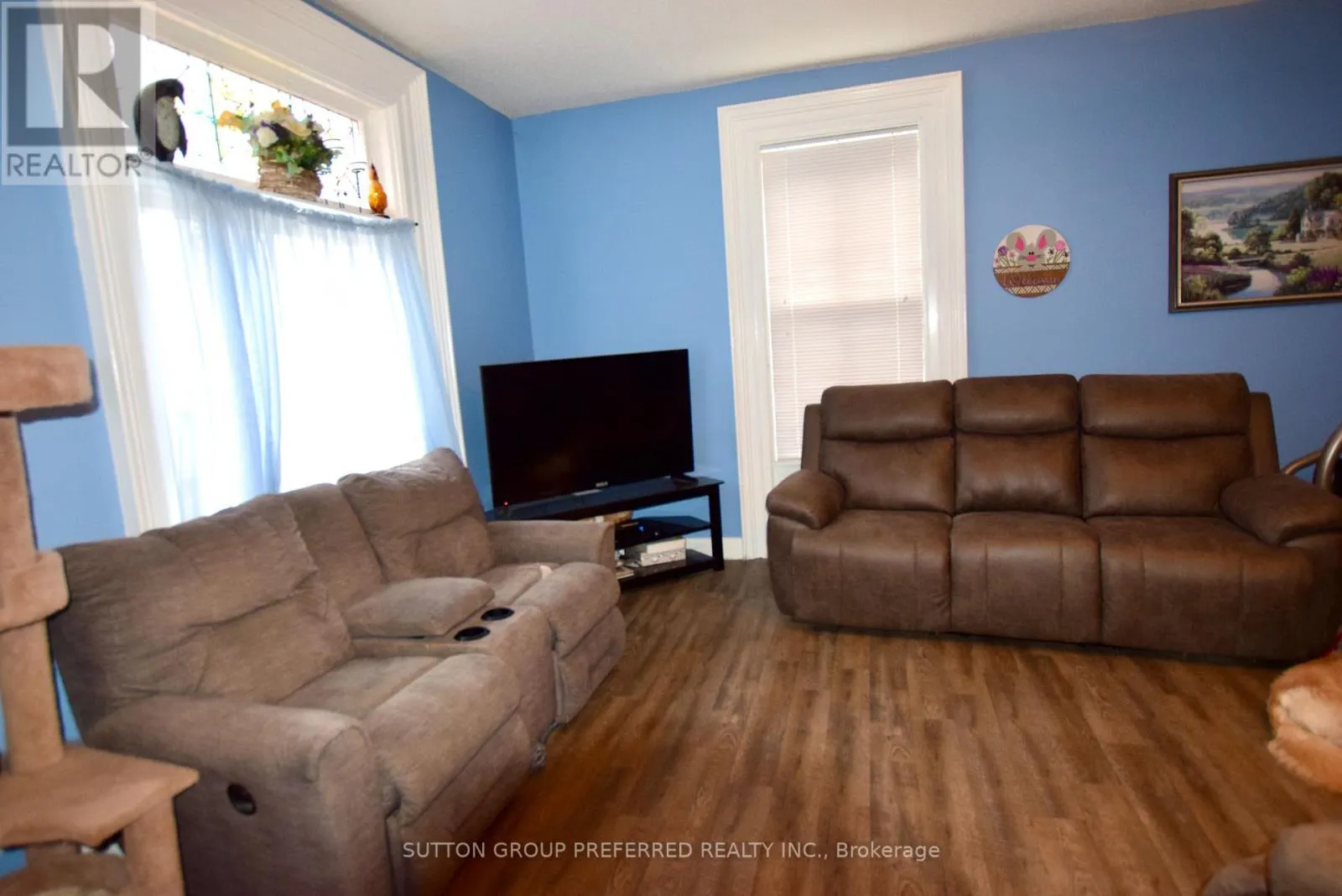 SYMES ST Affordable family home with detached garage on landscaped corner lot. Stained glass window in the living room, two bedrooms upstairs and one on the main floor, an office or play room, convenience main floor laundry, enclosed back porch & two 3pc bathrooms. Two windows upstairs and a steel roof installed in 2022. Covered side porch or relax on the 8ft x 22ft front deck. Partial fenced for pets. (id:27476)