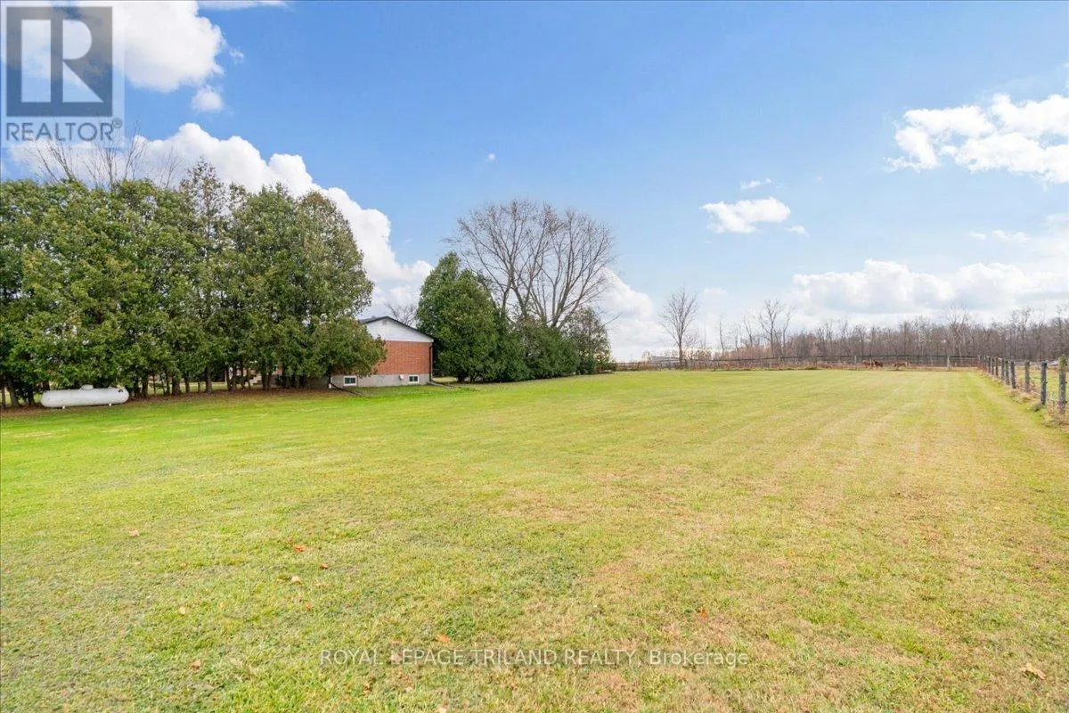 Cross Streets: Glendon Dr. ** Directions: Glendon Drive to Mayfair Road. Nestled just outside the peaceful hamlet of Appin, this solid all-brick bungalow sits proudly on an impressive 0.92-acre lot, offering the perfect blend of country living with nearby amenities. The main floor showcases three bedrooms, a welcoming living room, functional kitchen with adjoining dining area, plus a separate formal dining room or flex space - useful for a home office or additional living area to suit your lifestyle needs. The lower level presents exciting possibilities with its mostly unfinished space, offering tremendous potential for a second living area and fourth bedroom, with laundry conveniently located on this level. An attached oversized single-car garage with convenient basement walk-up access adds practical storage and workshop potential. Recently installed water treatment system for the well, ensures quality water. The property opens doors to fantastic opportunities for those dreaming of building a detached shop or garage - the generous lot size provides excellent flexibility for additional structures (buyer to do due diligence). This property offers a wonderful foundation for those seeking value and potential in the countryside - bring your vision and make this house your personalized home! (id:27476)