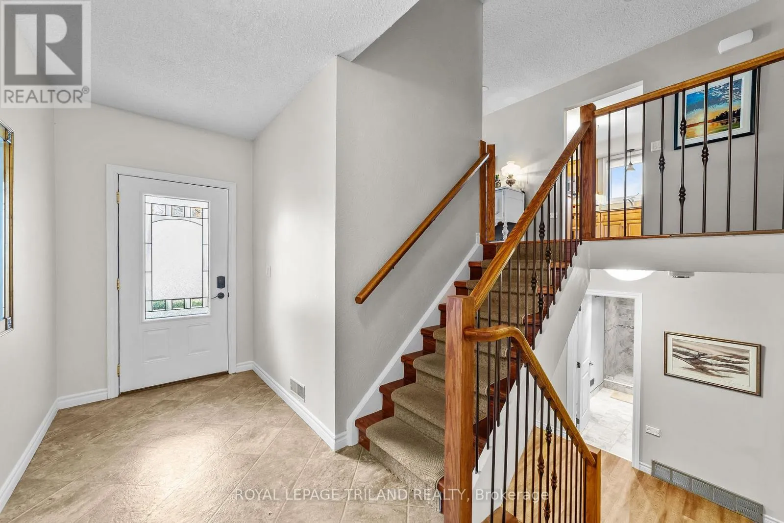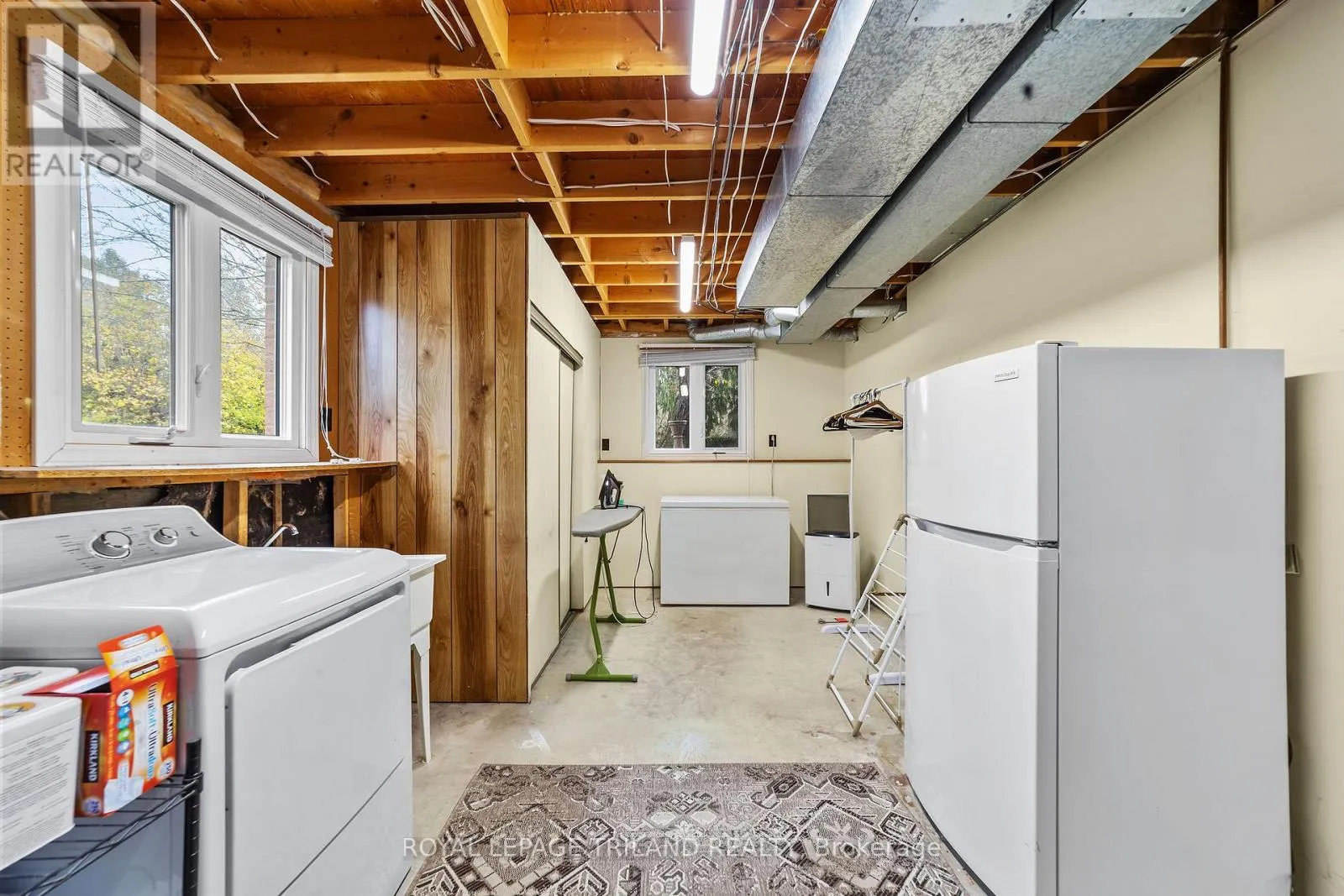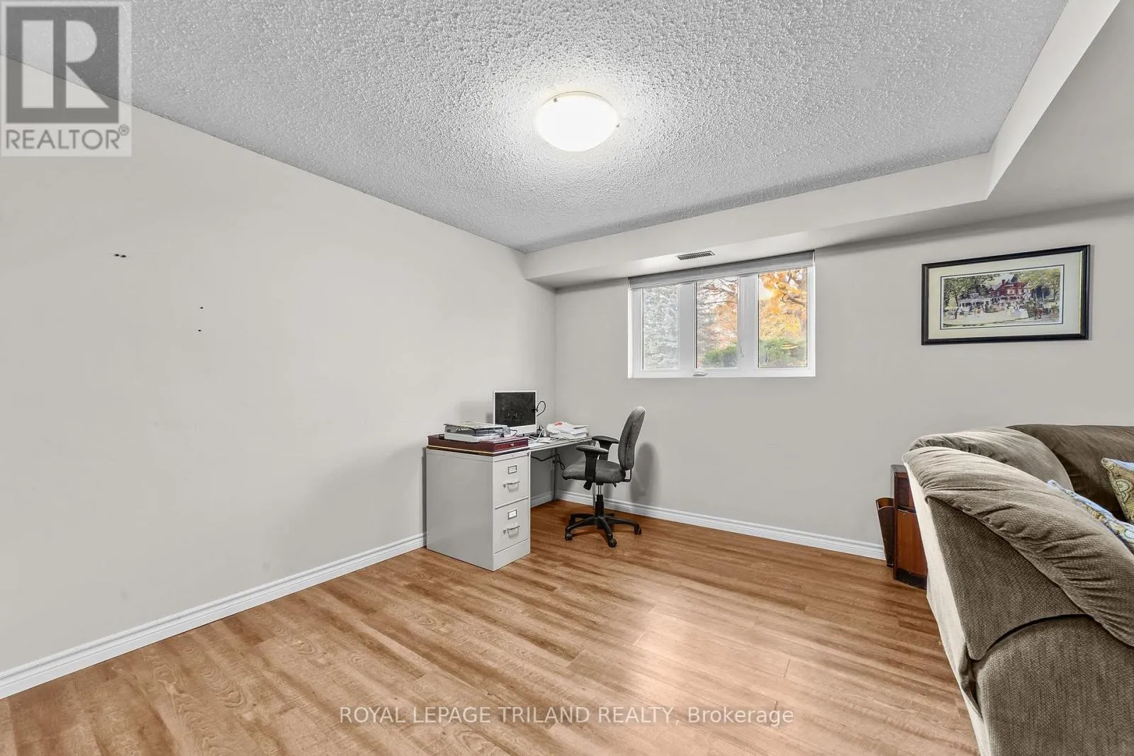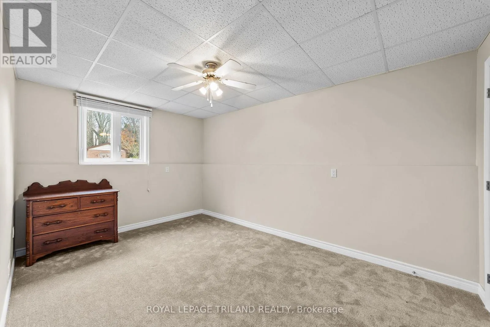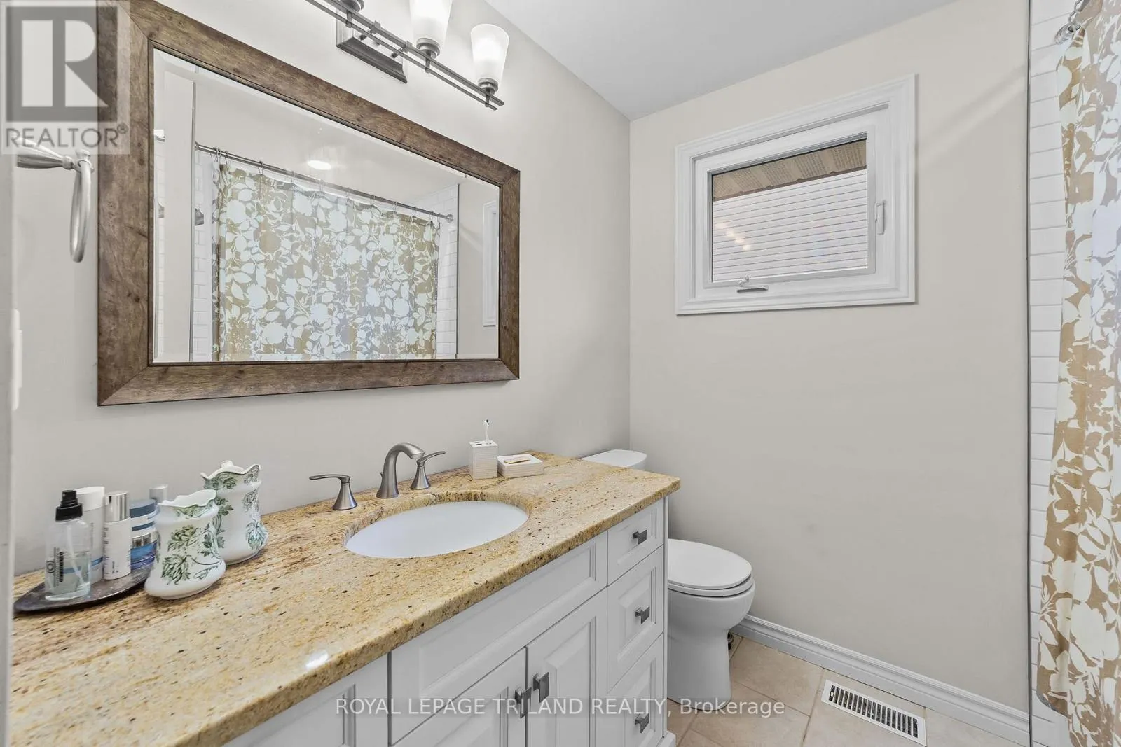 Cross Streets: Main Street. ** Directions: Glendon Road west from London; east on Main Street and west on Roe Street. Pride of ownership with many updates is evident in this home on oversized lot 5 bedrooms and 2 baths with granny suite. A remodelled kitchen with custom cabinets, granite countertops, tiled backsplash, double sink, plate rack. Appliances included. A spacious living room with newly added pot lighting, hardwood flooring, neutral décor, and walkout to a 3-tiered deck overlooking the backyard and tool shed. Three bedrooms and a family bath with heated stone tile floor, custom vanity, granite countertop, elevated toilet, and large linen closet. The lower level offers a family room with gas fireplace a 3 pc bath remodelled with tile and taps, elevated toilet, grab bar, large tiled shower and new glass (2025). There is a hobby room and oversized laundry/utility room with newer washer , dryer, sump pump, water hookup for a second fridge. A 2-room granny suite boasts newer carpet, updated doors, and private entrance from the garage - perfect for multi-generational living or guests. Newer interior doors throughout. Exterior Features include: newer roof, windows, updated eaves and gutter guards, garage with auto door opener, double concrete driveway with parking for 4 cars and security system. (id:27476)