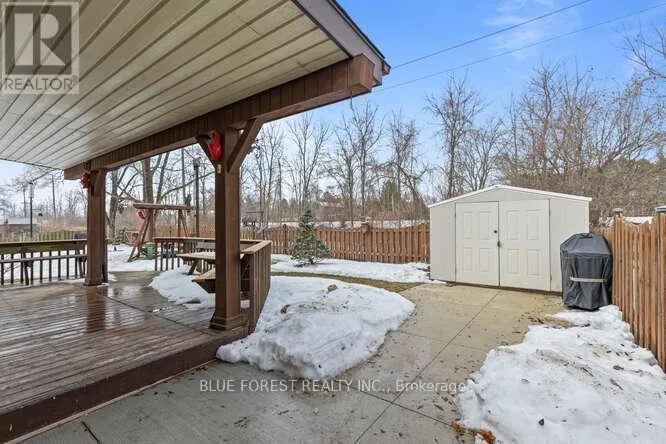 Cross Streets: Elizabeth Street and South Street. ** Directions: HWY 2 turn north towards Main St Glencoe, turn right on South St, left on Elizabeth St, last house on the left. Nestled at the end of a dead end street in the town of Glencoe, this charming 4 level back-split offers great curb appeal, privacy, space and storage. From the moment you step inside you will feel right at home! The spacious kitchen provides newly painted cupboards (2025), new countertops (2025), included Whirlpool appliances (2024) and access to the backyard to bbq and enjoying your morning coffee under the covered deck. The combined living/ dining room provides lots of natural light through the large casement window (2016) and space for family dinners. Upstairs boasts a large primary bedroom, 2 additional bedrooms, plus a 3 pc bathroom with a large walk-in shower. The lower level features a large family room and space for family fun or relaxation. This level also provides a 3 pc bathroom and an extra space that could be used for an office desk, toys, crafting or sewing area. Step down into the massive basement that includes the laundry area (washer & dryer included), a large work bench and built-in storage. Outside, a beautiful fenced yard awaits you with a large workshop with hydro, and a garden shed. Enjoy the mature trees, privacy and lots of space to relax and play. Updates include, all Centennial windows replaced in 2016, Centennial front door 2018, furnace & A/C 2014, replaced Reliance hot water tank, roof 2016, main floor and upper level carpet 2025. Close to downtown amenities, shopping, schools, arena, curling club & library. (id:27476)