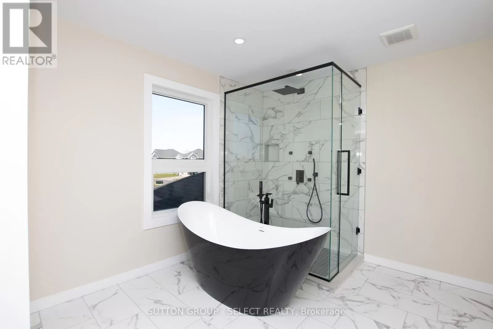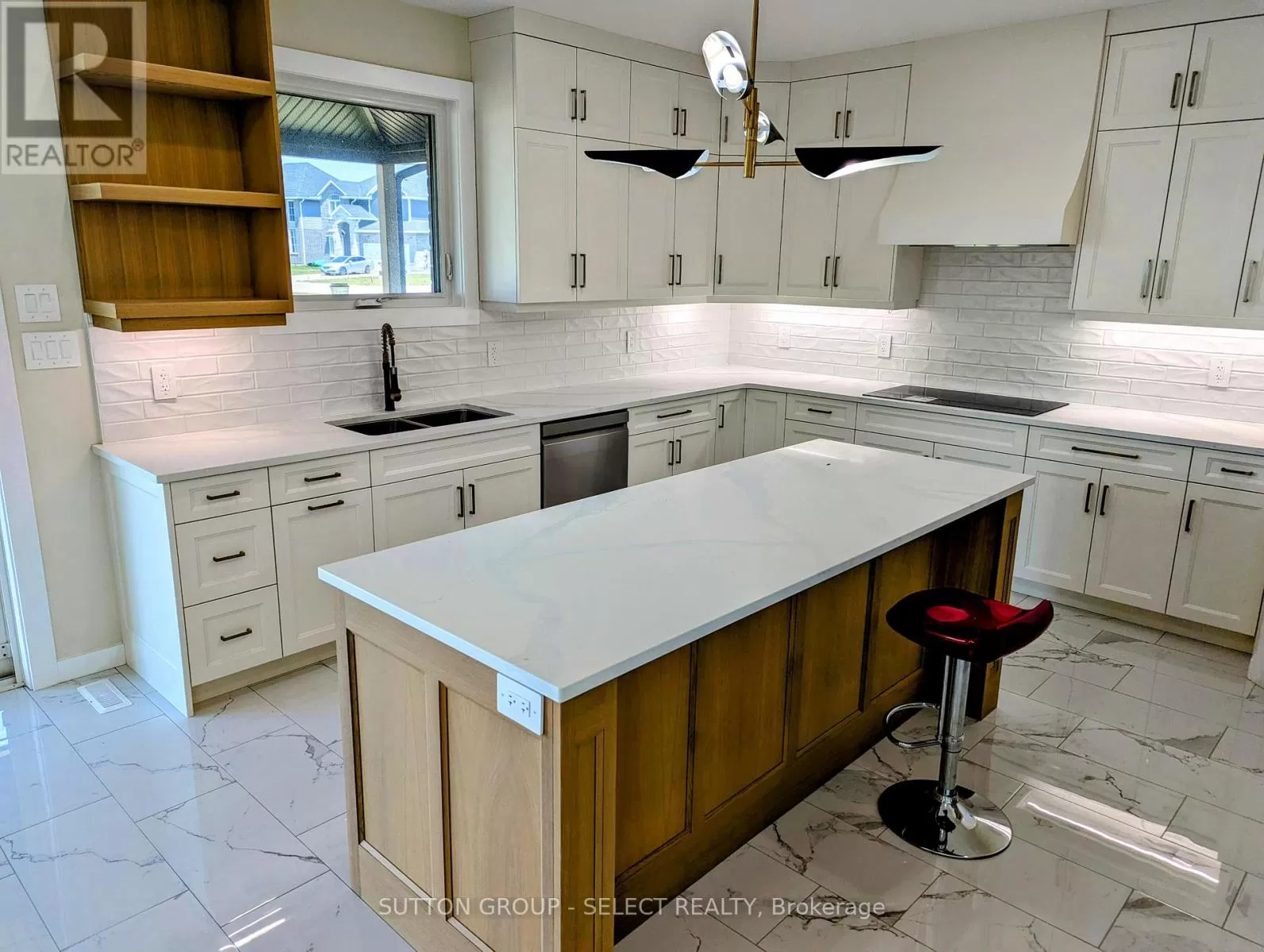 Cross Streets: Talbotville Gore Rd to Optimist Dr. ** Directions: Talbotville Gore Rd to Optimist Dr house is on the right. Welcome to the new upgraded Matwood Model offered by PineTree Homes. Located in the newly developed Talbotville Meadows, this executive home is sure to tick all your boxes. Located on a 55 ft lot this 2 storey home boasts over 3000 sqft of space. Upon stepping through the grand front entrance a study/office with french doors awaits, along with a half bath, mudroom outfitted with cubbies leading out to garage, and a large walk in storage area. At the rear of the main floor is the kitchen with quartz counters and island, walk in pantry, and beautiful porcelain tiles. An appliance package is included with this new build with wall oven and microwave, radiant cooktop,dishwasher and refrigerator. The kitchen is open to the good sized dinette with walkout to covered back deck with ceiling fan and gas hookup. The light filled great room with fireplace completes the main floor layout. The second level boasts a luxurious primary suite with fully outfitted walkin closet, and a 7 piece luxury ensuite. 2 of the bedrooms offer ensuite privelage to a 6 piece family bath and a full wall of closets. And of course no modern layout would be complete without the second floor laundry room and large linen closet. And if that isn't enough for mulit family living there is a rec room, bedroom, and 4 piece bath on the lower level with a direct walk up to its own separate entrance from the garage. This brand new home is a must see for families looking to step up to executive home living in the in a small town setting. Short drives to London, St Thomas and the beaches of Port Stanley this area offers it all. (id:27476)