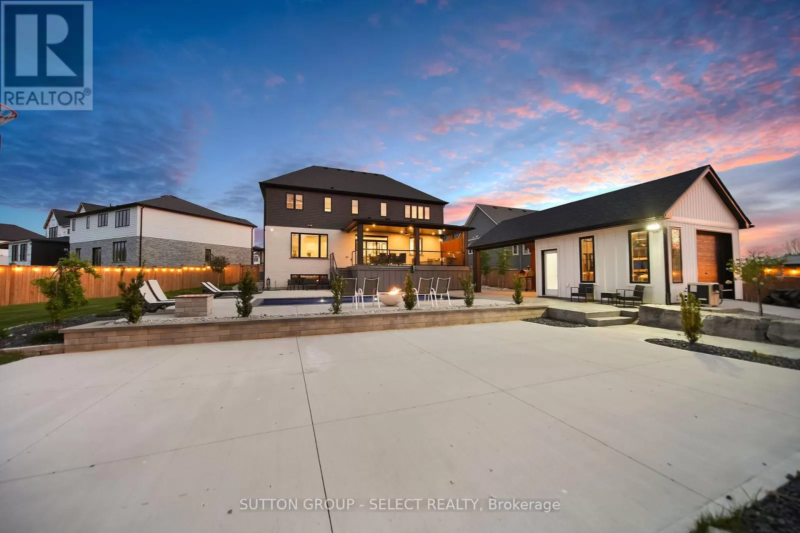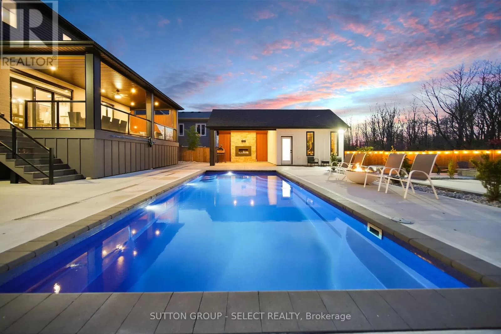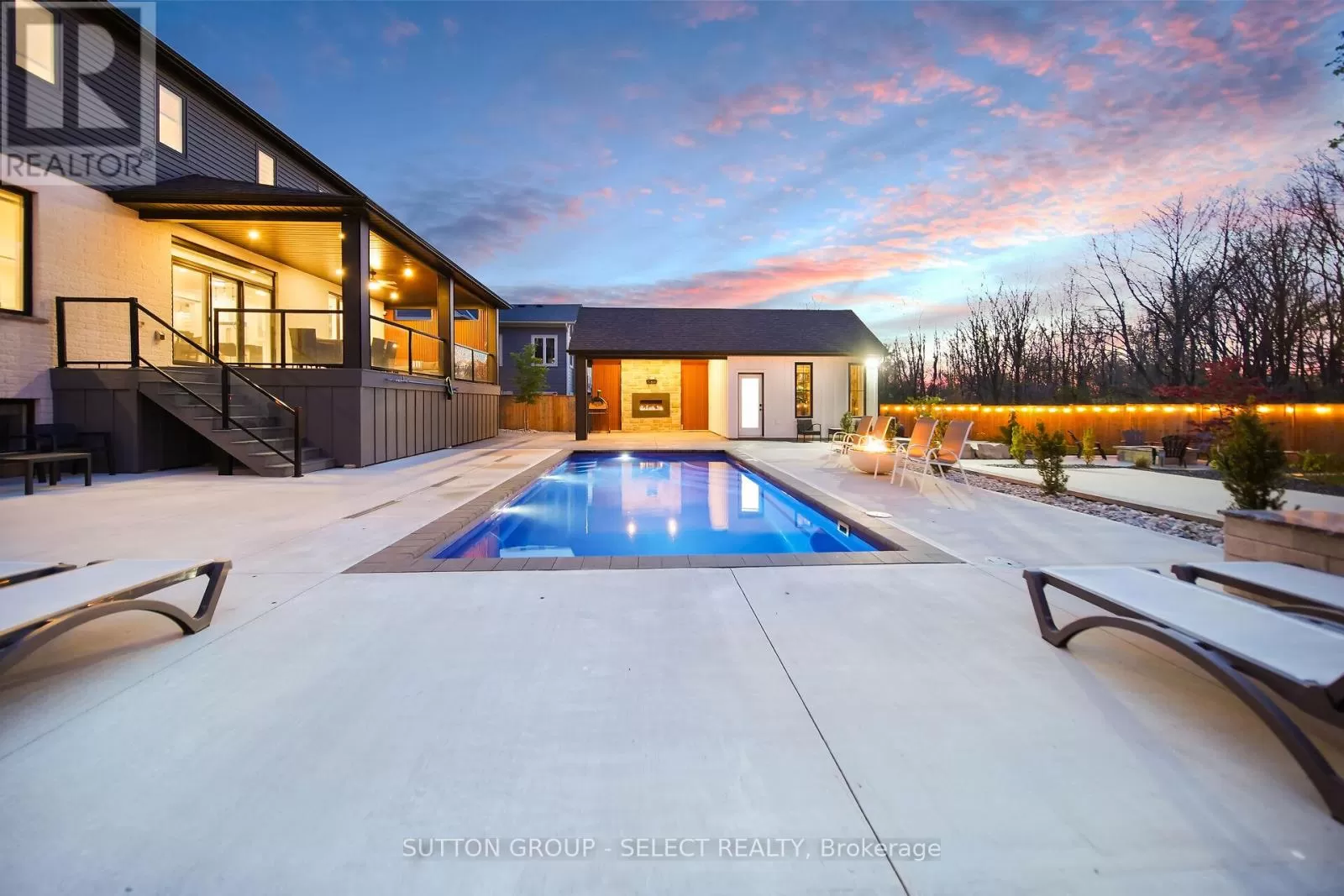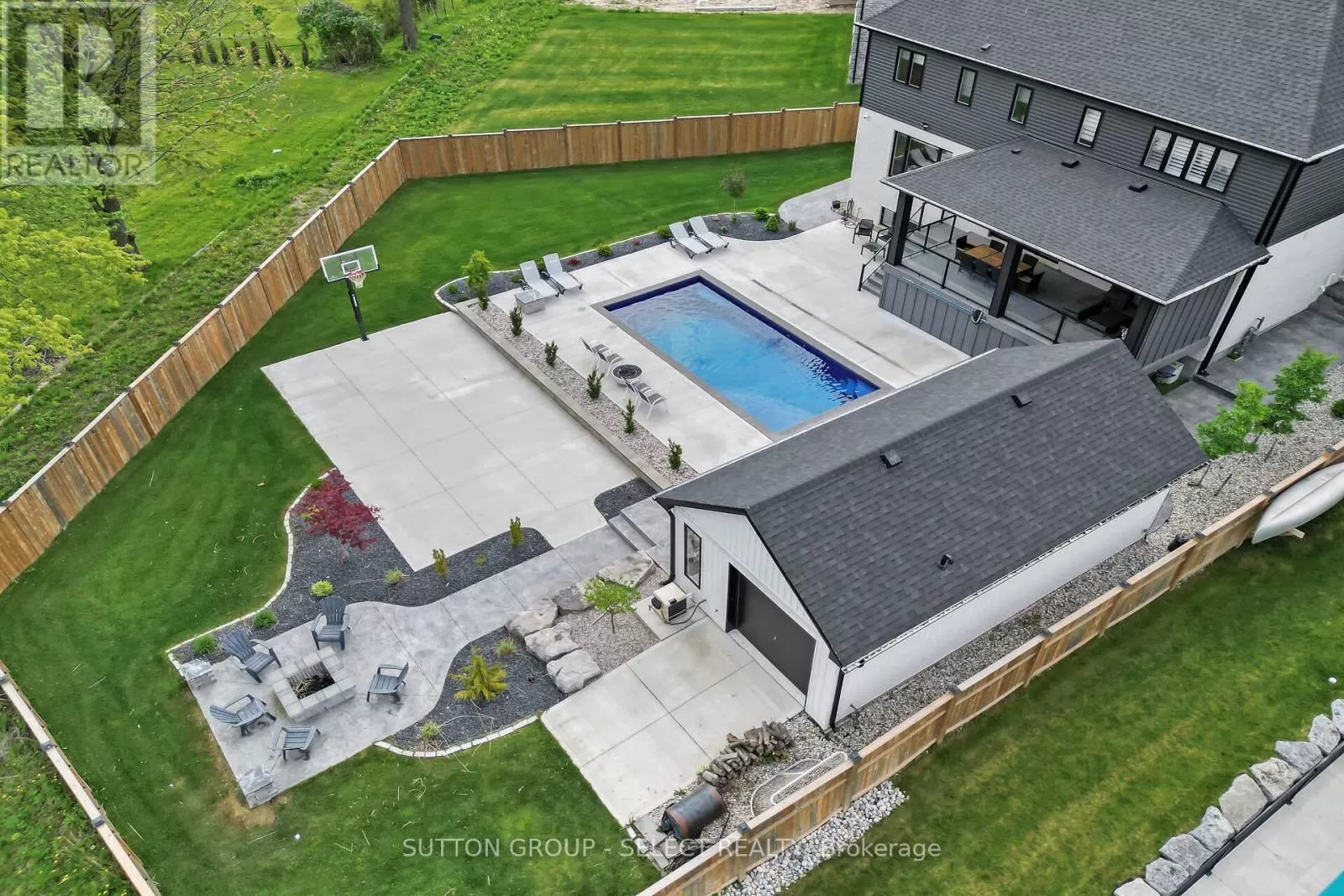 Cross Streets: OPTIMIST DR & ROYAL CR. ** Directions: SUNSET RD TO TALBOTVILLE GORE RD, LEFT ON OPTIMIST DR, RIGHT ON ROYAL CR, HOUSE ON LEFT HAND SIDE. Welcome to 48 Royal Crescent, an extraordinary custom-built home offering over 4,500 square feet of high-end living space, designed w/ luxurious finishes, smart technology & incredible attention to detail. Situated on a large, private pie-shaped lot backing onto green space, this 4-bedroom, 6-bathroom home delivers comfort, function, and wow-factor. The main floor features a stylish office, a large living room, along with an elegant fireplace & an expansive kitchen complete w/ an oversized island & a walk-in pantry with custom-built-ins. Just off the triple-car garage is a generous mudroom with built-in storage, making daily life seamless & organized. A hide-a-hose central vacuum system, integrated security system, & built-in speaker system throughout the entire home add smart convenience. Upstairs, each bedroom offers the privacy of its own full ensuite bathroom. The stunning primary suite is a retreat, boasting a luxurious walk-in closet w/ custom-built-ins & a center island, as well as a spa-inspired ensuite featuring a water closet with a bidet. A second-floor laundry room makes chores easy & efficient. The fully finished lower level is made for entertaining, featuring a projector and screen, a wet bar, a fitness room, & 9-foot ceilings that add to the open feel. Outside is where this home truly becomes an entertainer's paradise. Enjoy summers by the heated fiberglass pool, w/ a fully equipped pool house featuring its own bathroom & garage door bay. The backyard also includes a basketball court, built-in stone gas fireplace, & a stunning gazebo lounge area w/ a second open-flame gas fireplace & hookups ready for your dream outdoor kitchen. A composite raised deck off the dining area, hardwired outdoor lighting, built-in speakers & full Wi-Fi connectivity complete the space. W/ a triple car garage including a rare pull-through bay this home checks every box. Every inch of 48 Royal Crescent has been crafted to impress, combining functionality with high-end living. (id:27476)