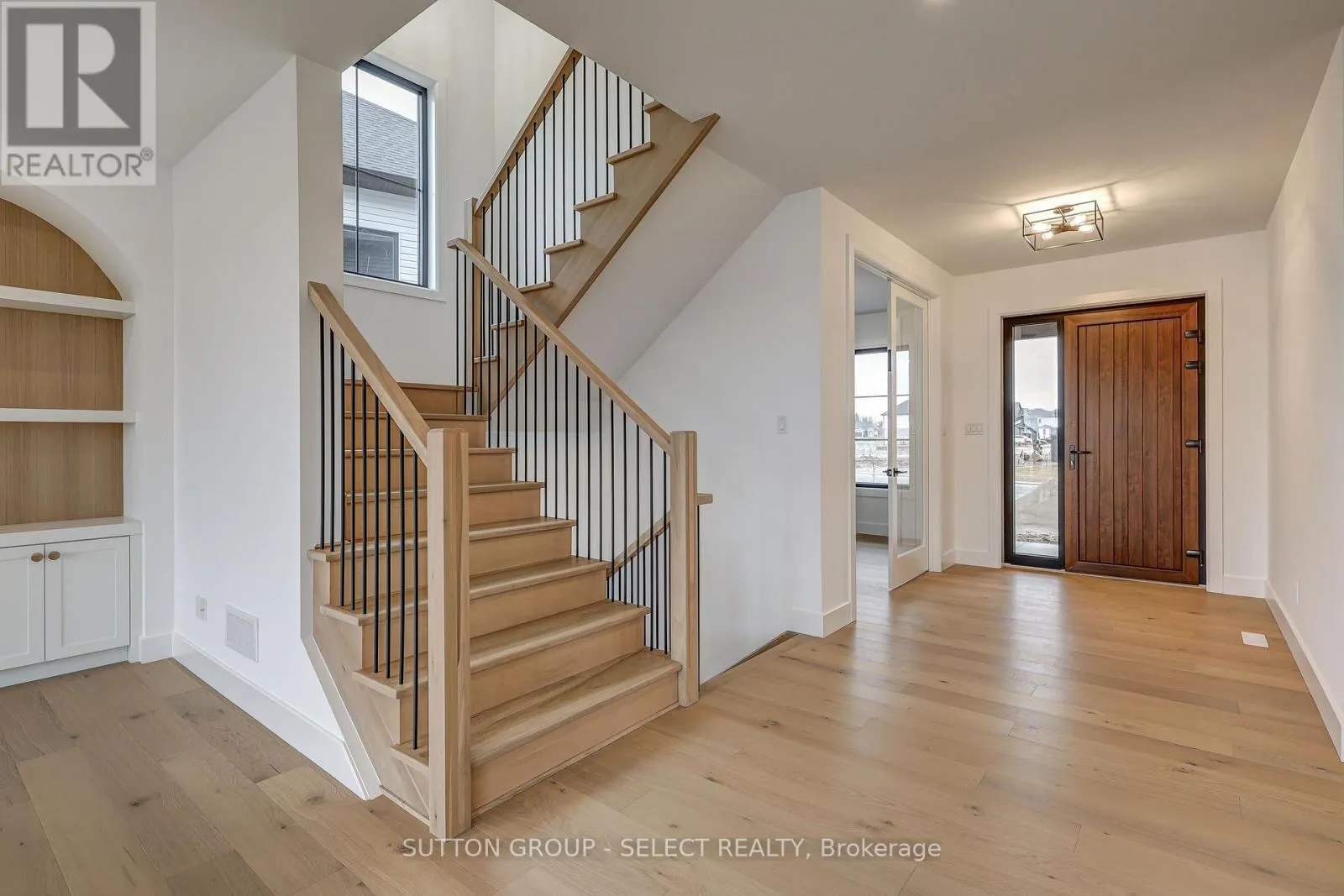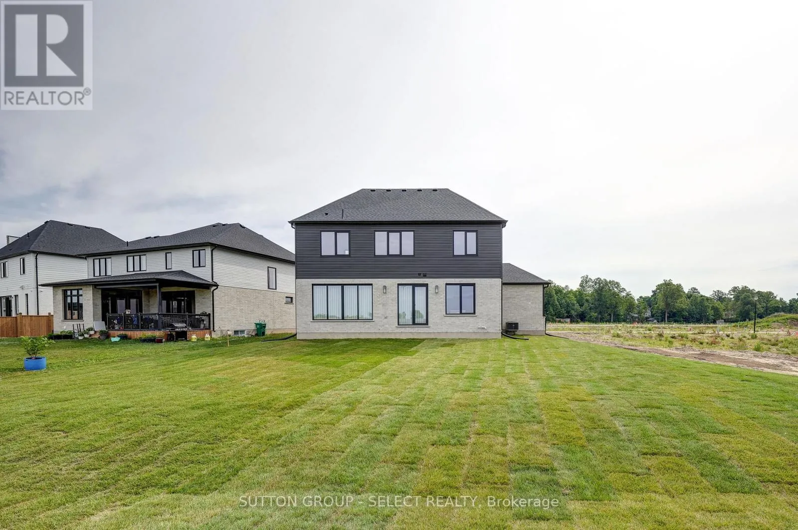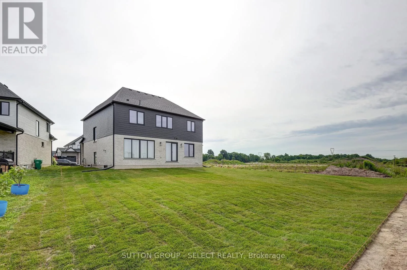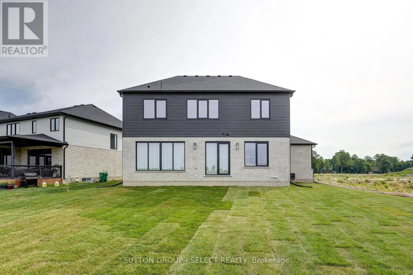 Cross Streets: OPTIMIST DR. ** Directions: SOUTH ON SUNSET. RIGHT ON TALBOT LINE (HWY 3). LEFT ON OPTIMIST DRIVE. Just built in the desirable neighborhood of Talbot Ville Meadows. This elevation features generous stone detail, a high peaked roofline, and a 3.5 car garage. Located on a 140-foot-deep lot, backing onto open space. This 4-bedroom new build has 2855 sq ft of beautifully finished living space. The main floor has 9ft ceilings with large picture windows throughout. A mudroom off the garage that provides ample storage. An oversized office with double glass doors at the front entry. Custom cabinetry in the kitchen with quartz countertops & backsplash and a walk-in pantry. The large living room has a feature fireplace, anchored by 2 arched built-in cabinets. The upper floor has laundry with storage and folding counter, 9 ft ceilings, and walk-in closets in every bedroom. The primary bedroom offers a beautiful ensuite with a large walk-in double shower and a freestanding tub. Second bedroom also offers its own full ensuite. Superior design & quality built by Millstone Homes of London. (id:27476)