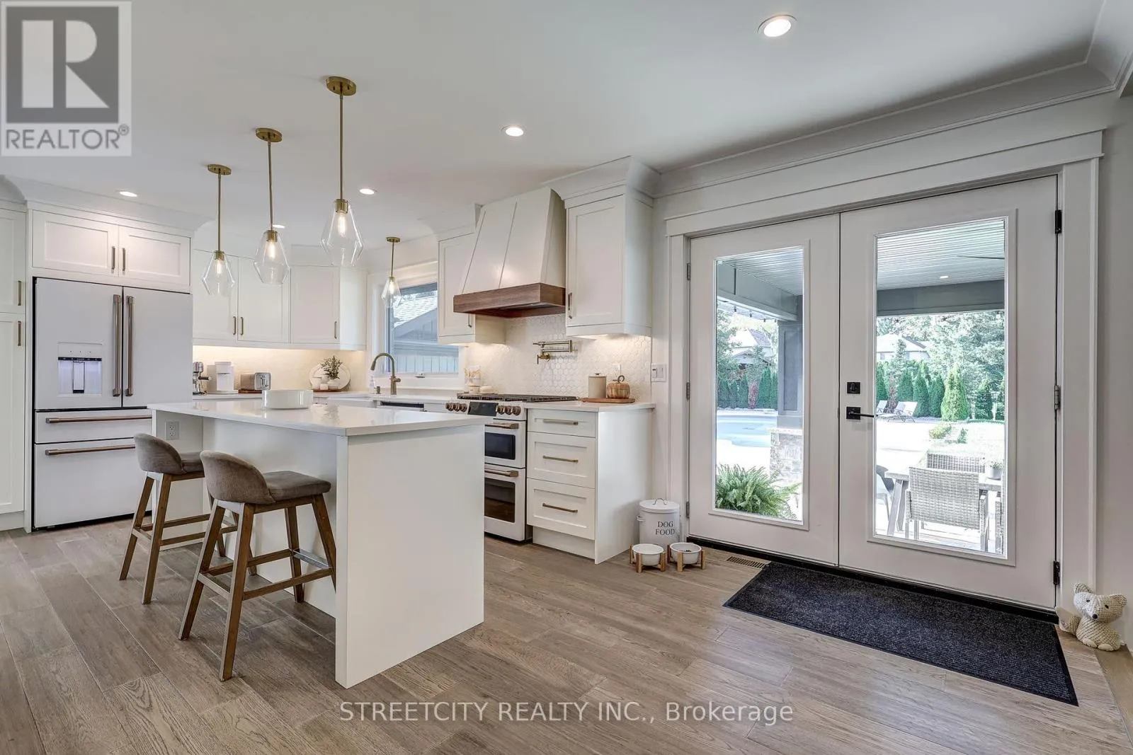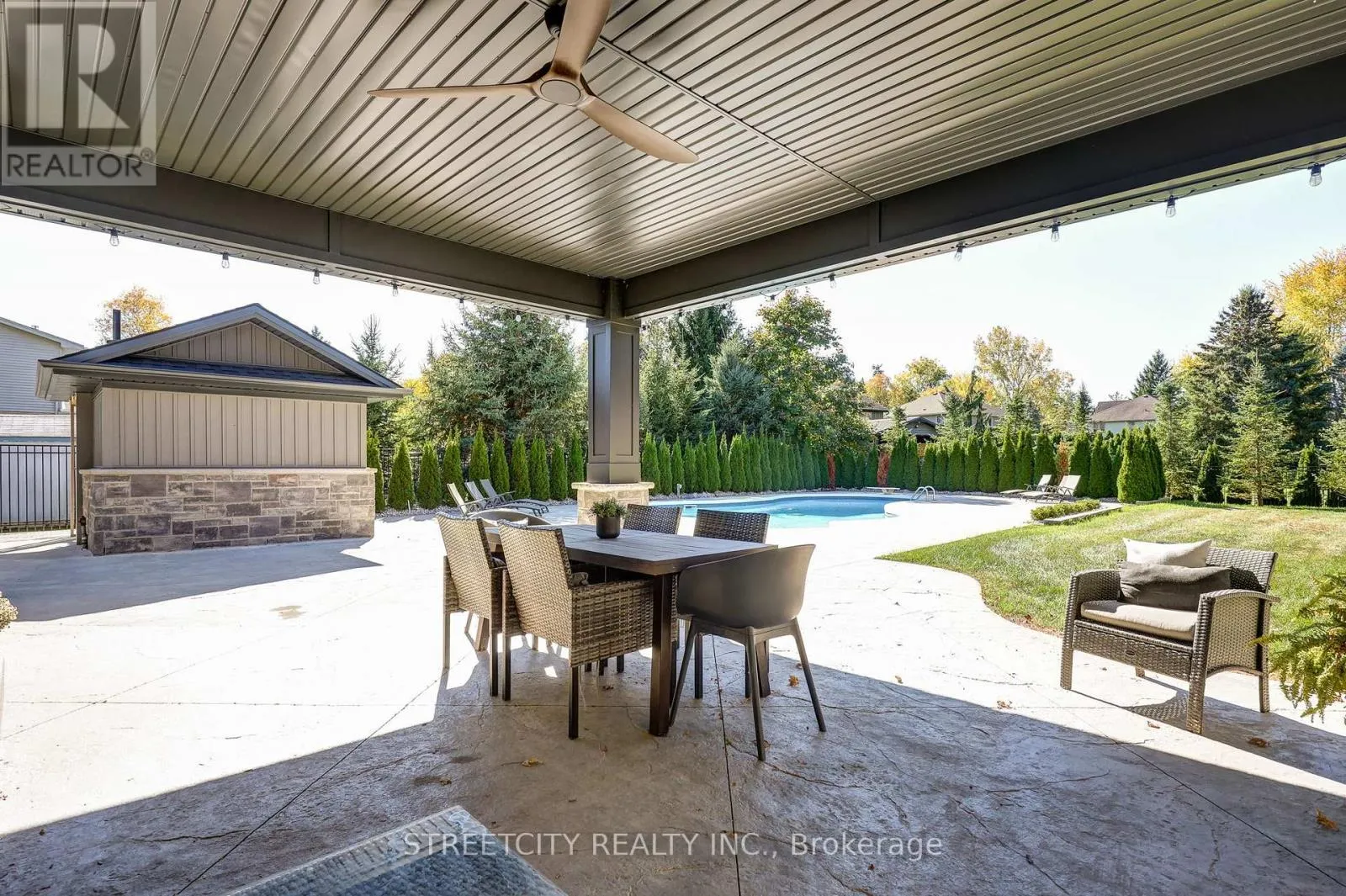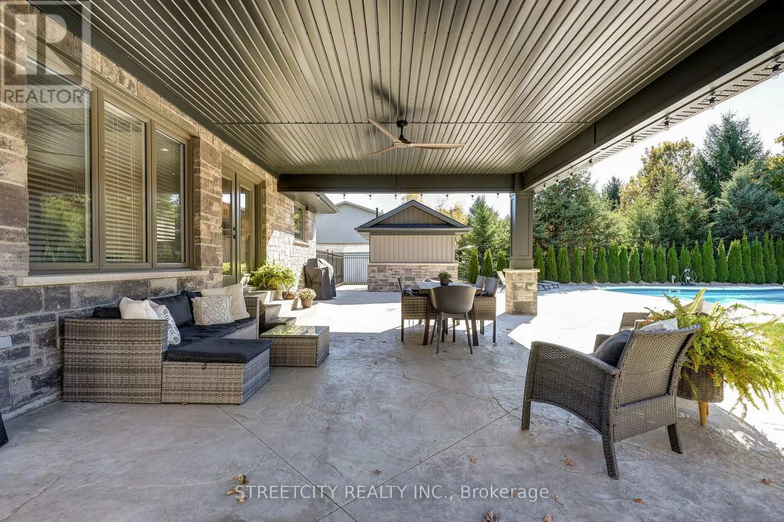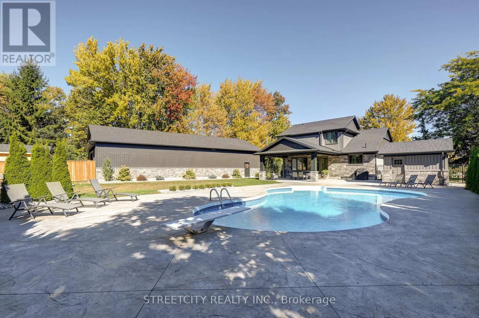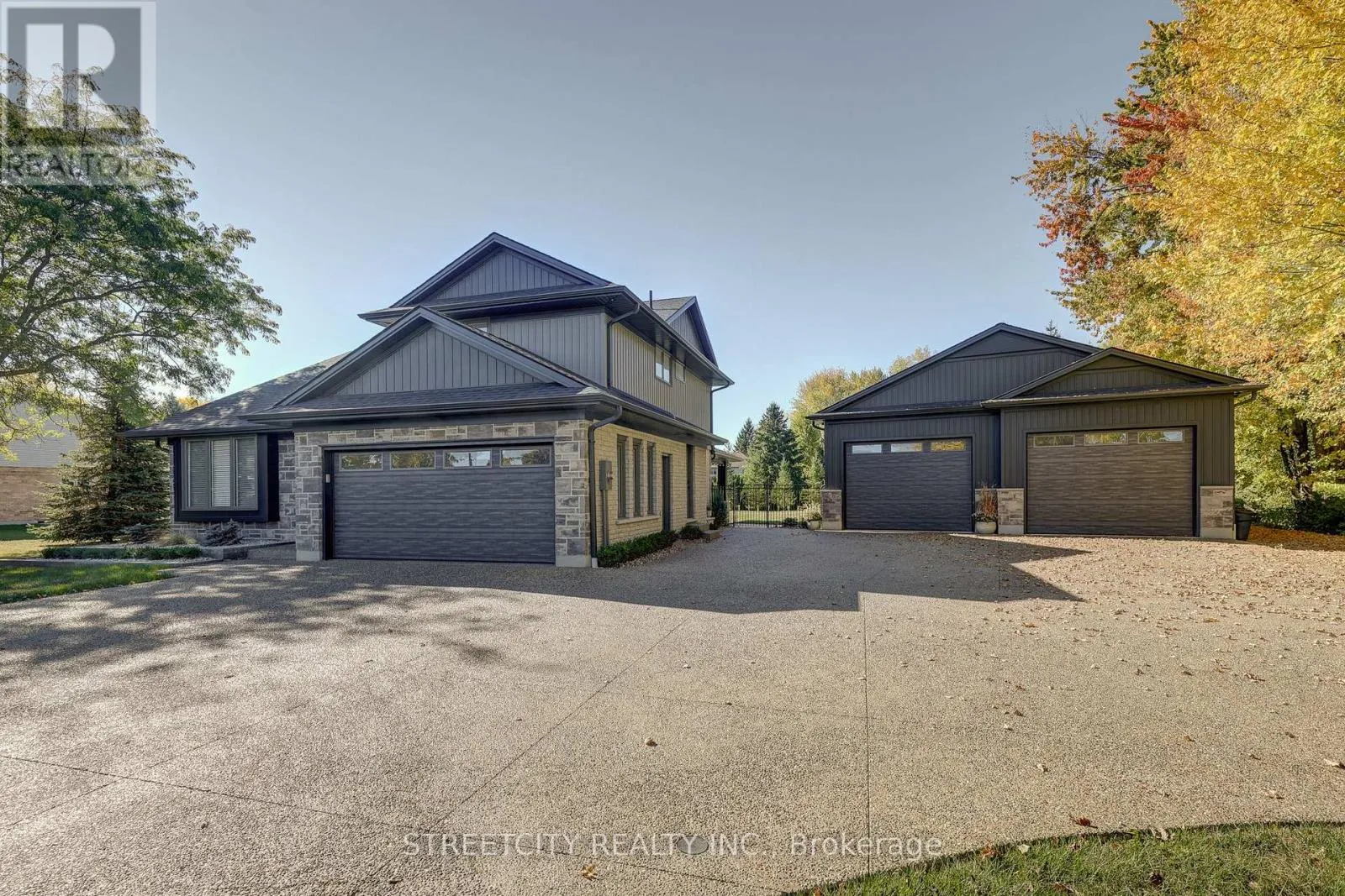 Cross Streets: Sunset. ** Directions: From Sunset turn west on Talbotville Gore. Welcome to the ultimate blend of luxury, comfort, and functionality. This exceptional 4-bedroom, 4-bathroom executive home was completely reimagined in 2021 with high-end finishesand custom upgrades throughout on over half an acre & features a 35 x 70 x 12.6 heated dreamshop that sets it apart from anything else on the market.Step inside and be captivated by the elegant main floor, where a gourmet kitchen equipped withGE Café appliances, stone countertops, and custom cabinetry flows seamlessly into the formaldining room and dual living spaces. Fireplaces, tray ceilings, crown moulding, & handcrafted hardwood staircases add timeless character at every turn. A stylish mudroom with laundry connects to the 2-car garage, and a chic 2-piece powder room completes the main level. Upstairs, discover three generously sized bedrooms including a stunning primary retreat, complete with a full wall of custom closets and a spa-inspired ensuite featuring a walk-in shower & double vanities. The lower level is finished to the highest standard, offering a spacious family room with rich hardwood floors, an office space, fourth bedroom, & a luxurious 4-piece bathroom perfect for guests or teens. Outdoors, your private oasis awaits. Entertain by the inground pool, surrounded by stamped concrete, a covered gazebo, a firepit area, and a dedicated pool house/change room with a rough-in for an outdoor bathroom. The fully fenced backyard offers green space for kids and pets to play in total privacy and security. And now the crown jewel: a mechanic or tradespersons dream workshop. This luxurious, oversized shop boasts in-floor radiant heat, a two-piece bathroom, 200 amp service, 240Vwelding outlets, and is hoist-ready with the proper footings in place. With two 13 x 10 front overhead doors and a 16 x 10 rear door, there's ample space for commercial vehicles or RV. This is more than a home it's a lifestyle property that combines luxury living with unmatched functionality. (id:27476)