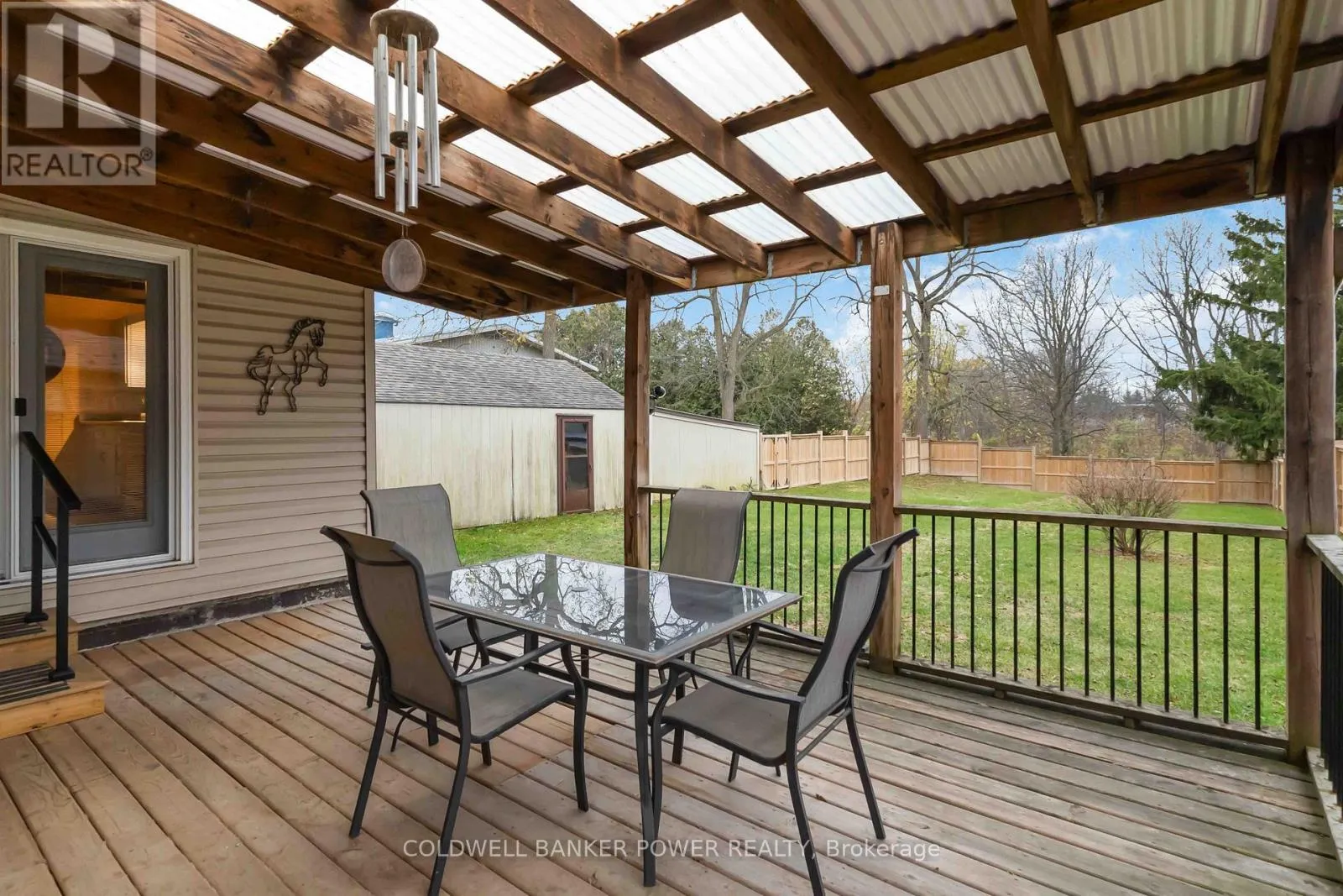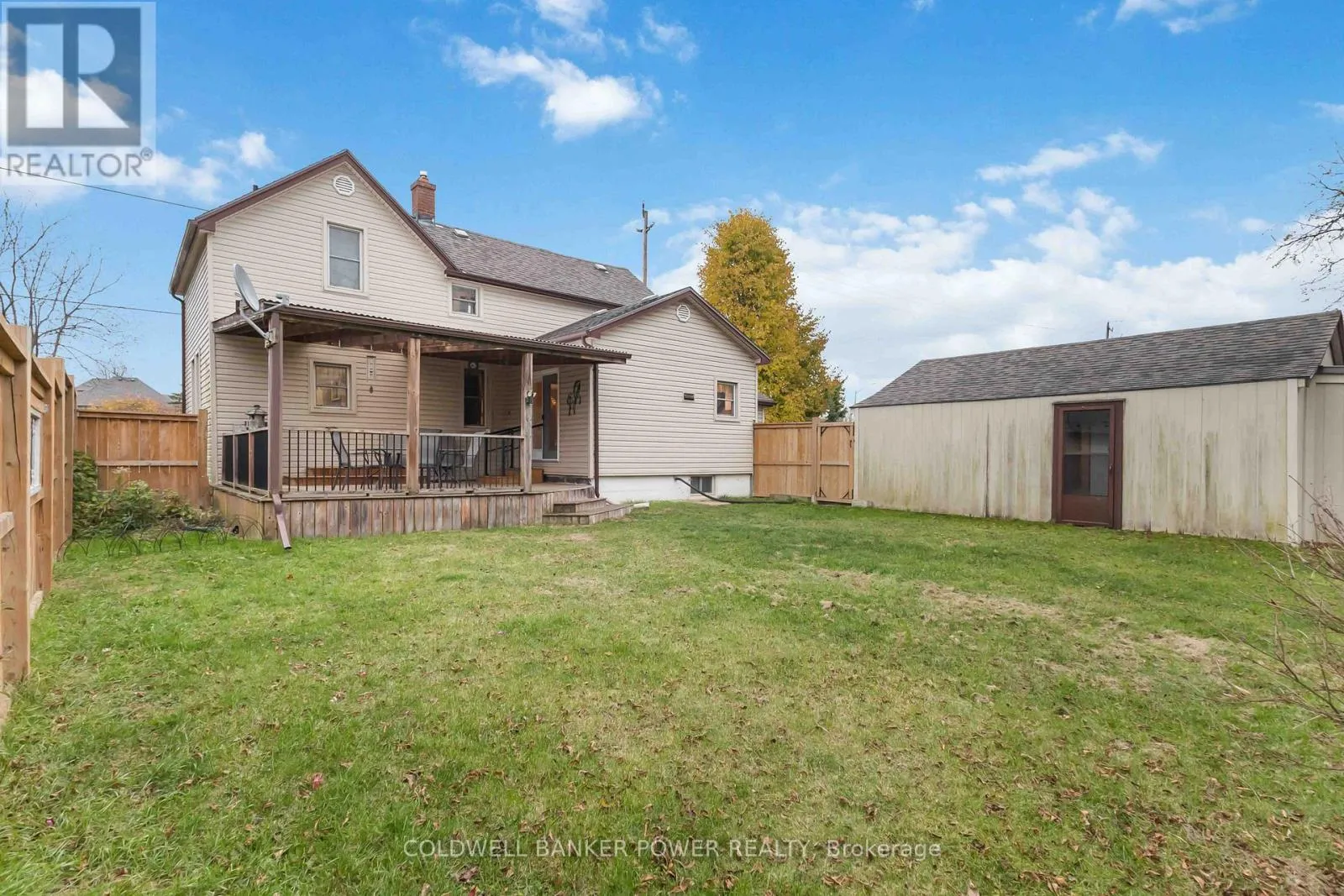 Talbot Line & Sunset Drive Fantastic value in this 3 bedroom home which is situated on 1/4 of an acre backing to private green space and with a DOUBLE DEEP TWO CAR PARTIALLY INSULATED GARAGE/ WORKSHOP. Just minutes to London, St Thomas and the lake at Port Stanley and major highways. Large sundeck off kitchen overlooking very private yard with part of lot fully fenced. Huge great room with gas stove, additional family room or den on main floor, full front porch, large eat-in kitchen, 3 bedrooms on upper floor, 2 updated bathrooms, main floor laundry, updates to furnace, central air, roof , windows and upgraded 125amp electrical..Seller says no knob and tube. Rare opportunity at this price. (id:27476)
