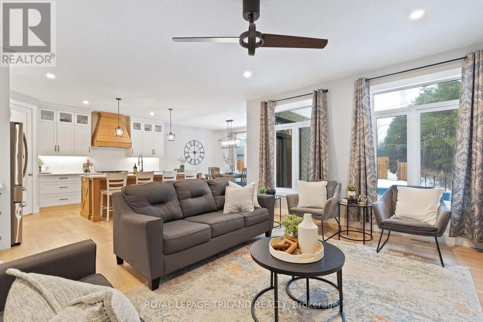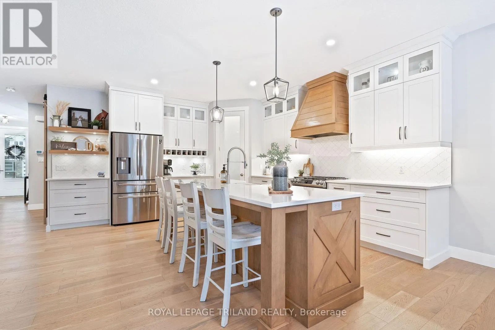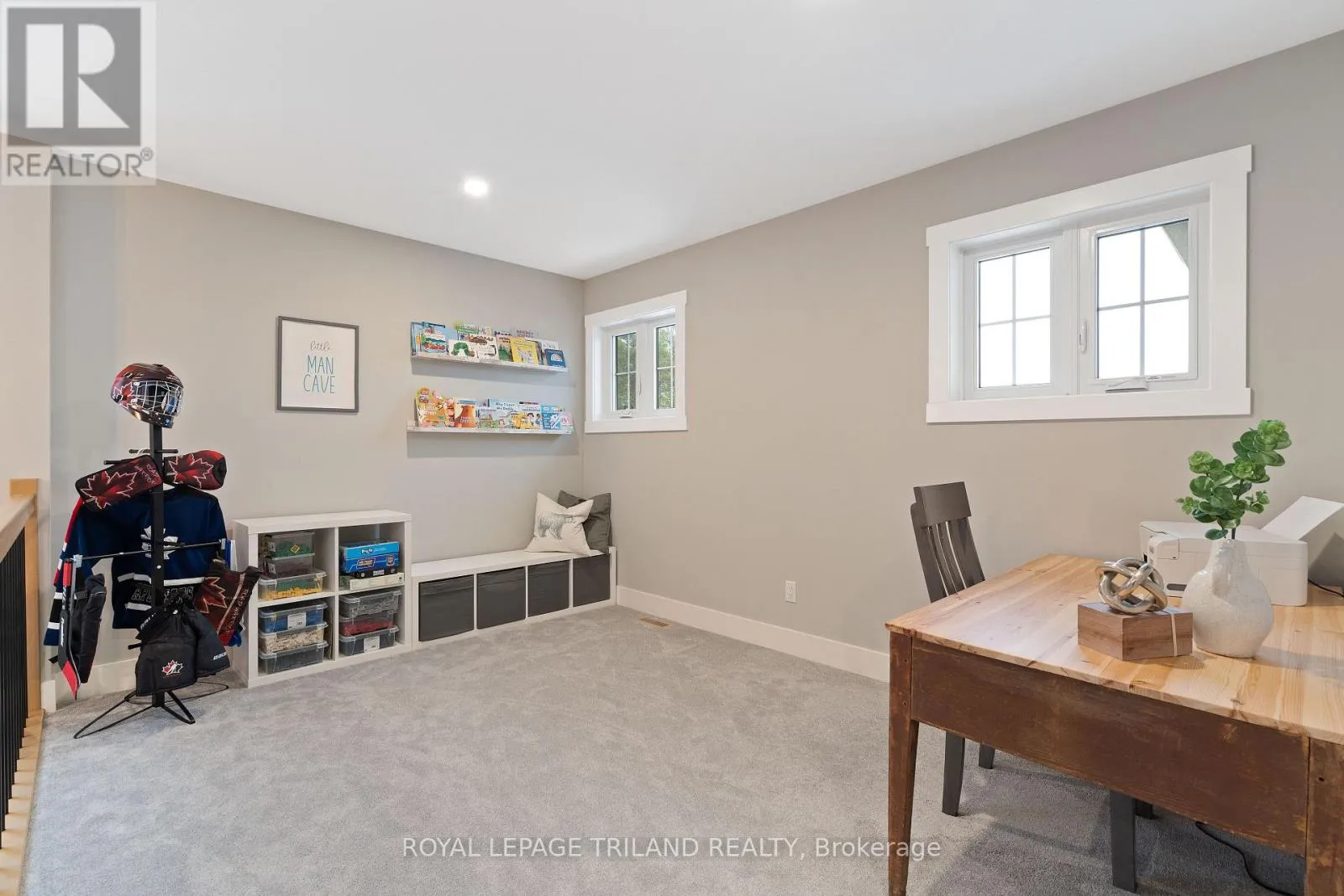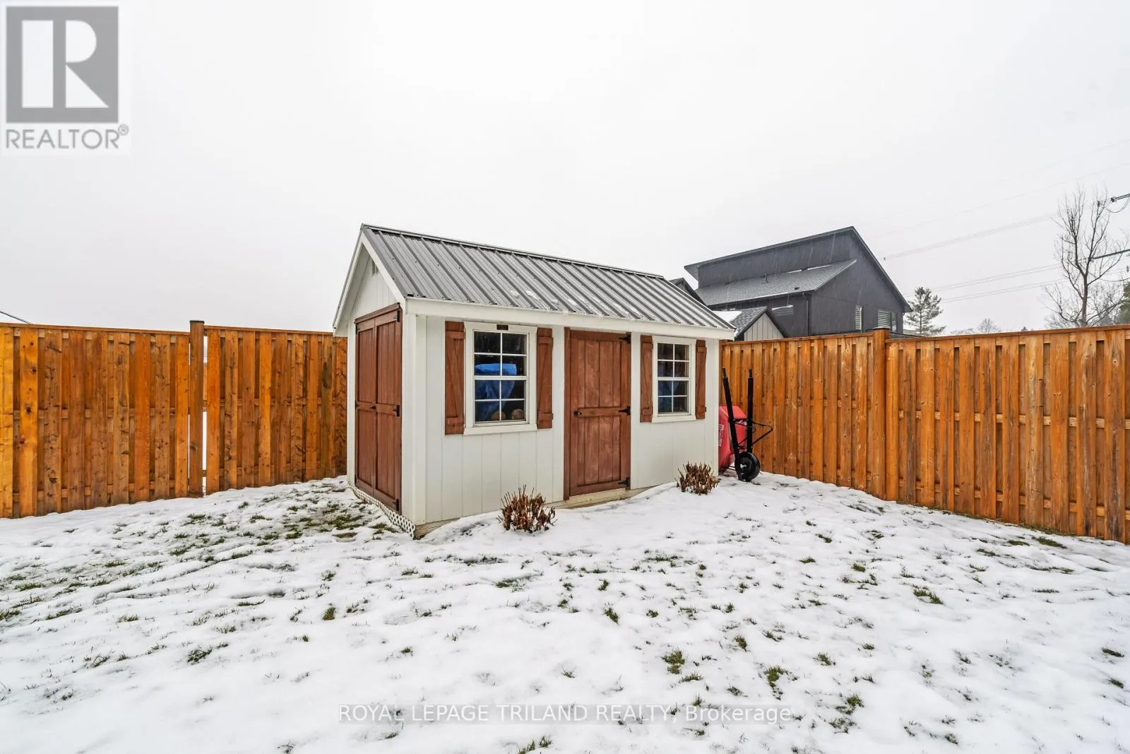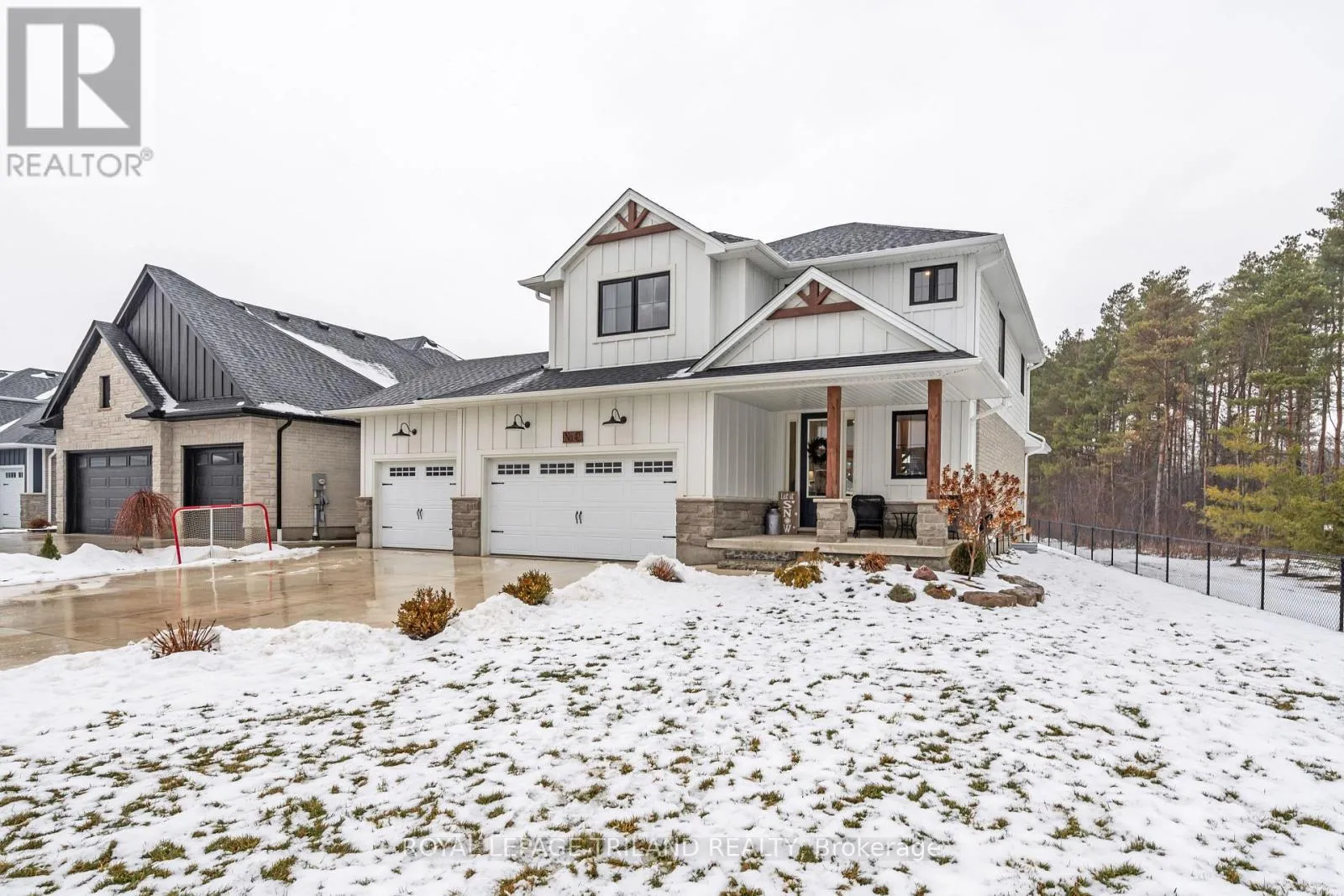 Cross Streets: Sparkys Way. ** Directions: From Sunset and Talbotville Gore Rd, turn West, West on Talbot Grove Lane, North on Sparkys Way, East on Cedarvale. Welcome to 42 Cedarvale Lane, ideally located at the end of a quiet dead-end street with a side yard abutting onto neighbours' treed acreage in the desirable The Ridge community of Talbotville, Southwold Township and school district. Enjoy a convenient location close to Port Stanley, London, and Highway 401. This thoughtfully designed 4-bedroom, 3.5-bathroom two-storey by MP Custom Homes offers over 2,715 sq ft of finished living space and is loaded with upgrades. Exterior highlights include a concrete double driveway, impressive 3-bay gas-heated garage with epoxy floors, rear drive-through garage door with concrete pad and walkway, covered front porch, covered back deck, full yard irrigation system, fenced yard, and Wagler mini-barn shed. Inside, the inviting open-concept main floor features a tiled foyer with closet and powder room, mudroom with built-in bench and hooks off the garage, engineered hardwood flooring, and a bright great room with gas-insert fireplace and ample natural light. The kitchen is designed for both function and style with quartz countertops, large island with sink and seating, custom range hood, backsplash, oversized walk-in pantry, and eating area with patio doors leading to the covered deck. The second level offers a versatile loft ideal for a home office or play space, a spacious primary suite with walk-in closet and ensuite featuring glass and tile double headed shower, quartz-topped double vanity, and tile flooring. Two additional bedrooms, a full bathroom with tub/shower, and a conveniently located laundry room with epoxy floors complete this level. The finished lower level adds a generous rec room with feature wall, a bedroom currently used as a workout space with epoxy flooring, a recently finished bathroom, and a utility room with sink and epoxy floors. This uniquely positioned home blends modern elegance with practical design-perfect for a growing family. (id:27476)