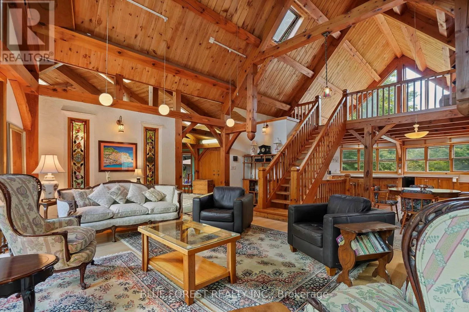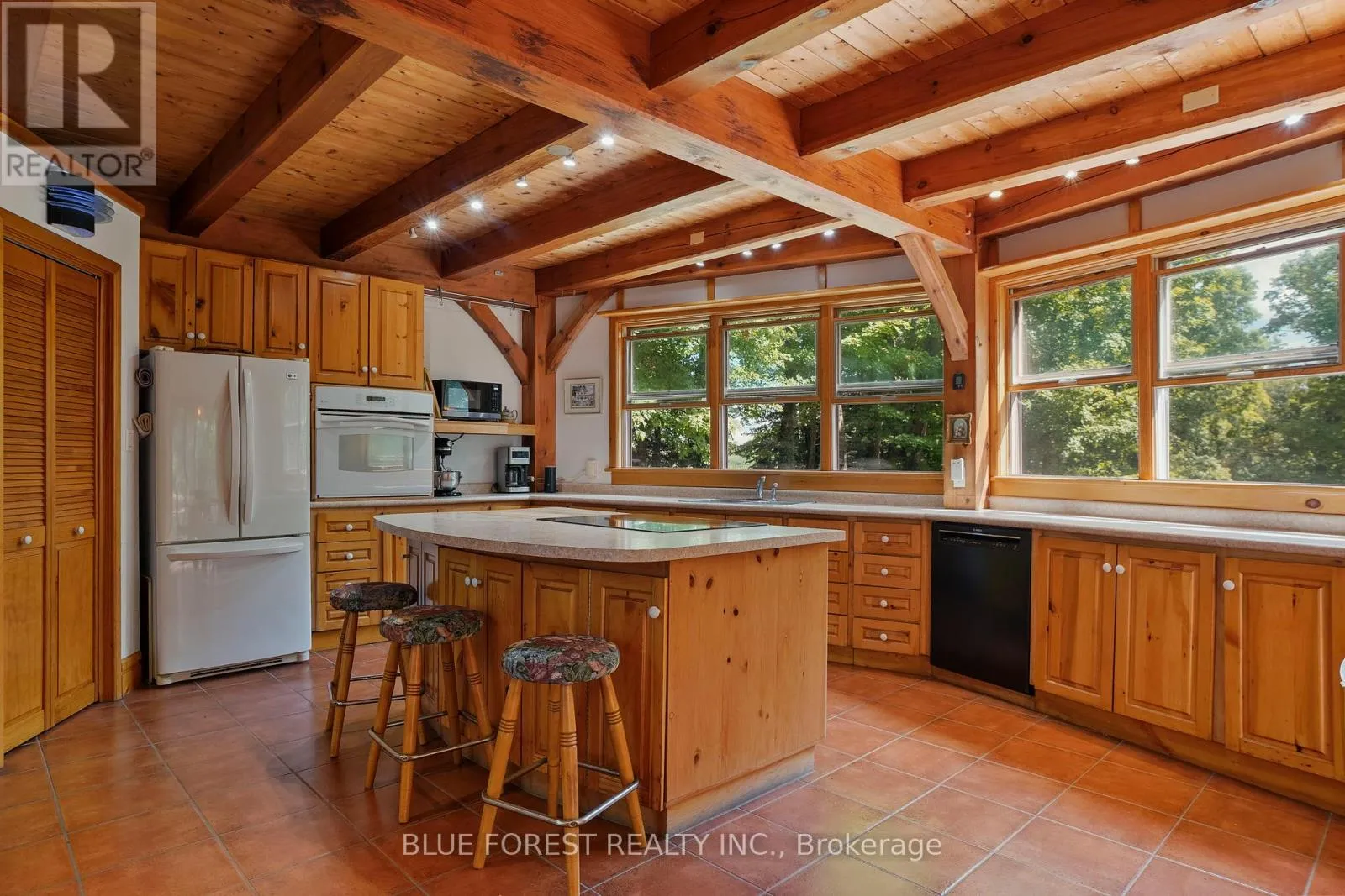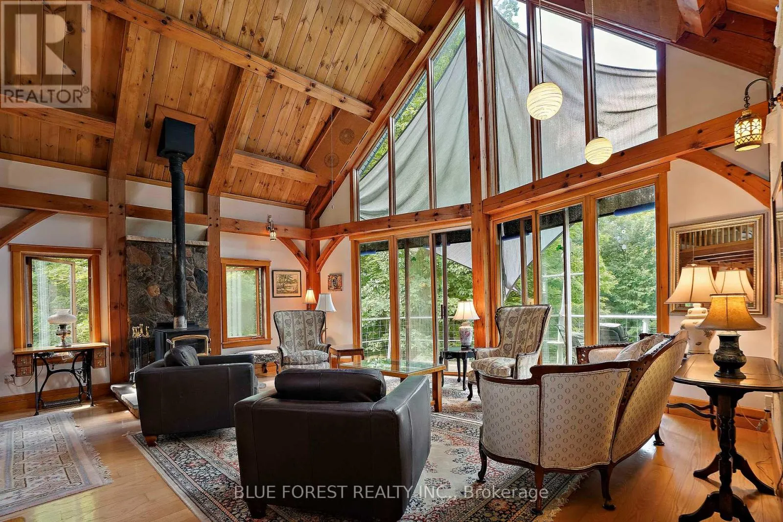 Cross Streets: Iona Road. ** Directions: From 401 - Head North on Iona Road... Head East on First Line. Timber frame Chalet on 93 Acres with Thames River Frontage! Incredible opportunity to own a custom Timber frame Chalet built by the founder of Pineridge Log and Timber frame. (Builders of Cow Bell Brewery in Blyth) Situated on 93 acres with 1000 feet of frontage on the Thames River, this picturesque property offers the perfect blend of natural beauty, privacy, and modern comfort just 3 minutes to Hwy 401 and 20 minutes to London. The home features 3 bedrooms, 2 bathrooms (Cheater Ensuite to Master), Fully finished Walk-Out basement and an attached 2-car garage, all set against a backdrop of 50 workable acres, hardwood forest, and a 1 km private walking trail. Premium features include a shake-style metal roof with a 75-year warranty (installed 2005) and Site sourced 3/4 ash hardwood flooring in the living and dining rooms. The gourmet kitchen includes a walk-in pantry and a dishwasher (2022), overlooking the terrace with a retractable Komoka awning (2020). Oversized 8' Pella patio doors, windows, and skylights fill the space with natural light. Stay cozy year-round with a wood stove as well as a heat-pump furnace with A/C (2023), multi-zoned solar-heated floors (kitchen, foyer, 2 baths, lower bedrooms, and hallway), and 2 owned water heaters. Additional highlights include 200-amp electrical service, exterior roll-up blinds on patio doors, Front and Rear decks, and Antique stained glass accents and fixtures, all in a home that combines energy efficiency with timeless craftsmanship. Whether you're looking for a peaceful retreat, productive farmland, or an outdoor lifestyle property with river access, this one-of-a-kind estate delivers. (id:27476)
